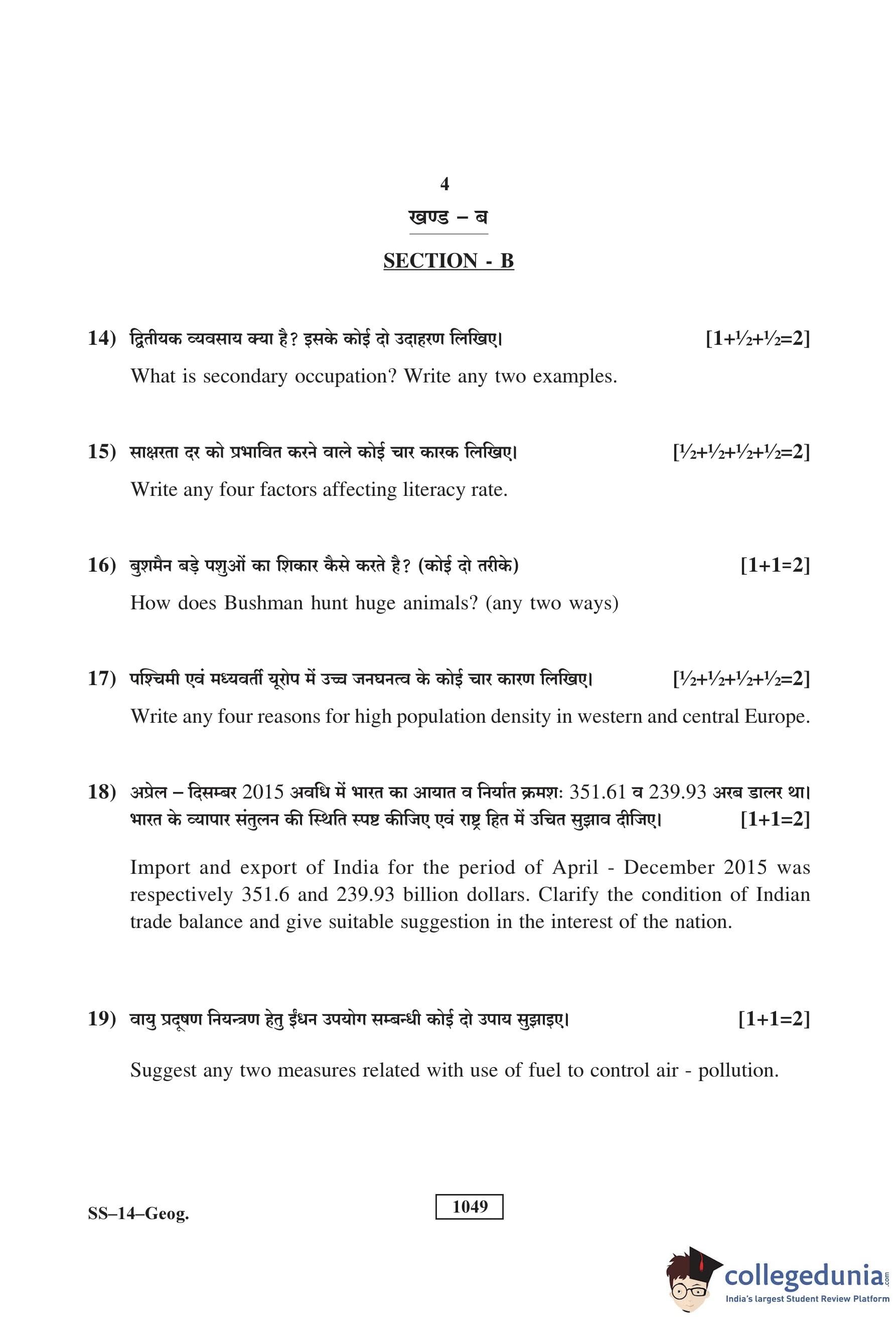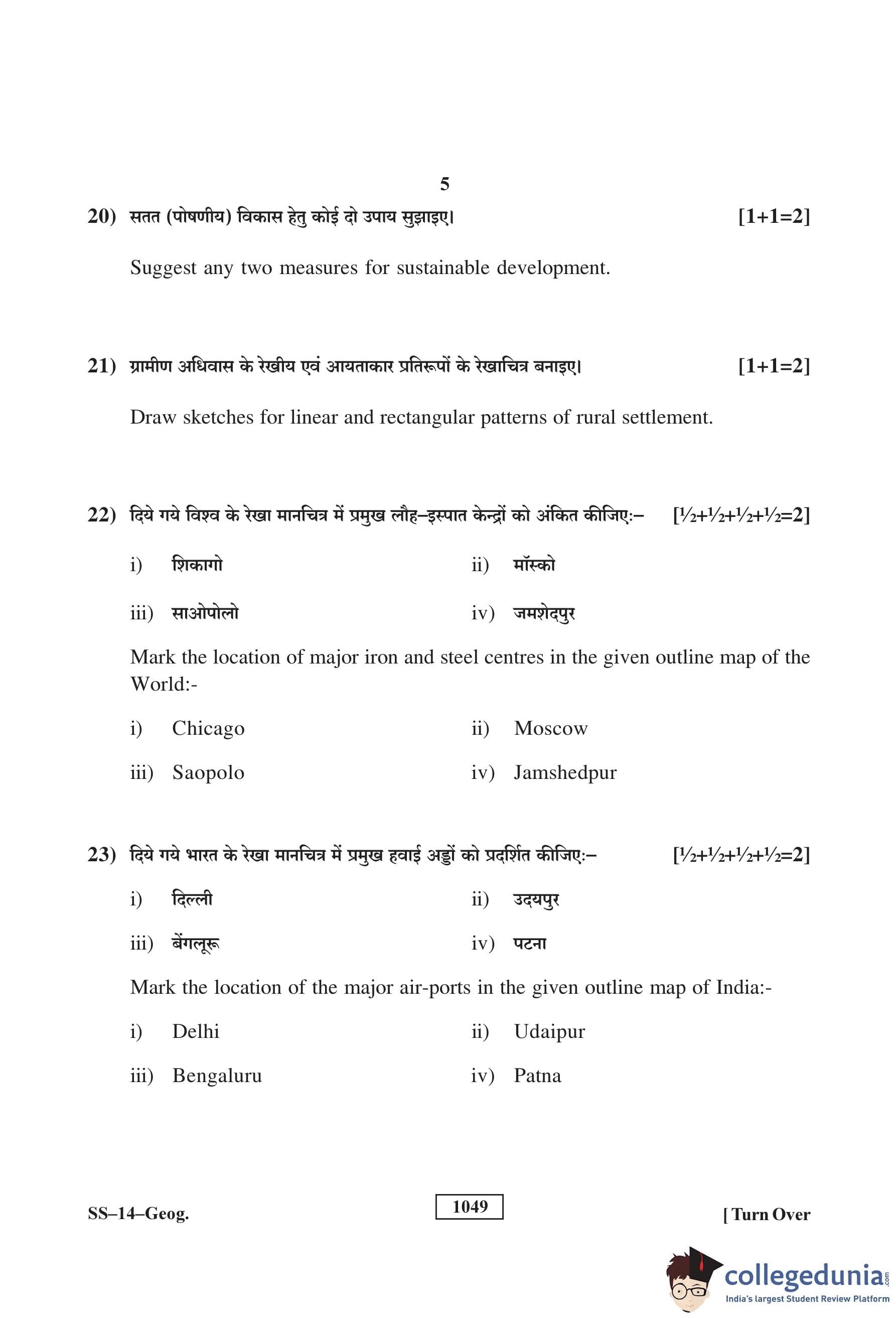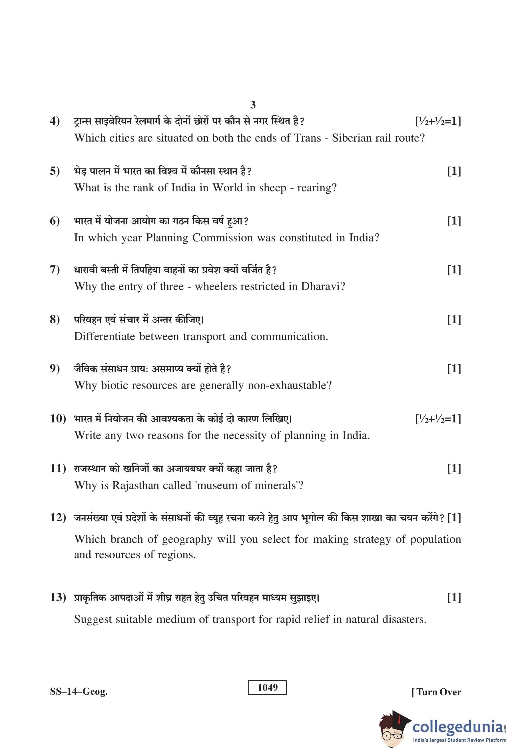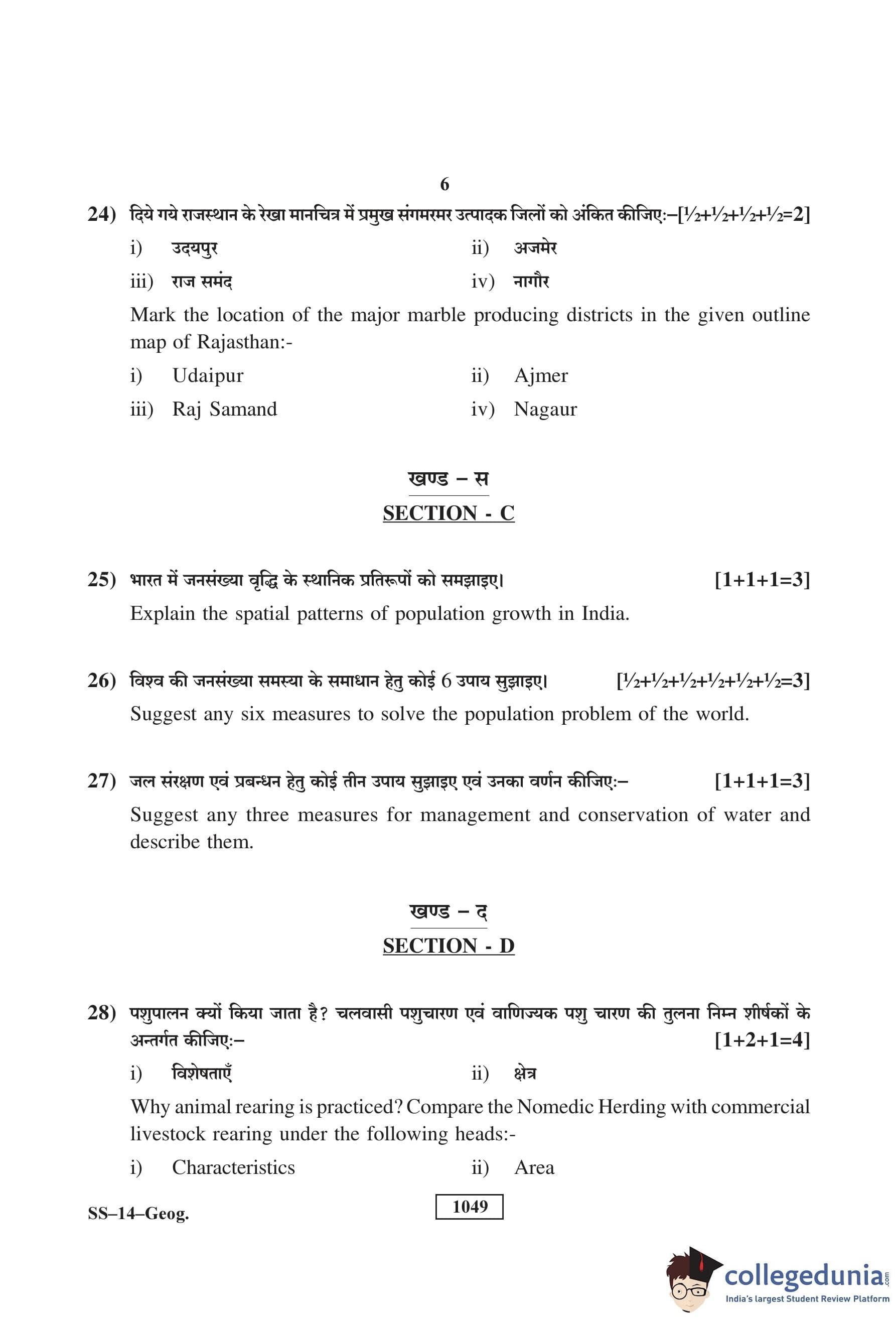 RBSE Class 12 Geography Question Paper 2018 with Answer Key