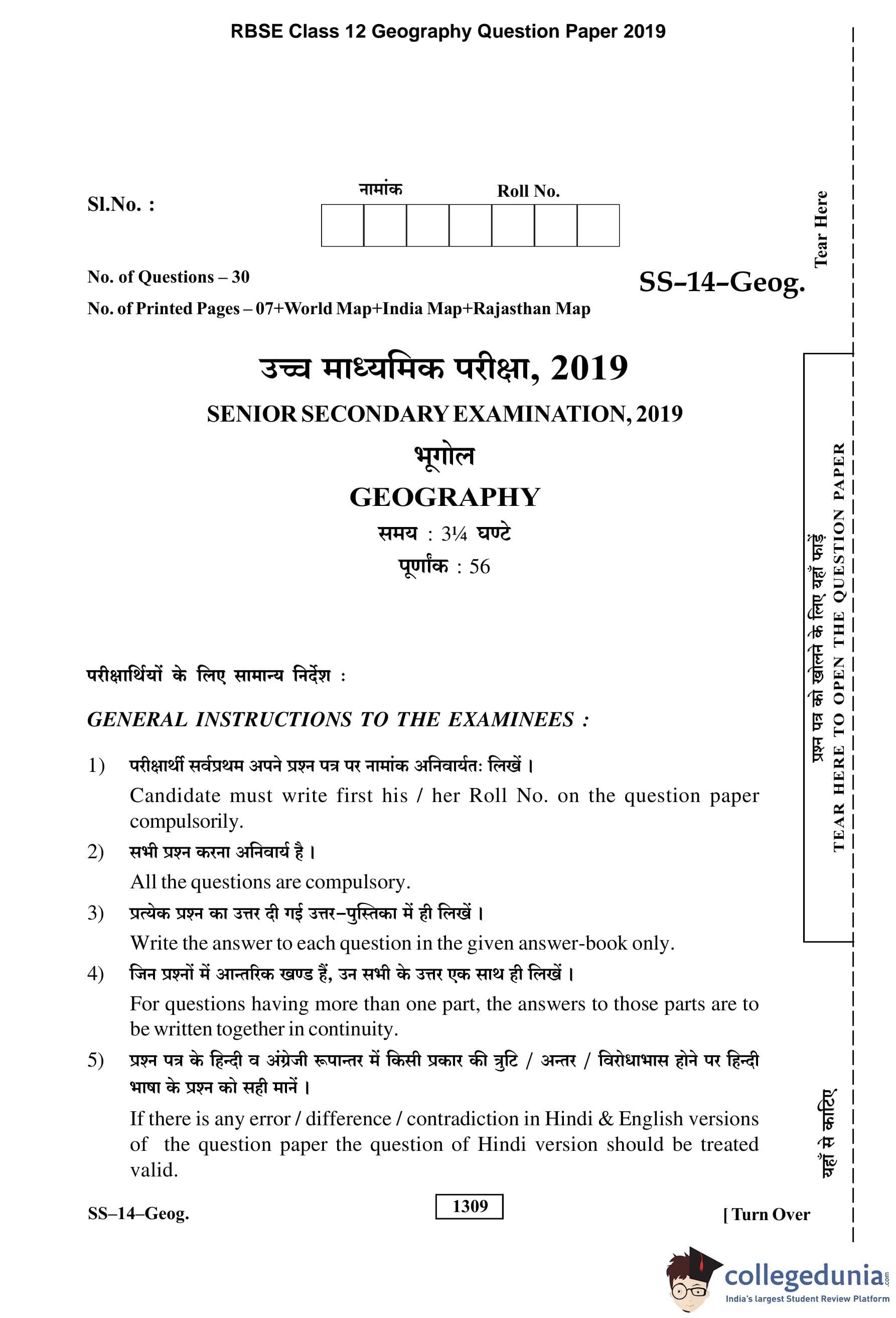 | RBSE Class 12 Geography Question Paper 2019 PDF | RBSE Class 12 Geography Answer Key 2019 PDF |