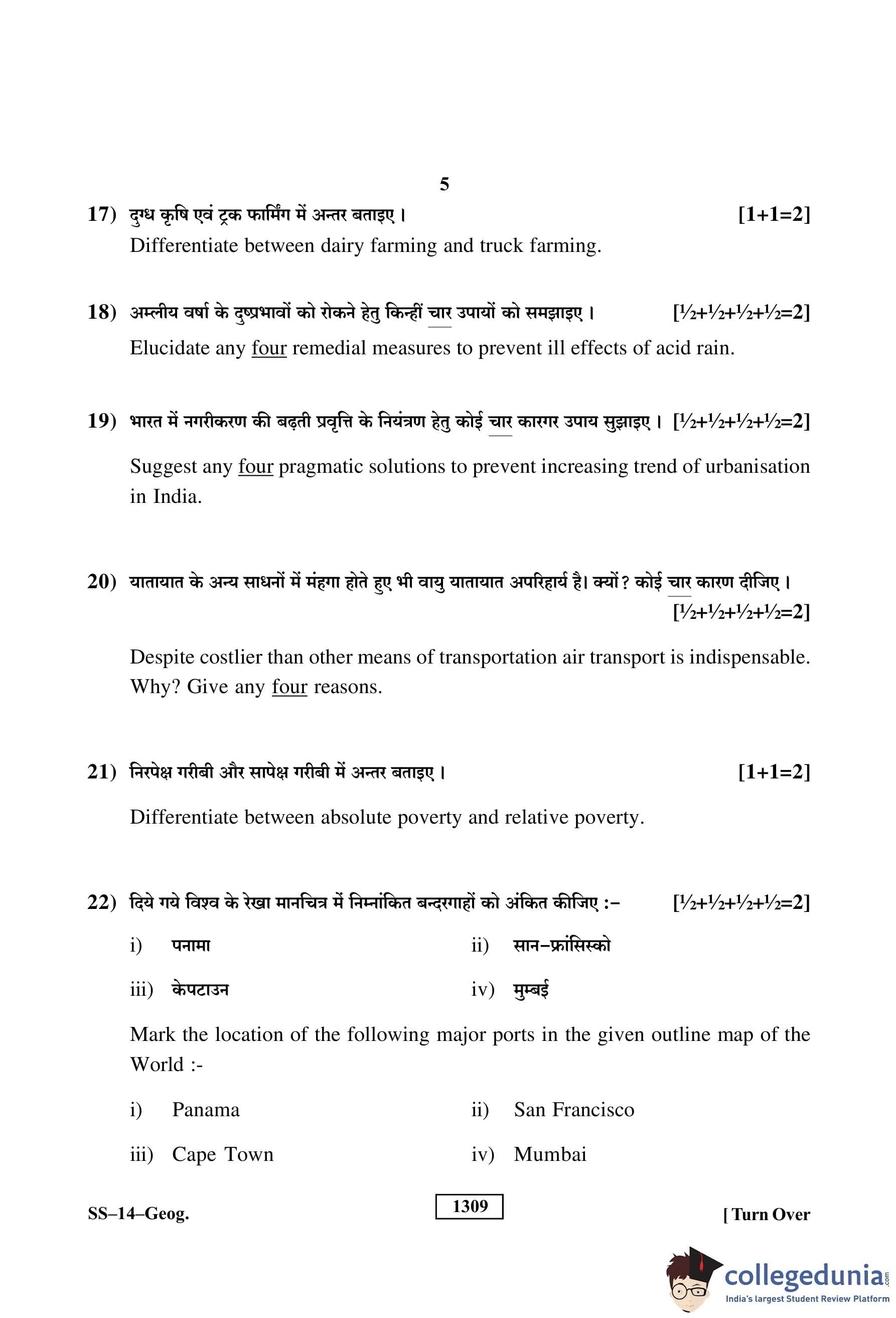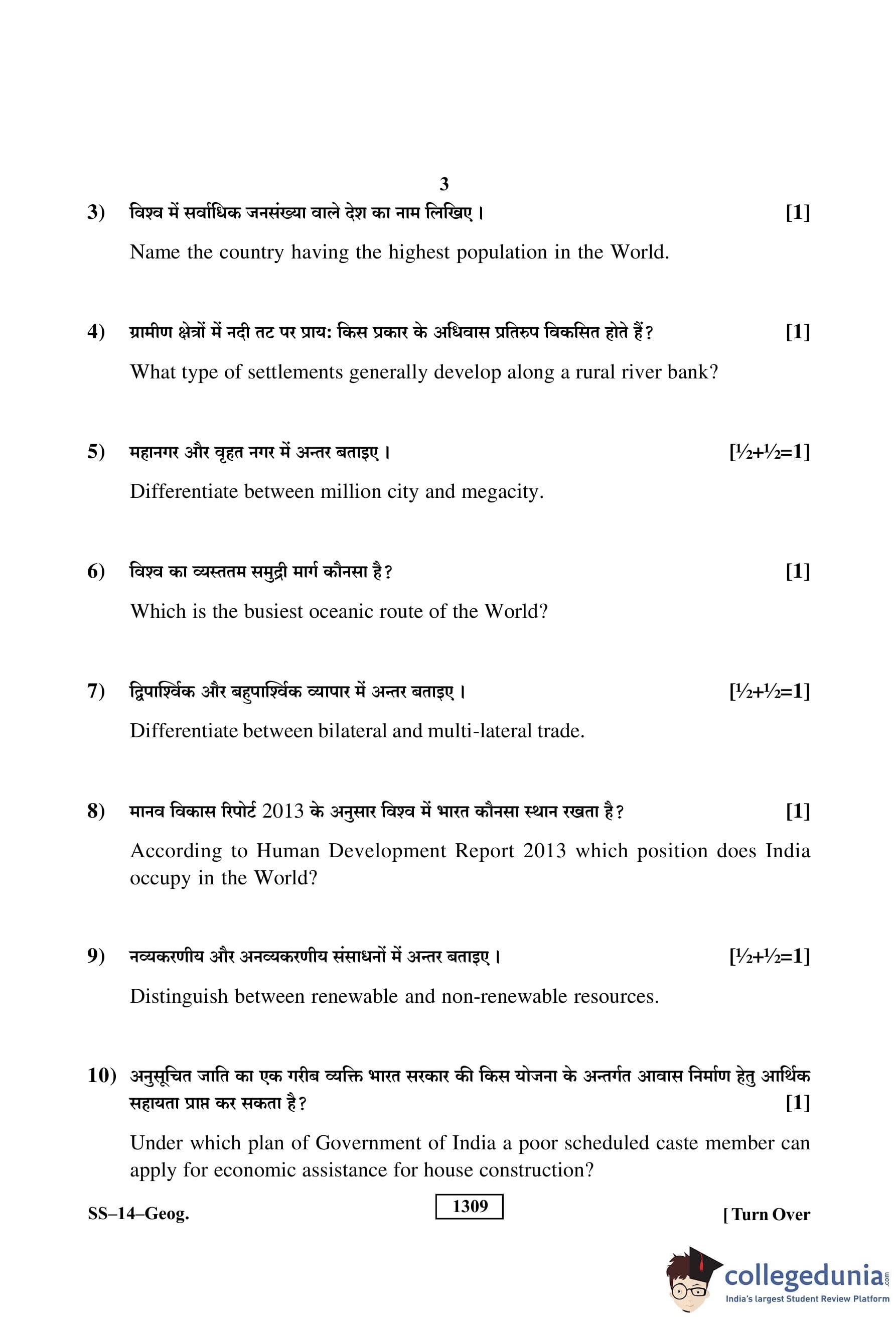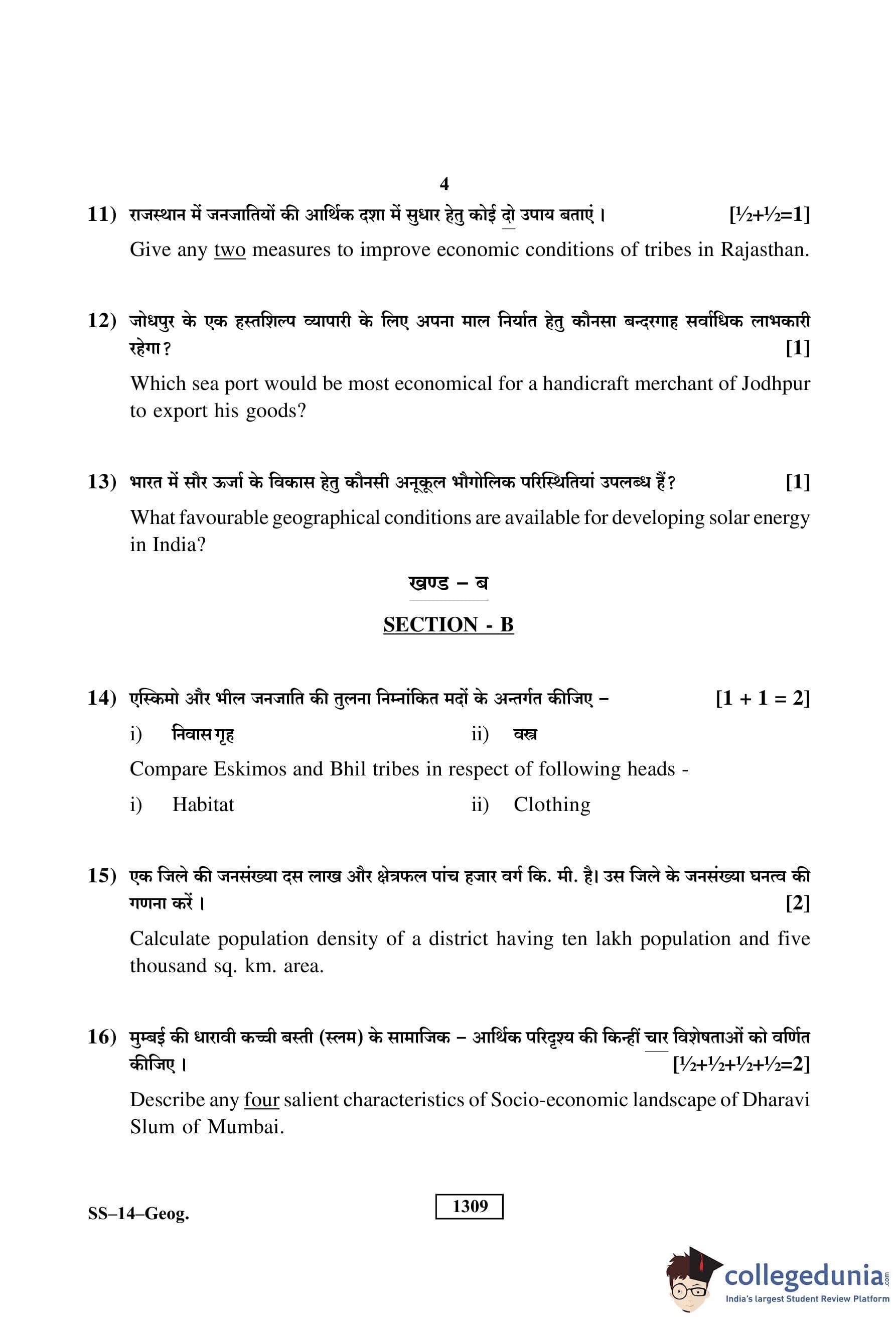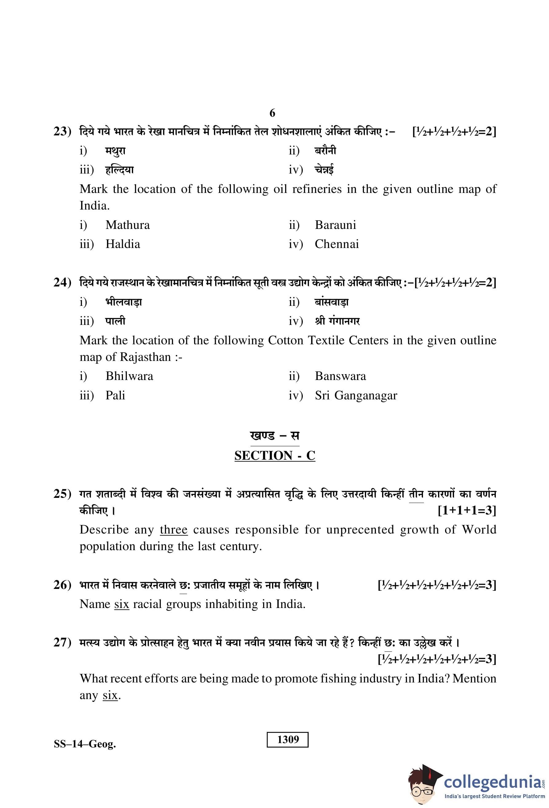 RBSE Class 12 Geography Question Paper 2019 with Answer Key