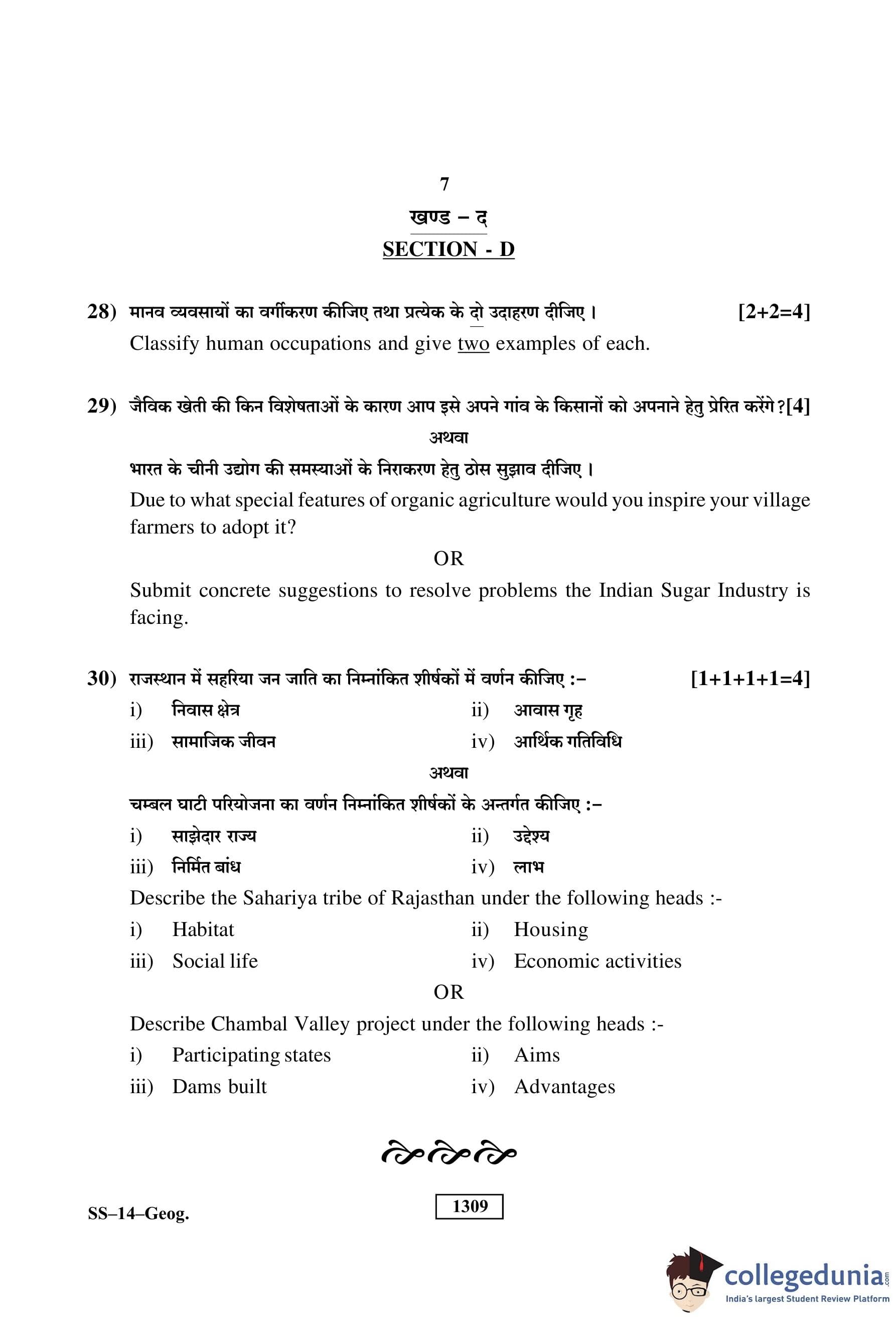 RBSE Class 12 Geography Question Paper 2019 with Answer Key pdf is available for download here. The exam was conducted by Board of Secondary Education Rajasthan (BSER) on March 13, 2019 in the Morning Session 8:30 AM to 11:45 AM. The question paper comprised a total of 30 questions divided among 4 sections.
