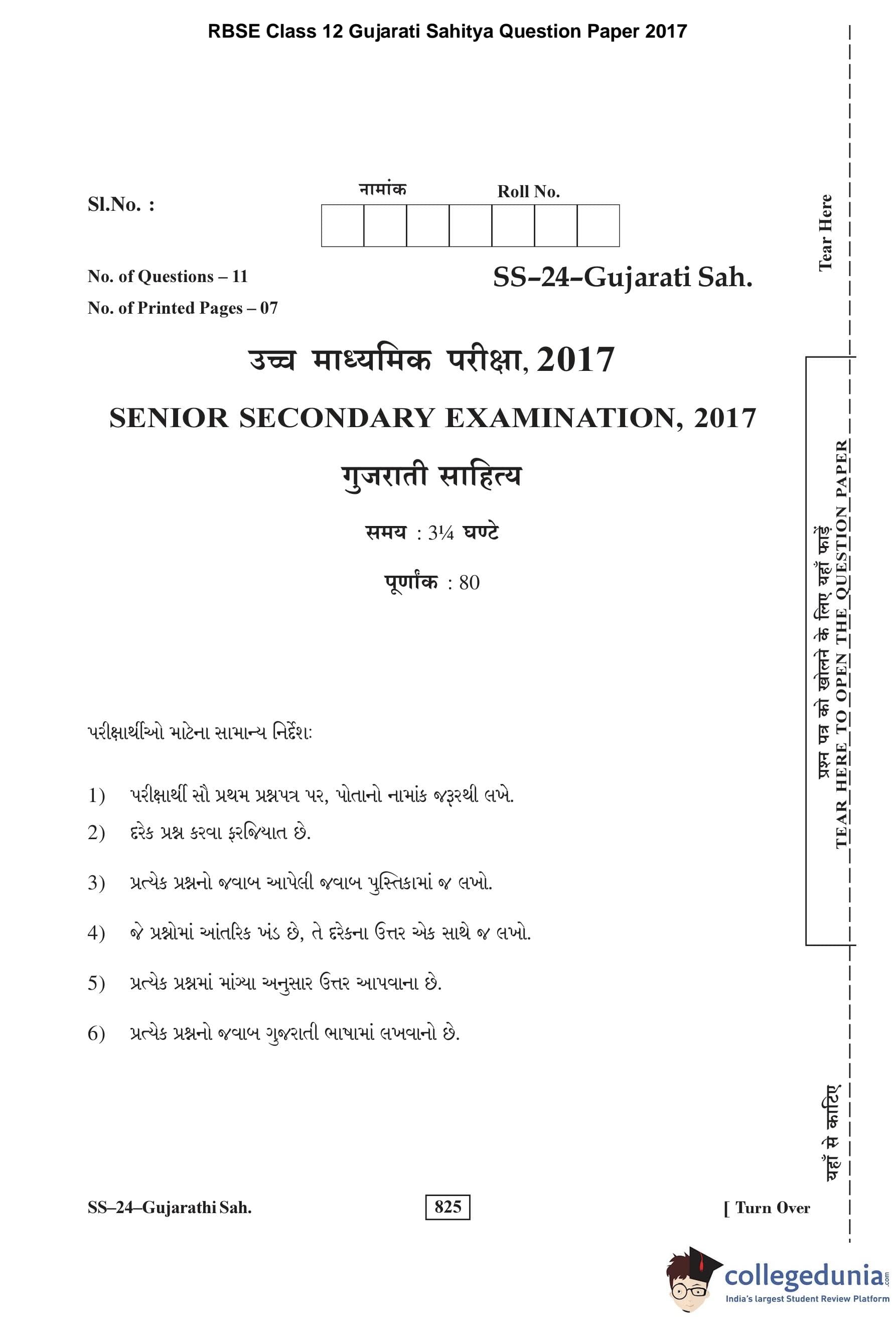 | RBSE Class 12 Gujarati Sahitya Question Paper 2017 PDF | RBSE Class 12 Gujarati Sahitya Answer Key 2017 PDF |
