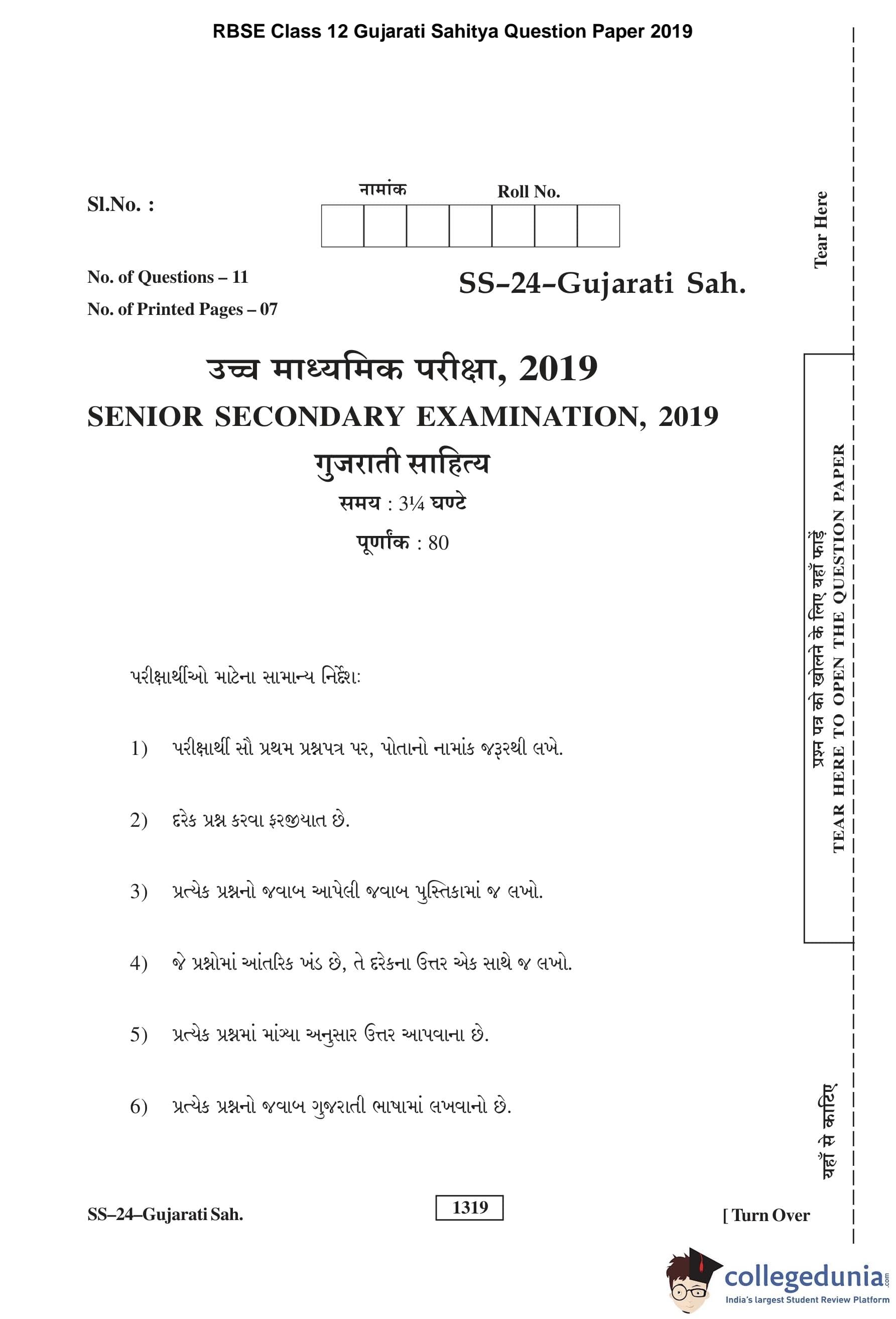 | RBSE Class 12 Gujarati Sahitya Question Paper 2019 PDF | RBSE Class 12 Gujarati Sahitya Answer Key 2019 PDF |