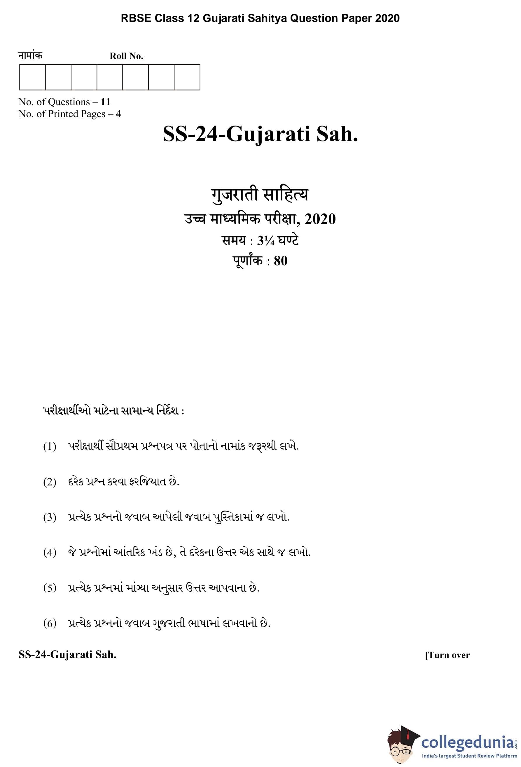 | RBSE Class 12 Gujarati Sahitya Question Paper 2020 PDF | RBSE Class 12 Gujarati Sahitya Answer Key 2020 PDF |