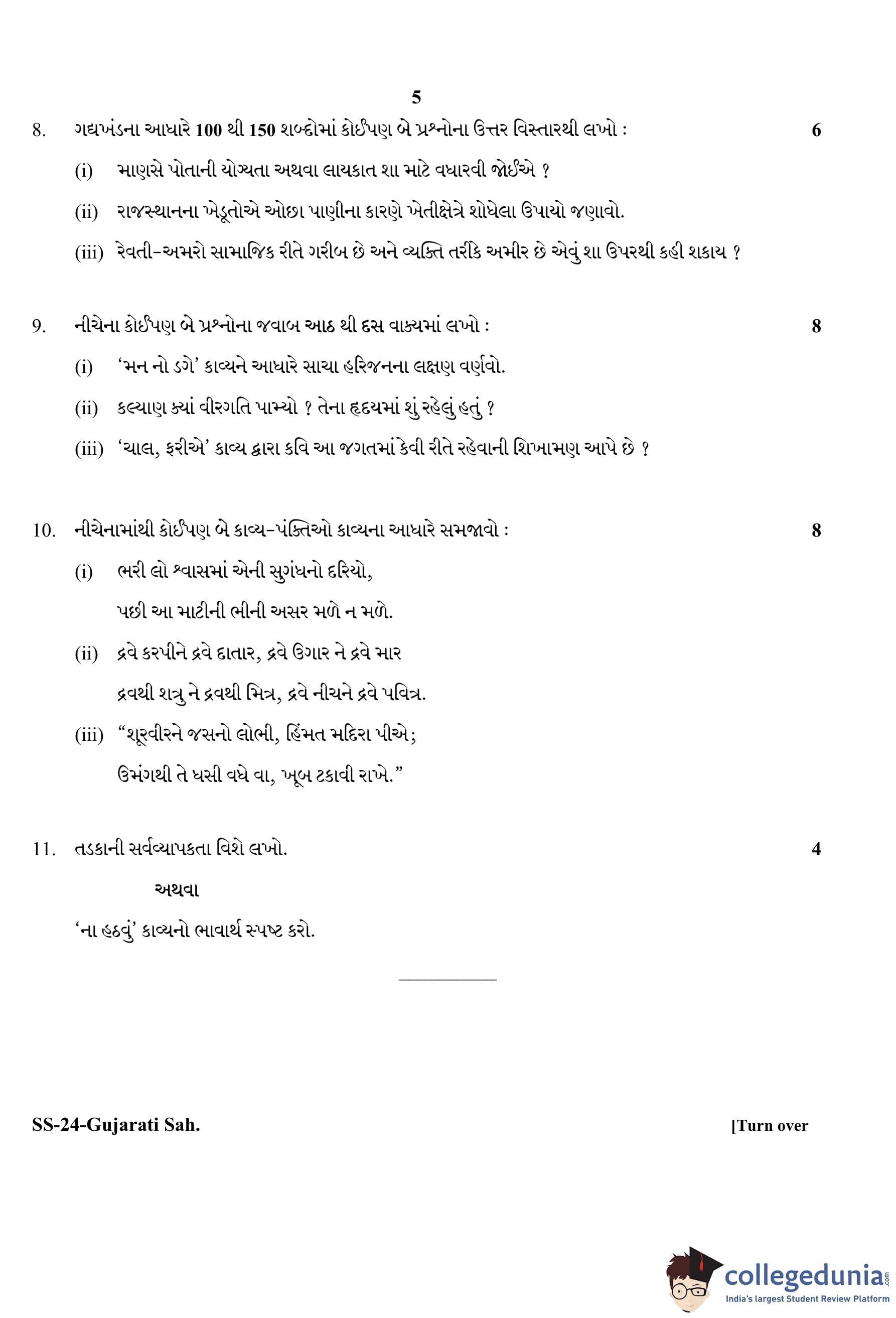 RBSE Class 12 Gujarati Sahitya Question Paper 2020 with Answer Key pdf is available for download here. The exam was conducted by Board of Secondary Education Rajasthan (BSER) on March 24, 2020 in the Morning Session 8:30 AM to 11:45 AM. The question paper comprised a total of 11 questions.