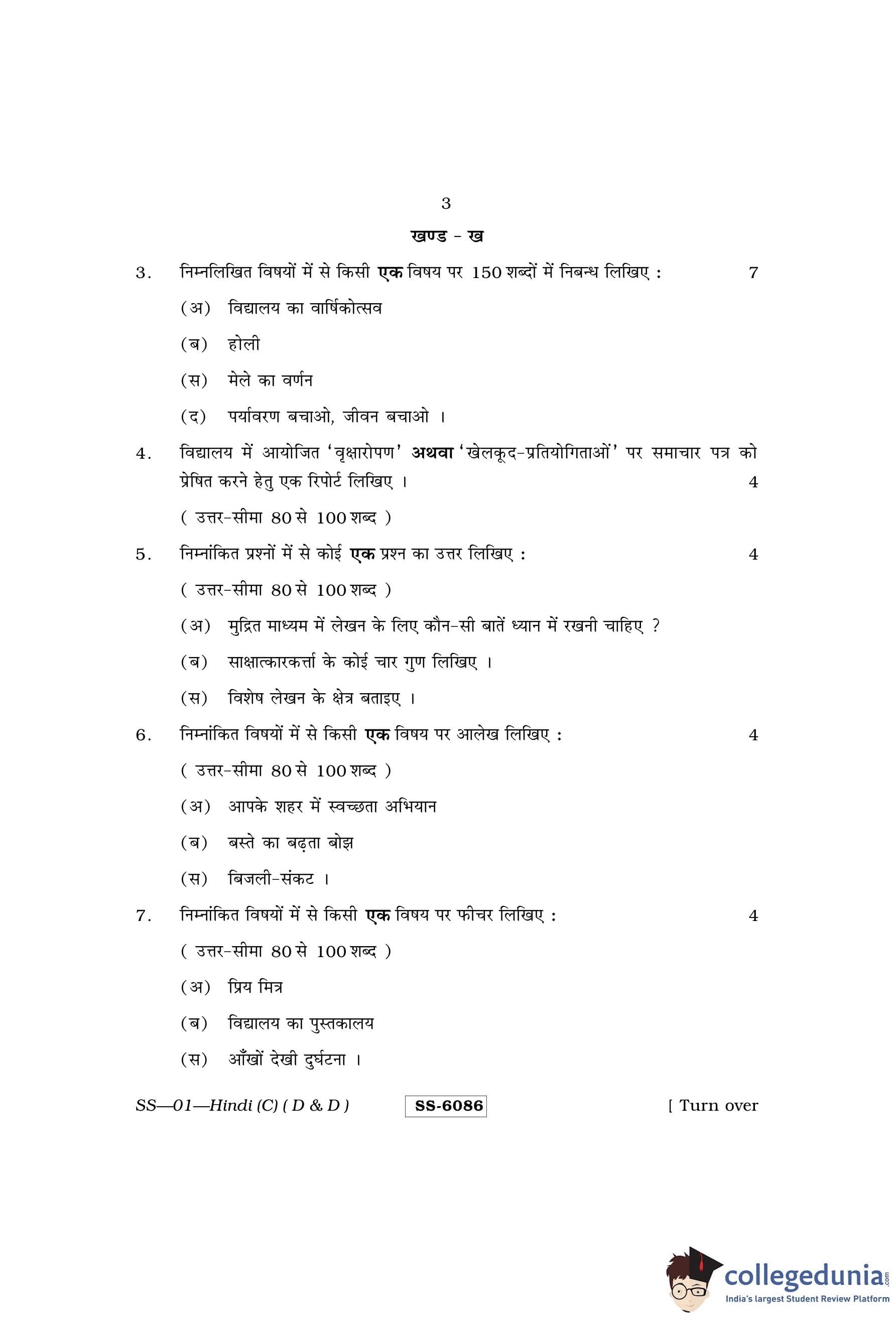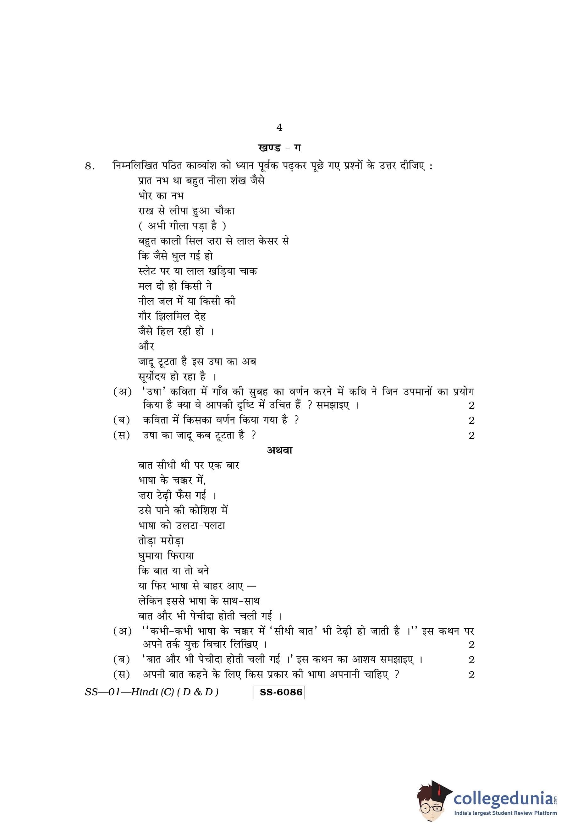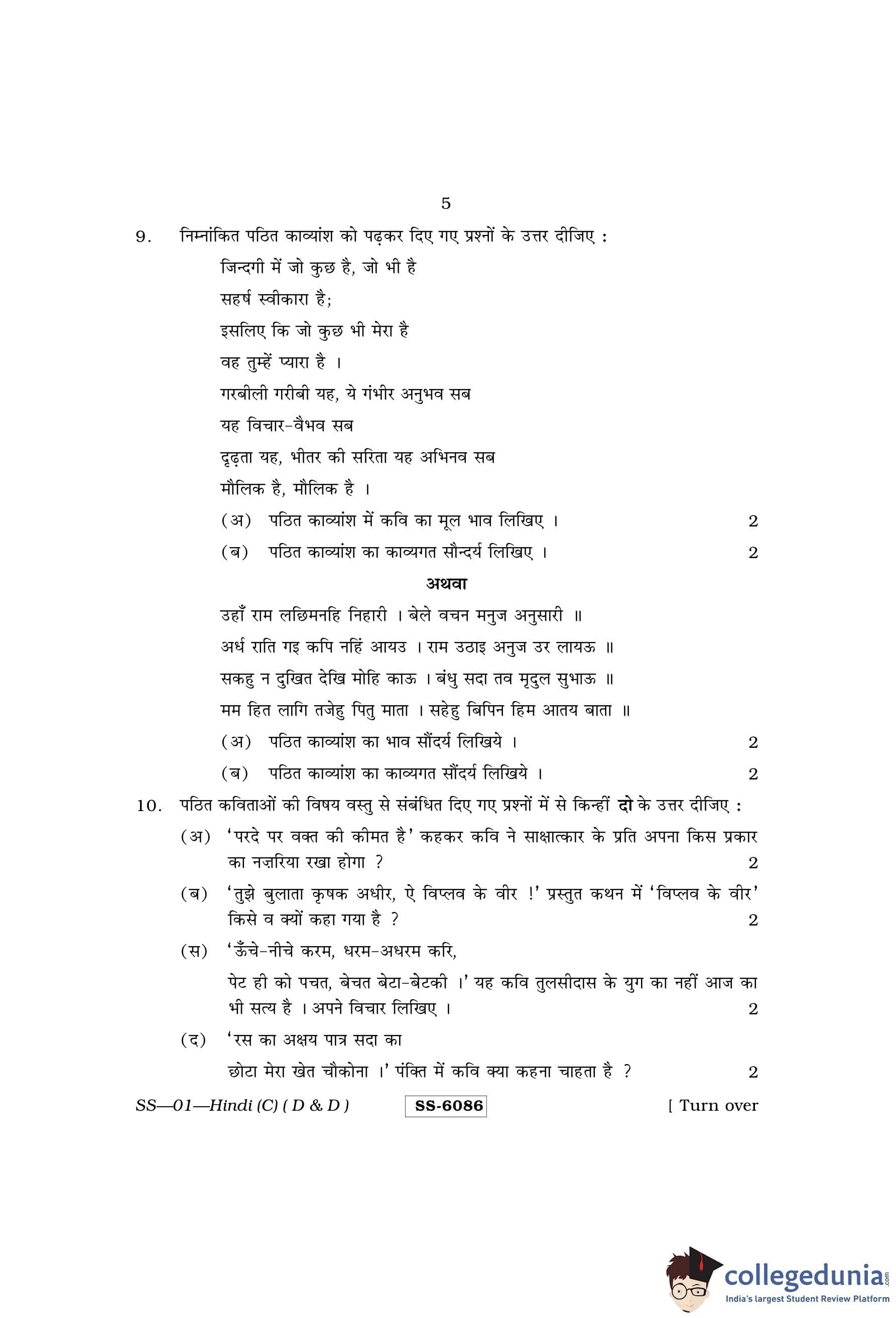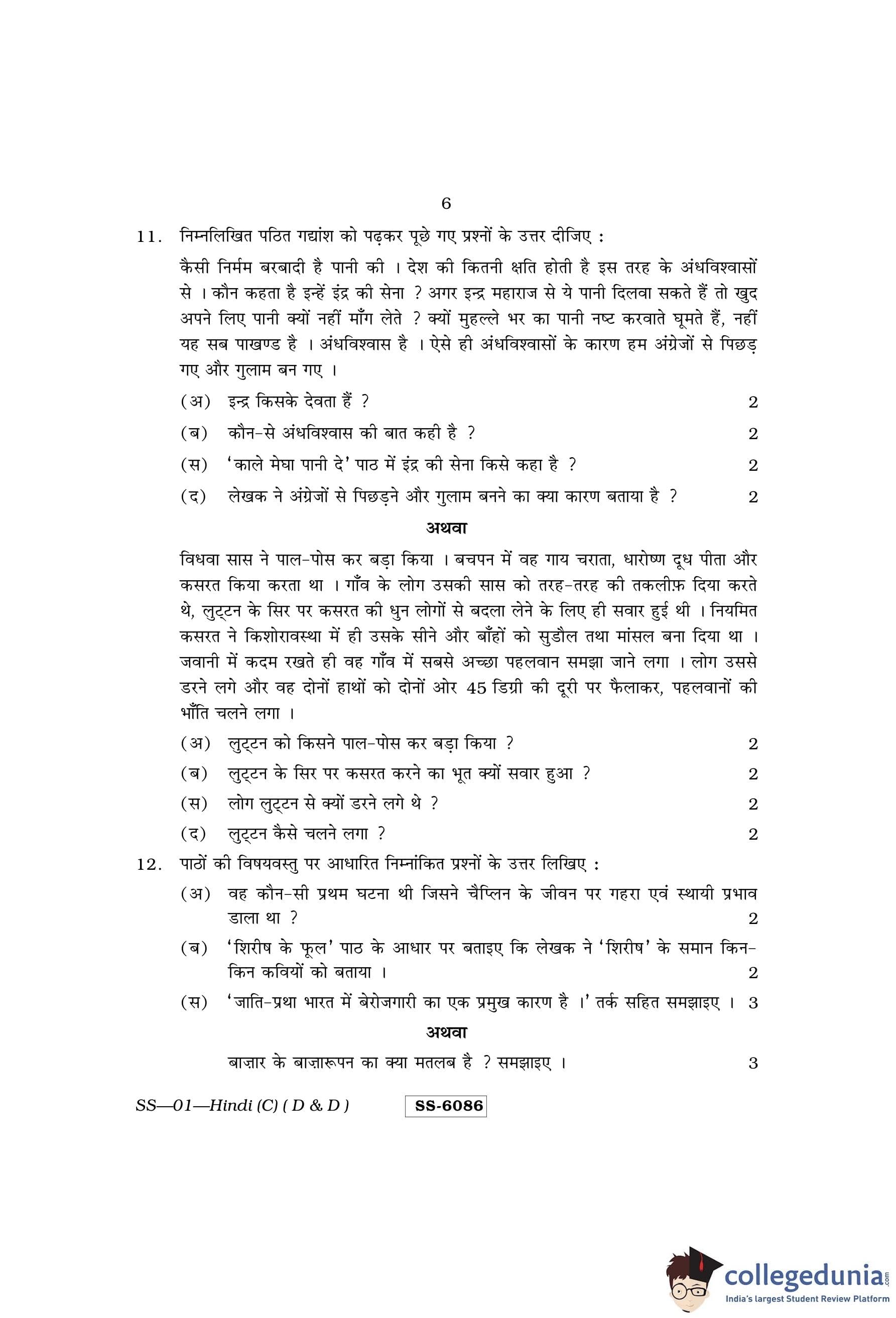 RBSE Class 12 Hindi (D and D) Question Paper 2015 with Answer Key