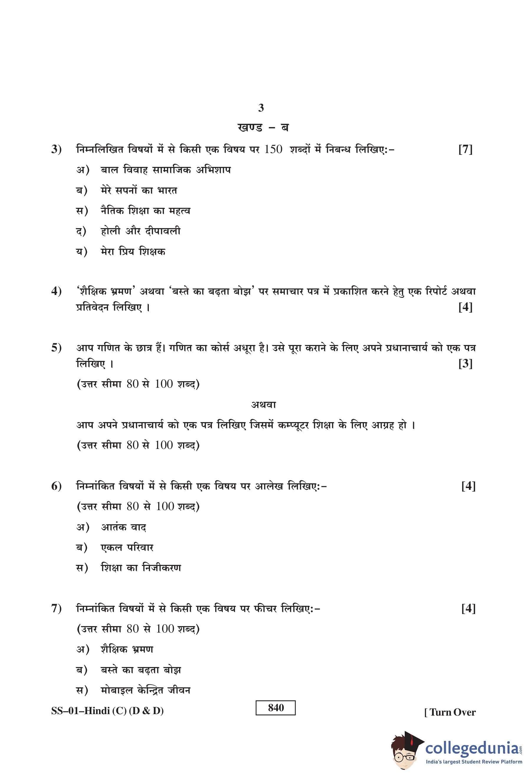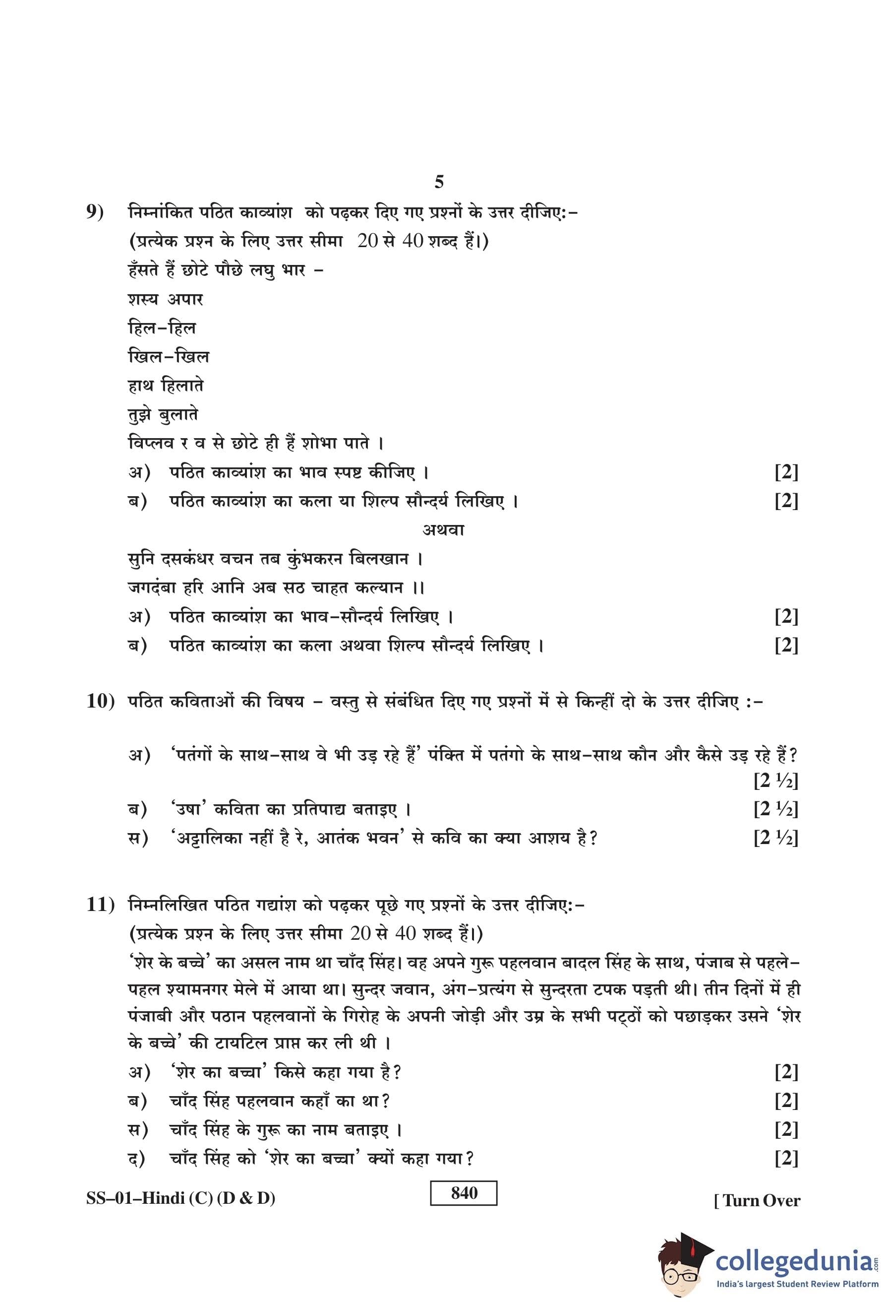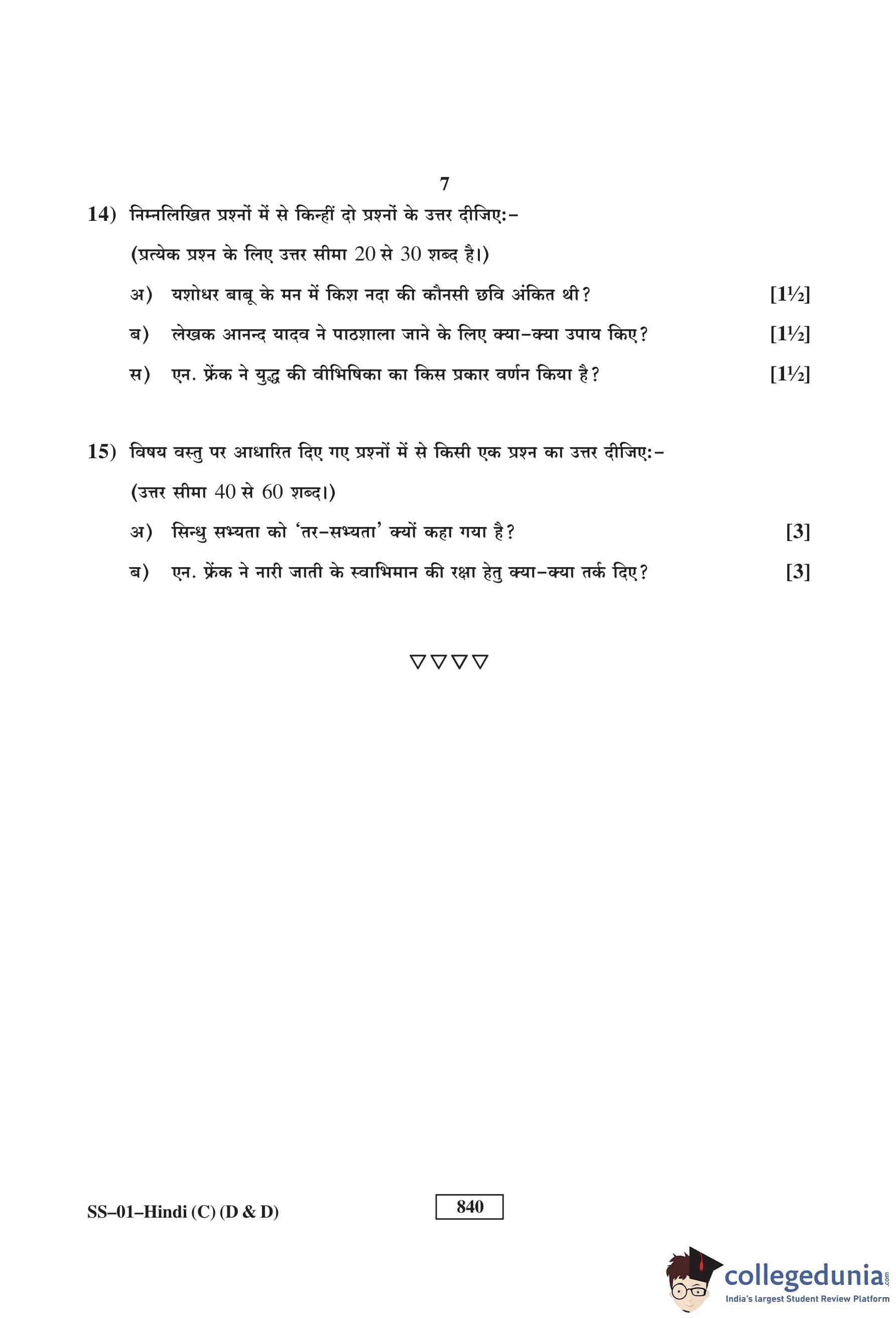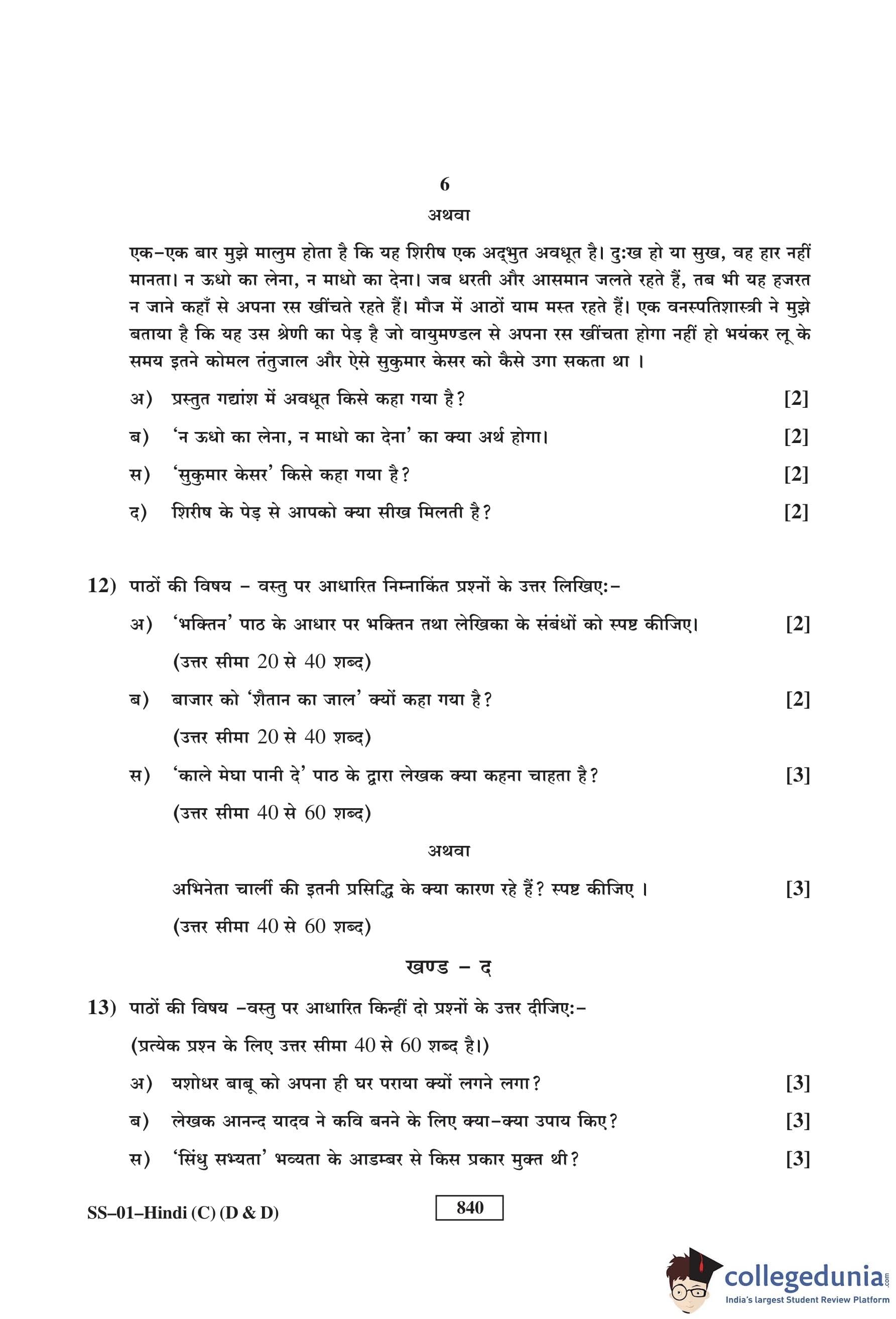 RBSE Class 12 Hindi (D and D) Question Paper 2017 with Answer Key