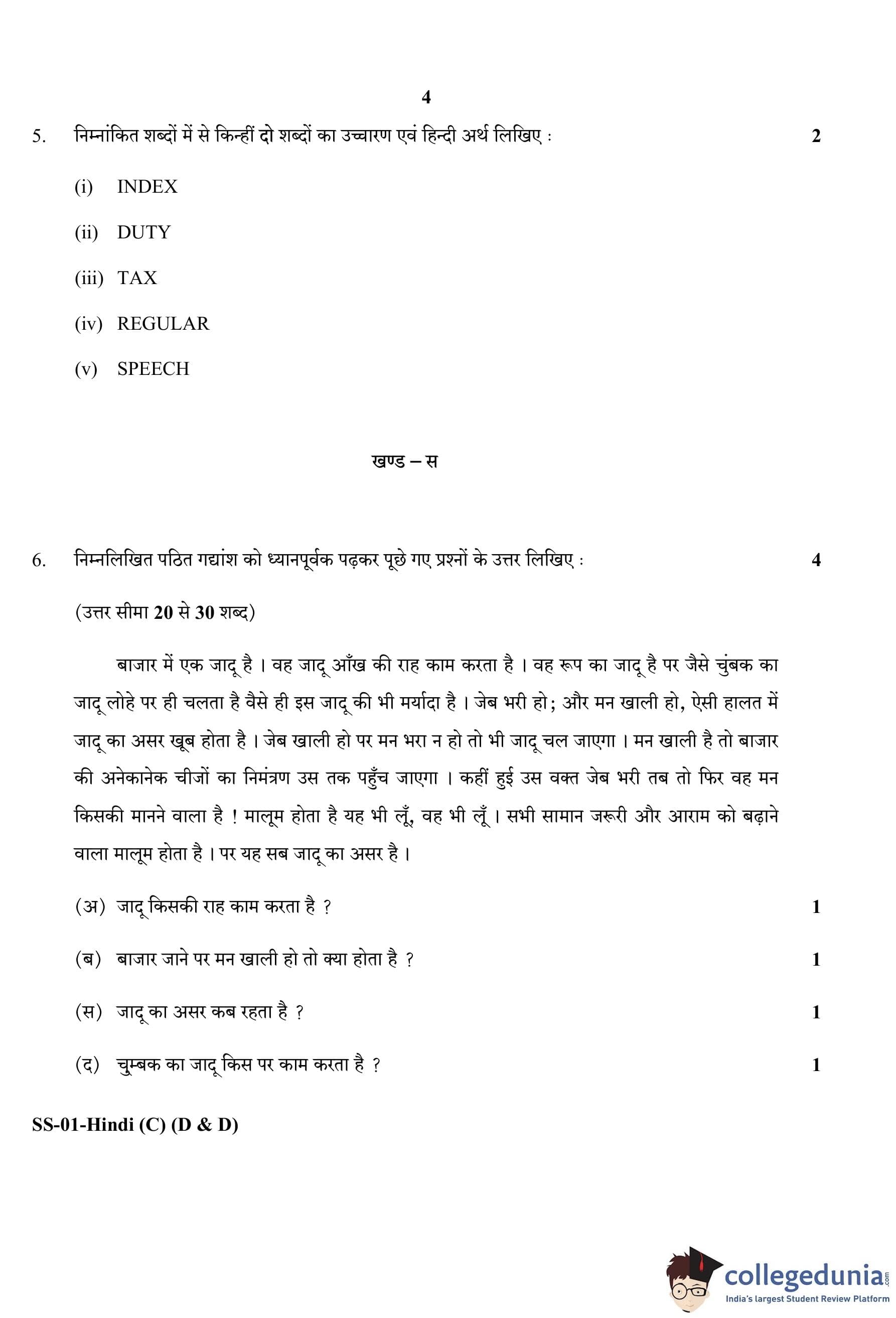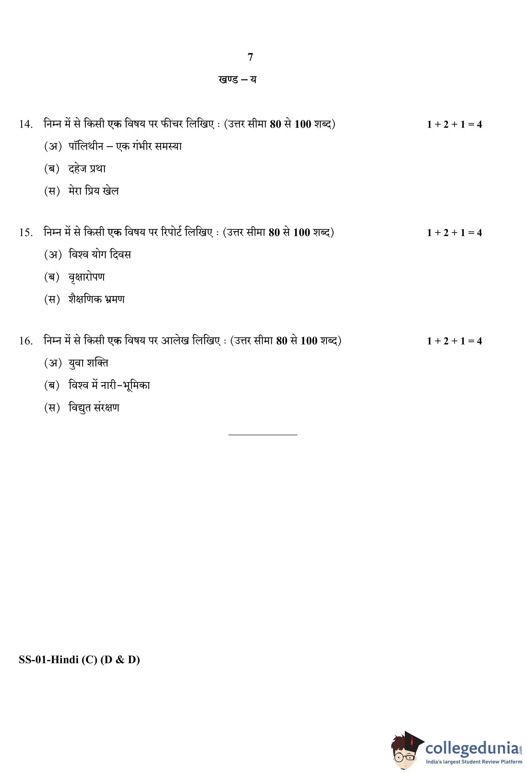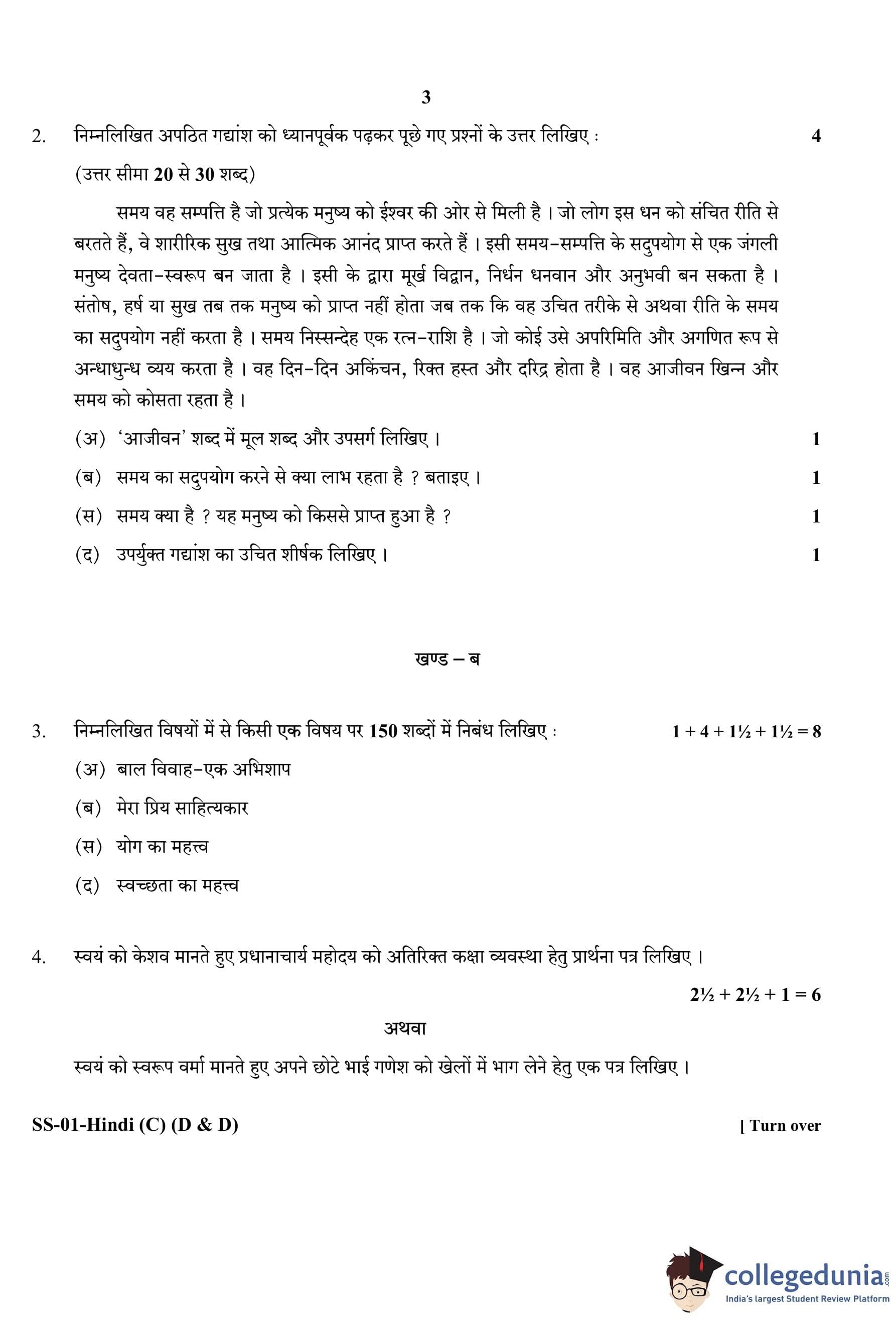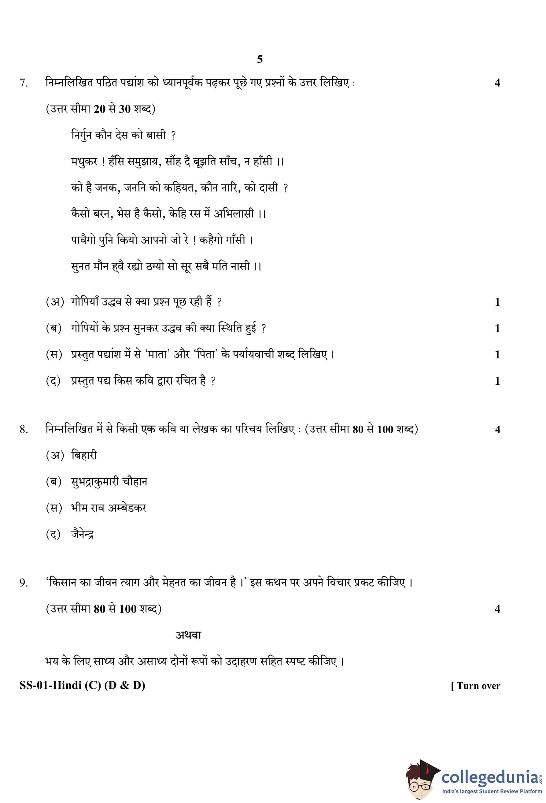 RBSE Class 12 Hindi (D and D) Question Paper 2020 with Answer Key