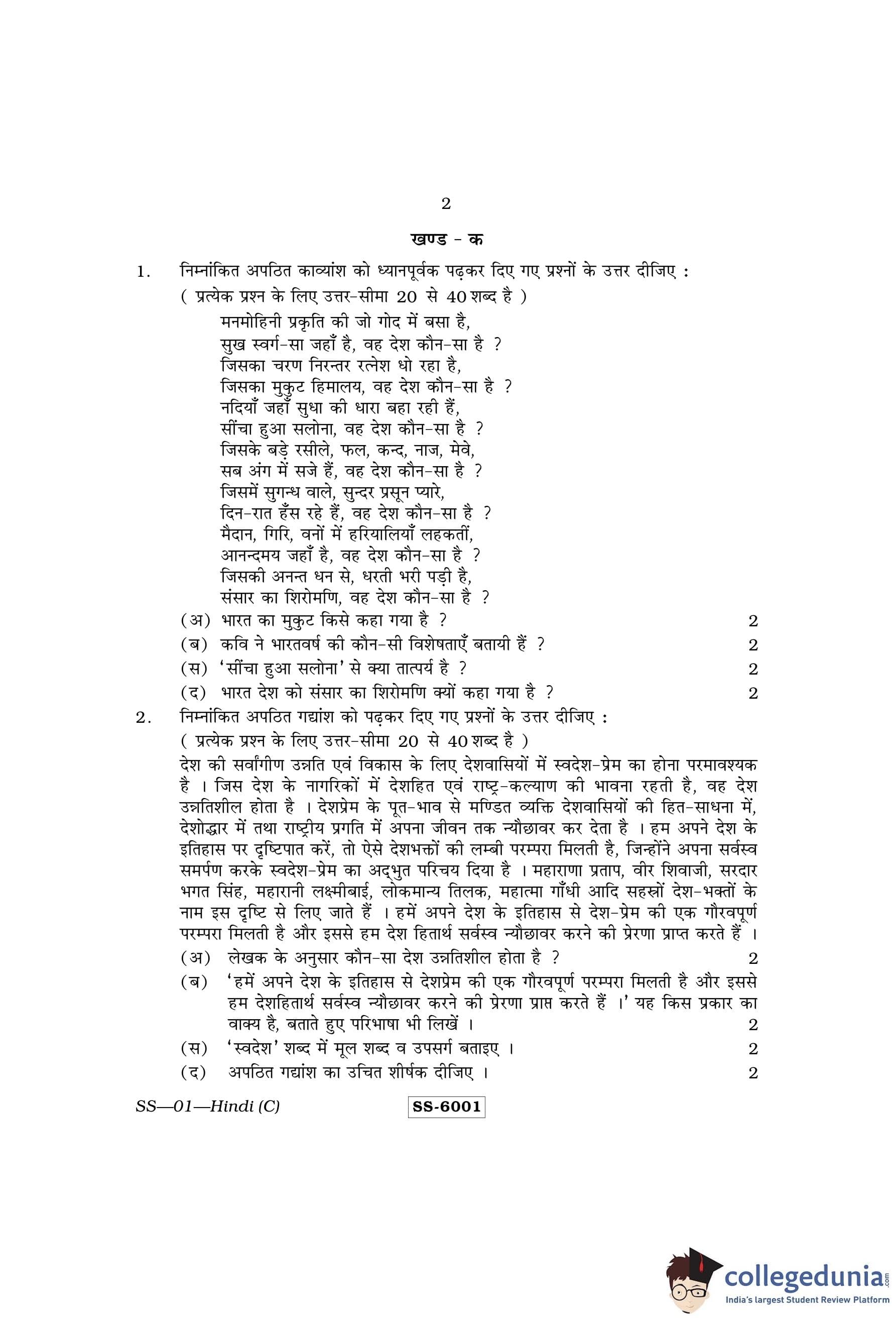 RBSE Class 12 Hindi Question Paper 2015 with Answer Key