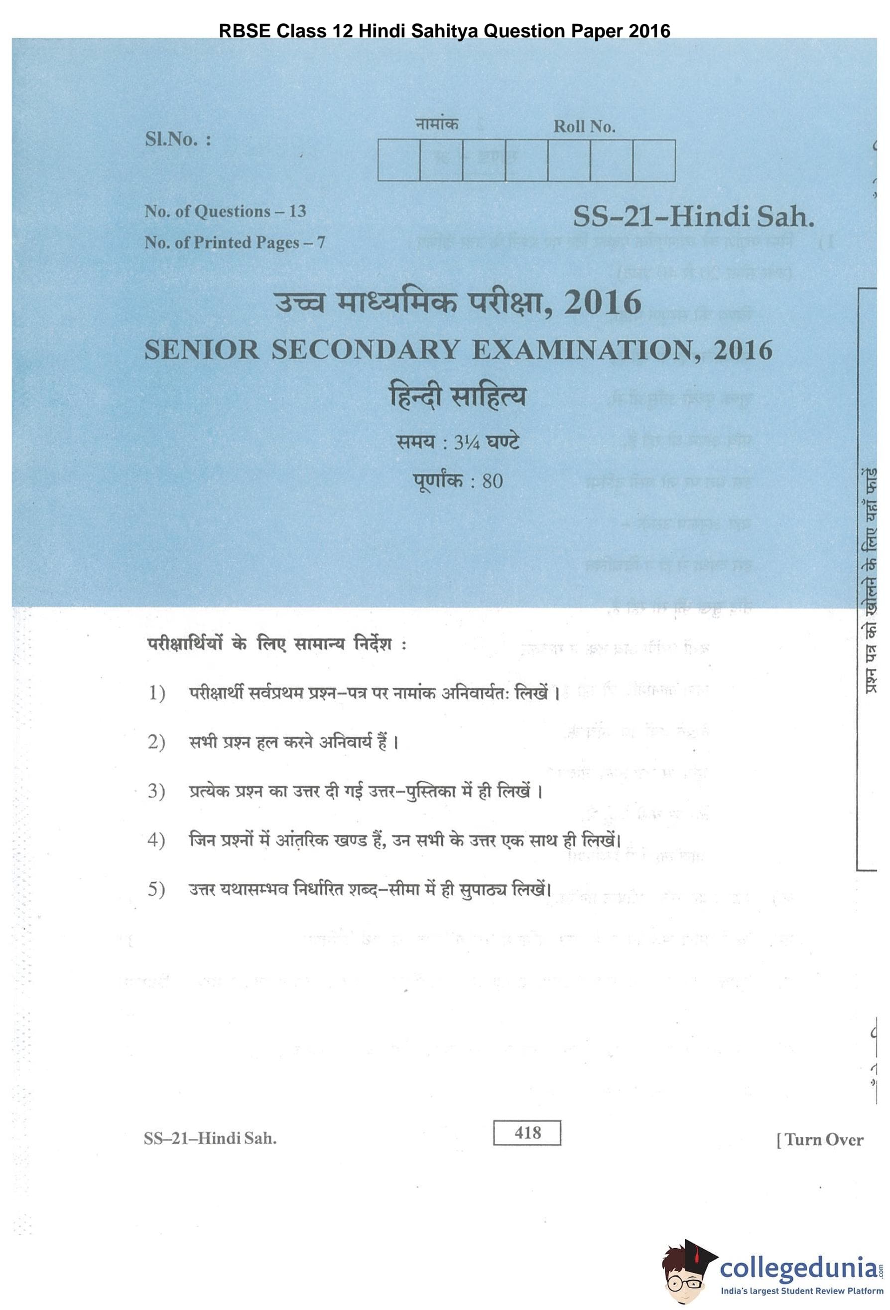 | RBSE Class 12 Hindi Sahitya Question Paper 2016 PDF | RBSE Class 12 Hindi Sahitya Answer Key 2016 PDF |
