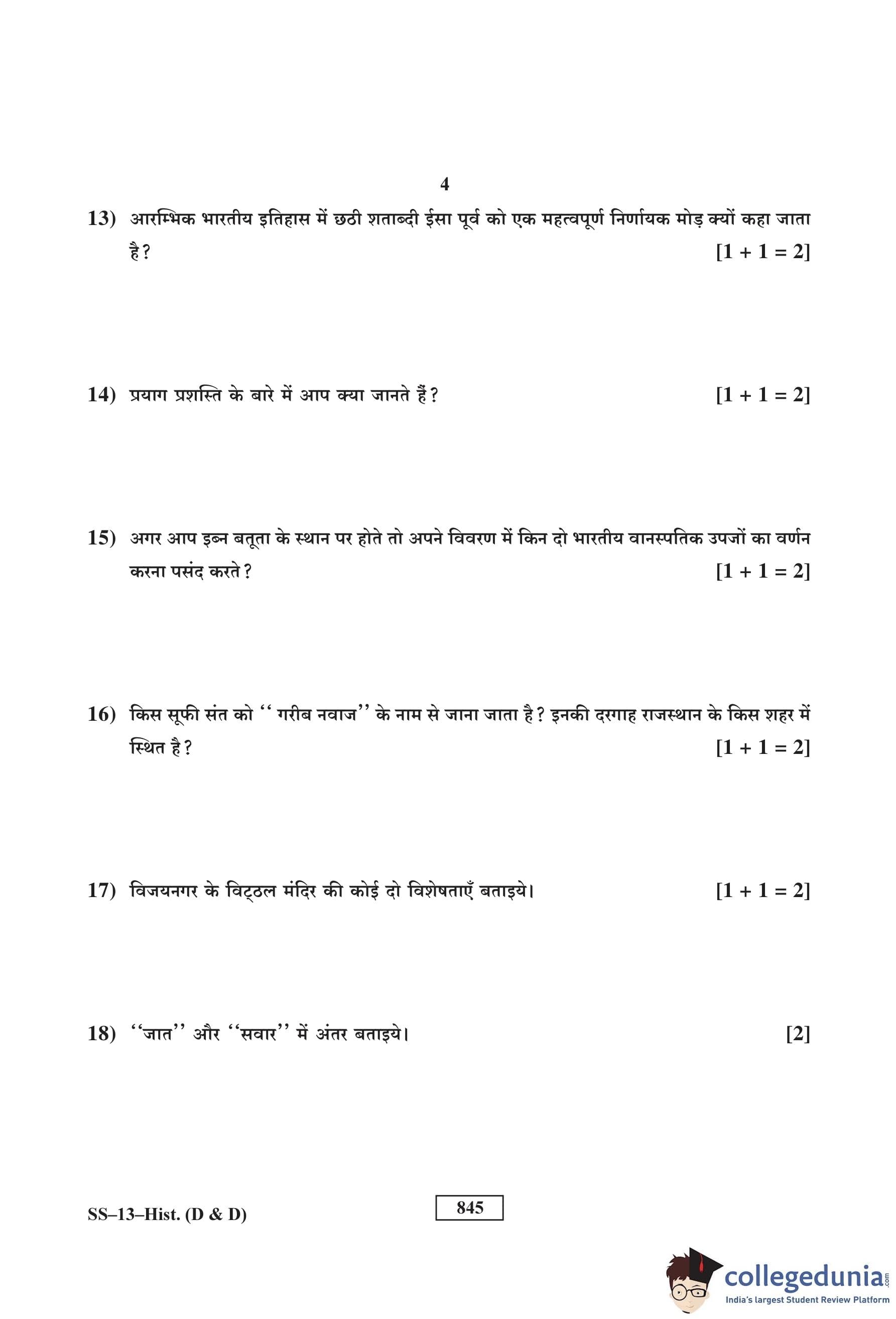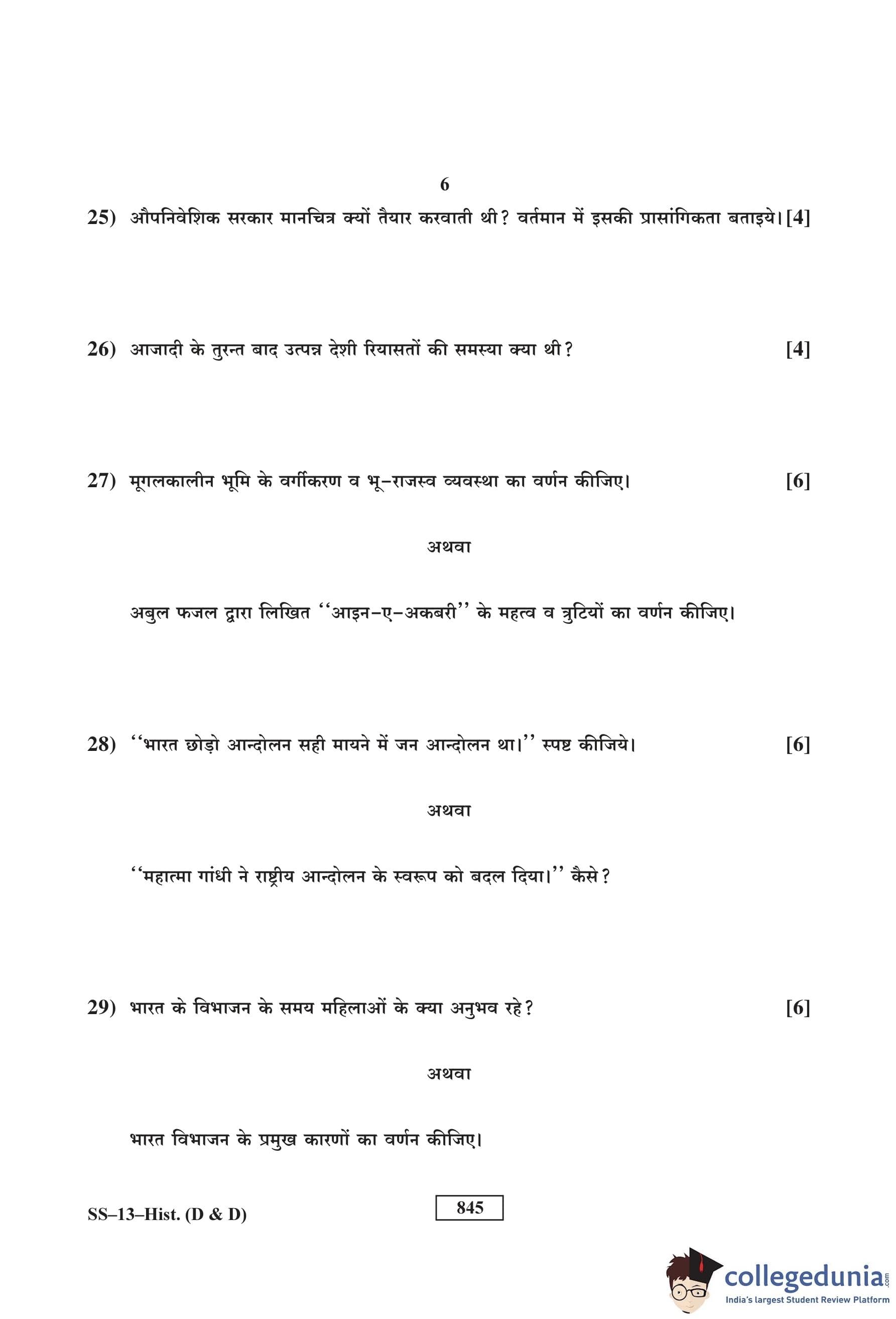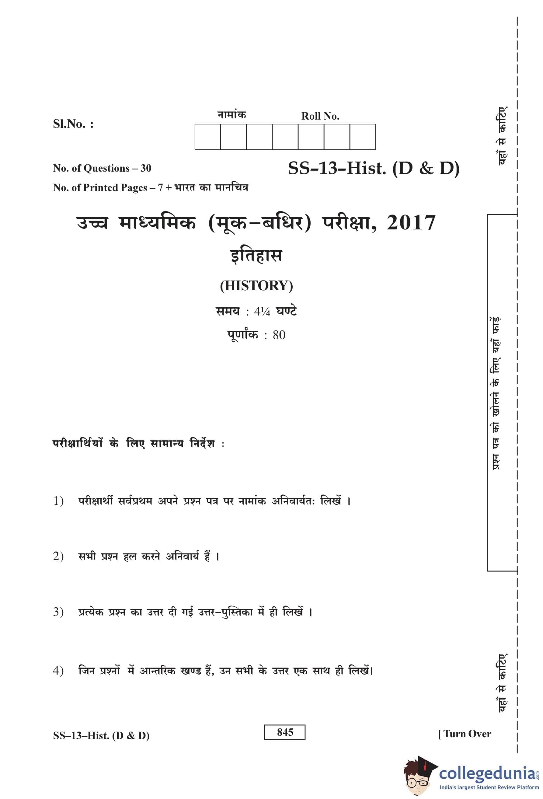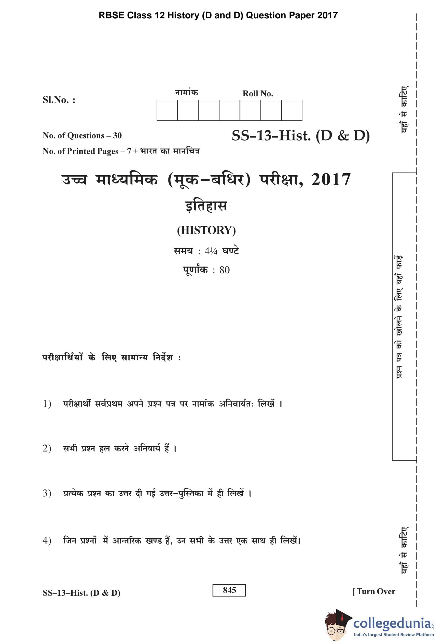 RBSE Class 12 History (D and D) Question Paper 2017 with Answer Key pdf is available for download here. The exam was conducted by Board of Secondary Education Rajasthan (BSER) on March 10, 2017 in the Morning Session. The question paper comprised a total of 30 questions.