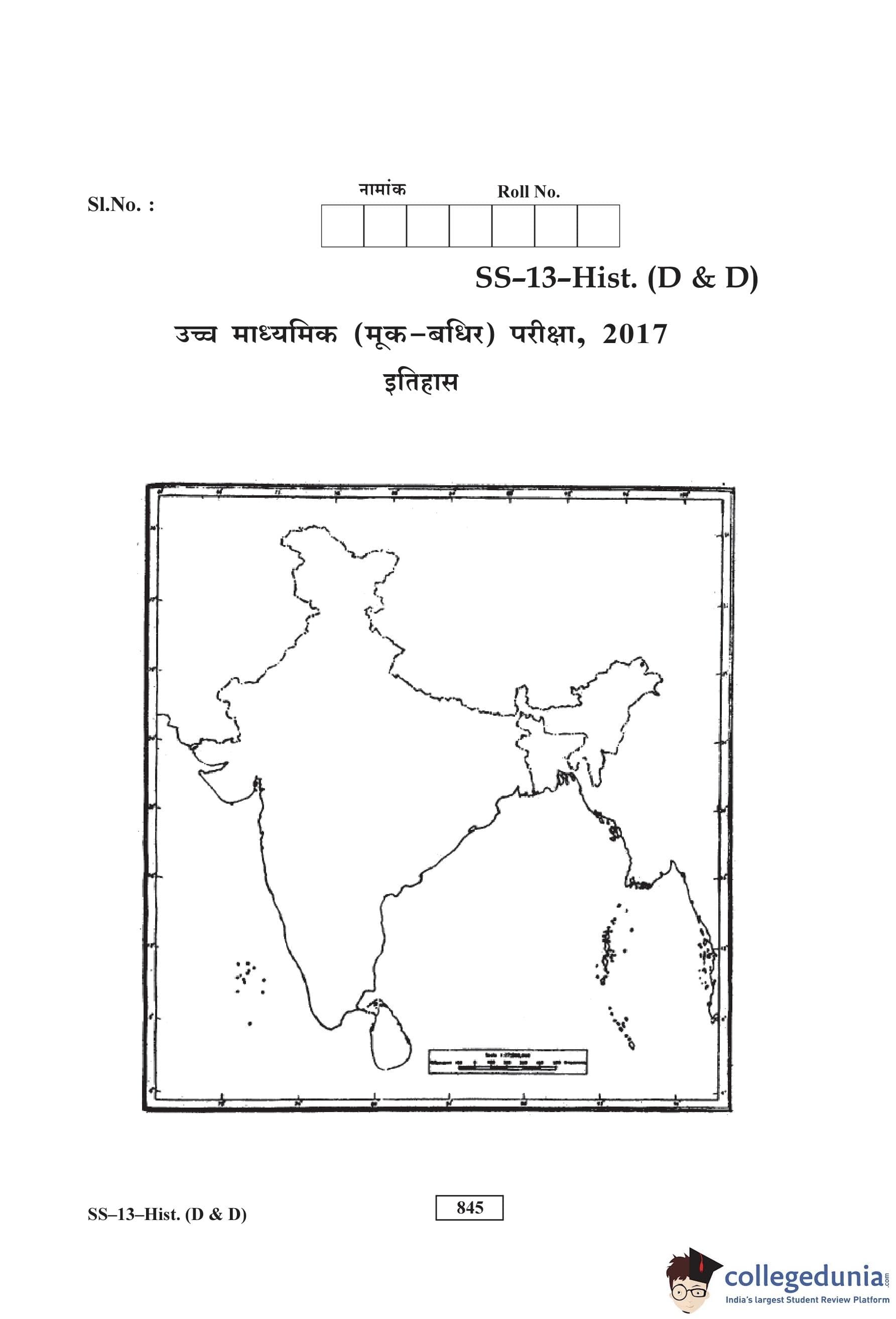 RBSE Class 12 History (D and D) Question Paper 2017 with Answer Key