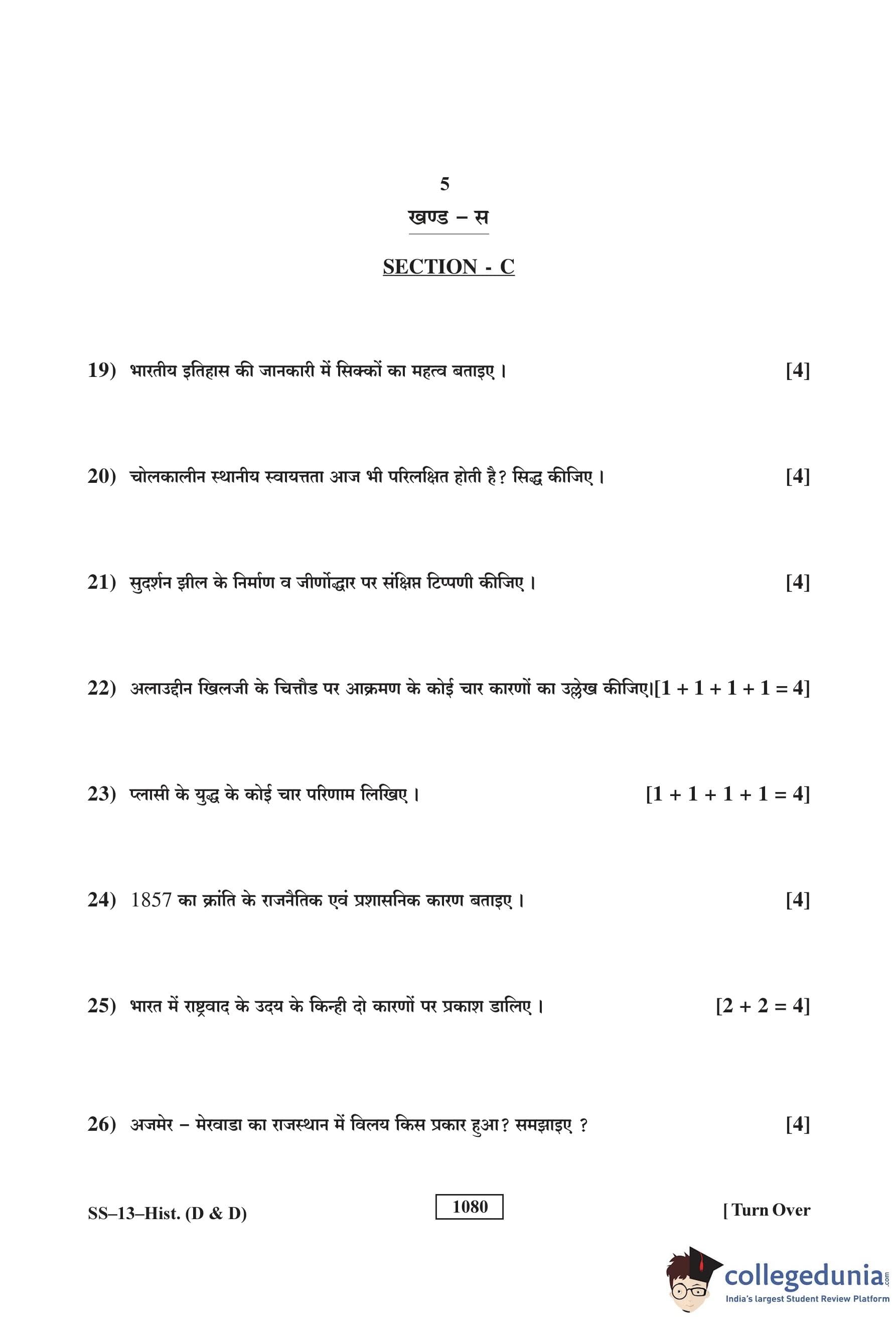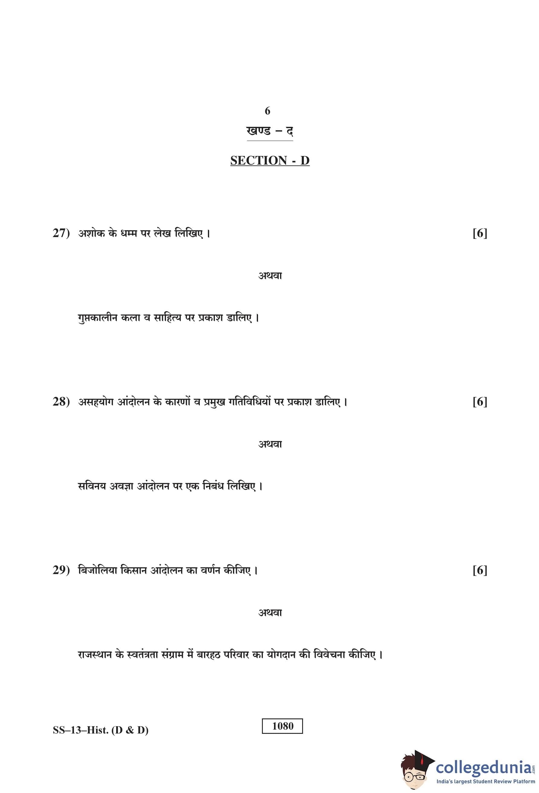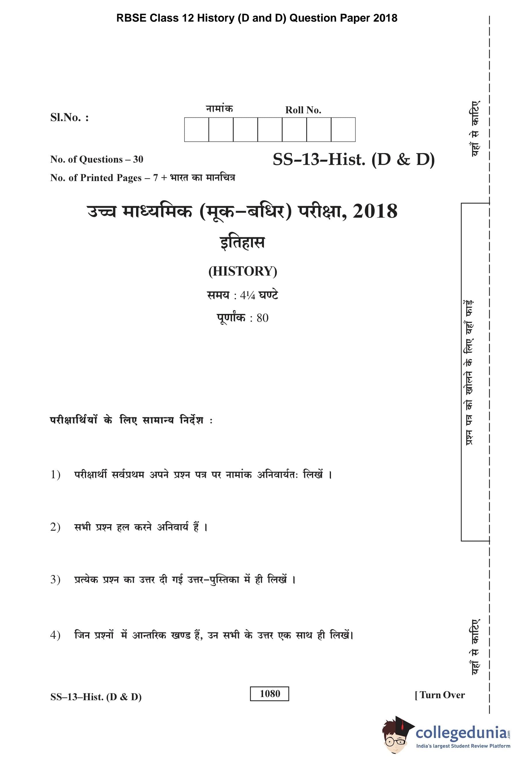 RBSE Class 12 History (D and D) Question Paper 2018 with Answer Key