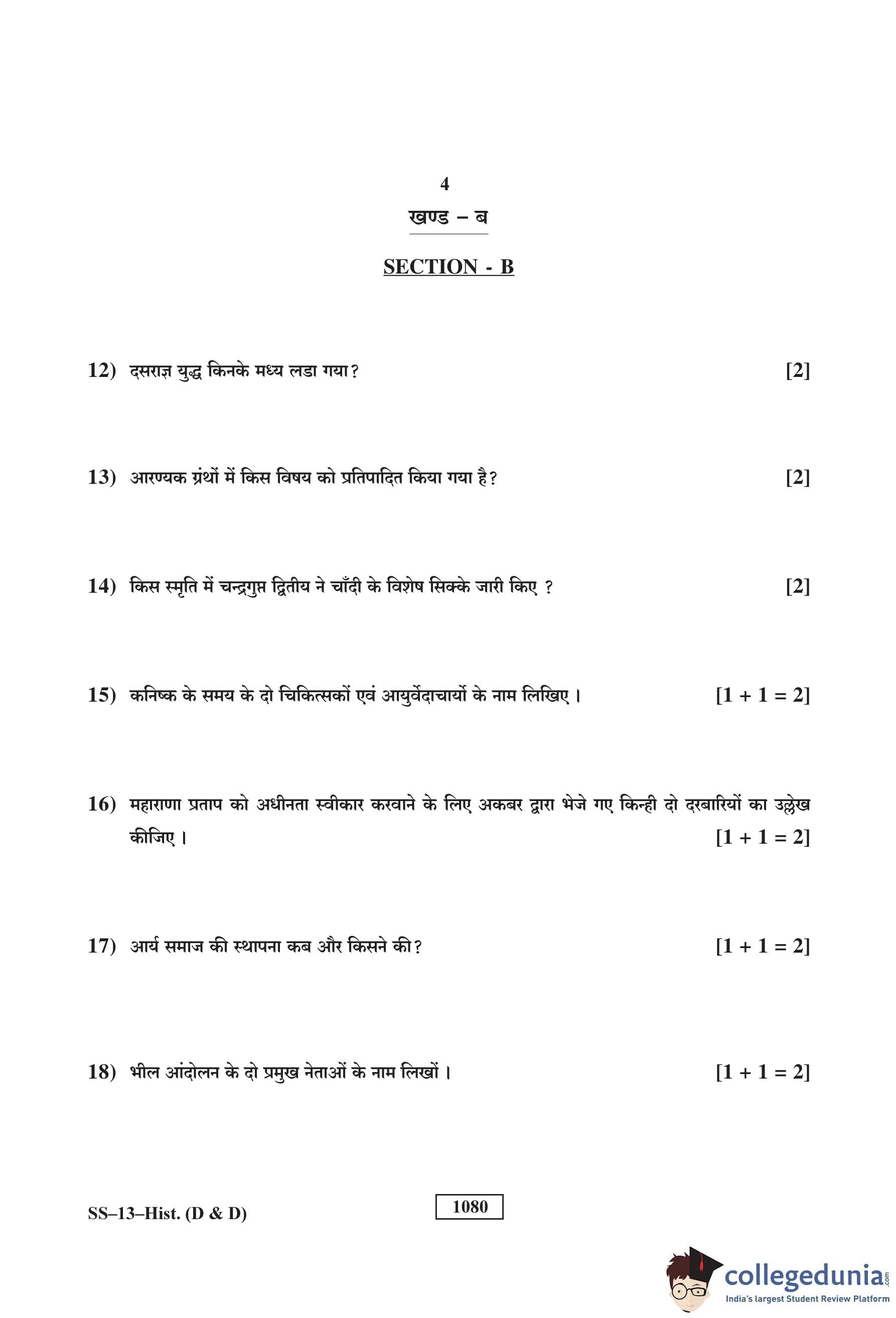 RBSE Class 12 History (D and D) Question Paper 2018 with Answer Key pdf is available for download here. The exam was conducted by Board of Secondary Education Rajasthan (BSER) on March 16, 2018 in the Morning Session 8:30 AM to 11:45 AM. The question paper comprised a total of 30 questions divided among 4 sections.