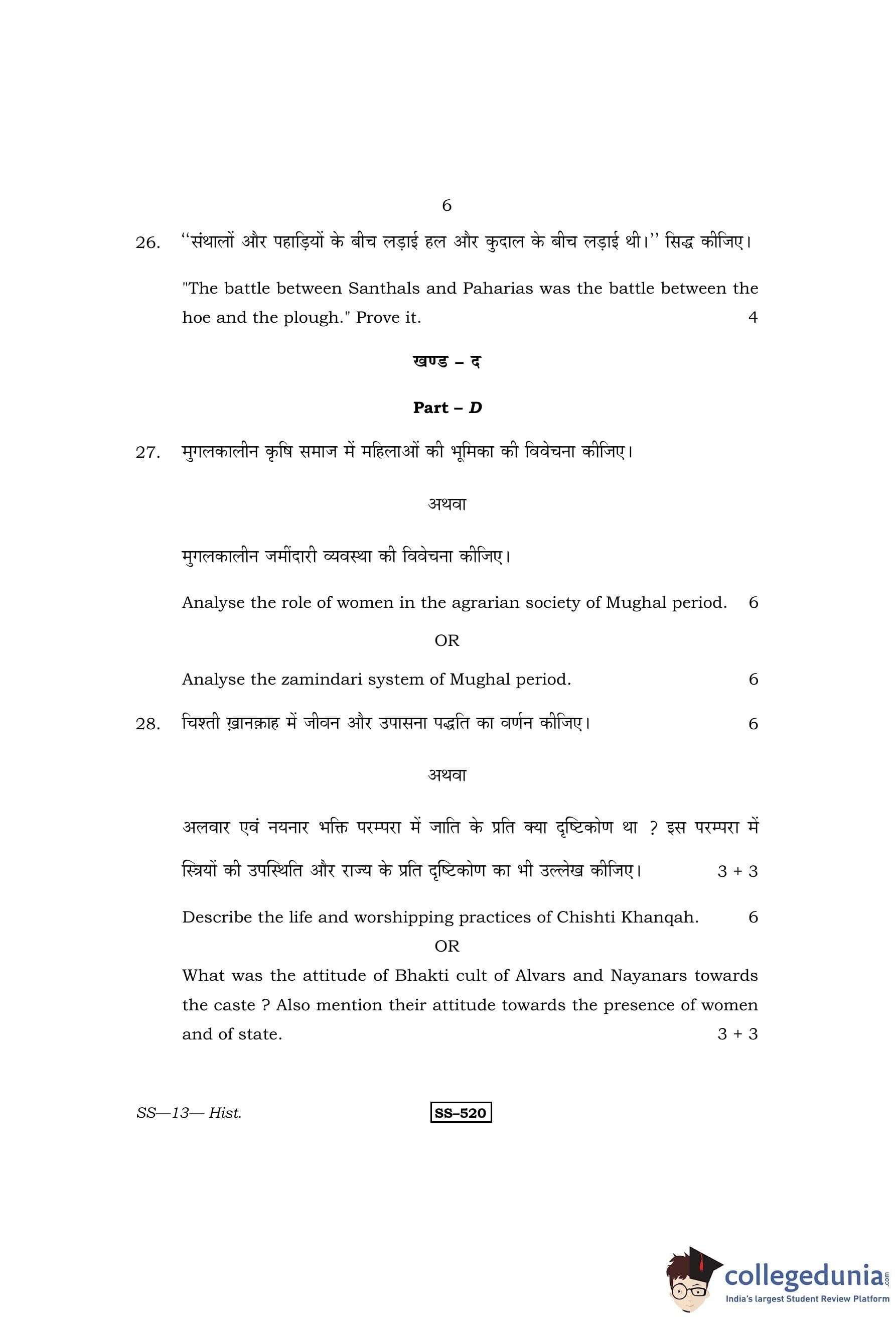 RBSE Class 12 History Question Paper 2013 with Answer Key