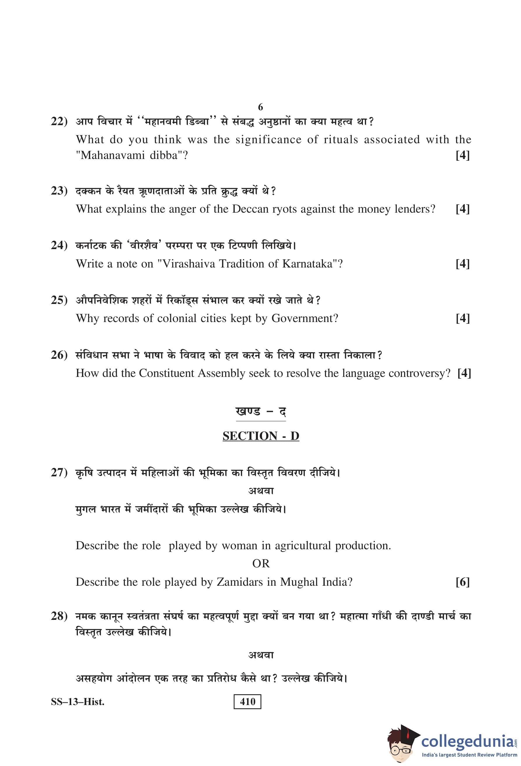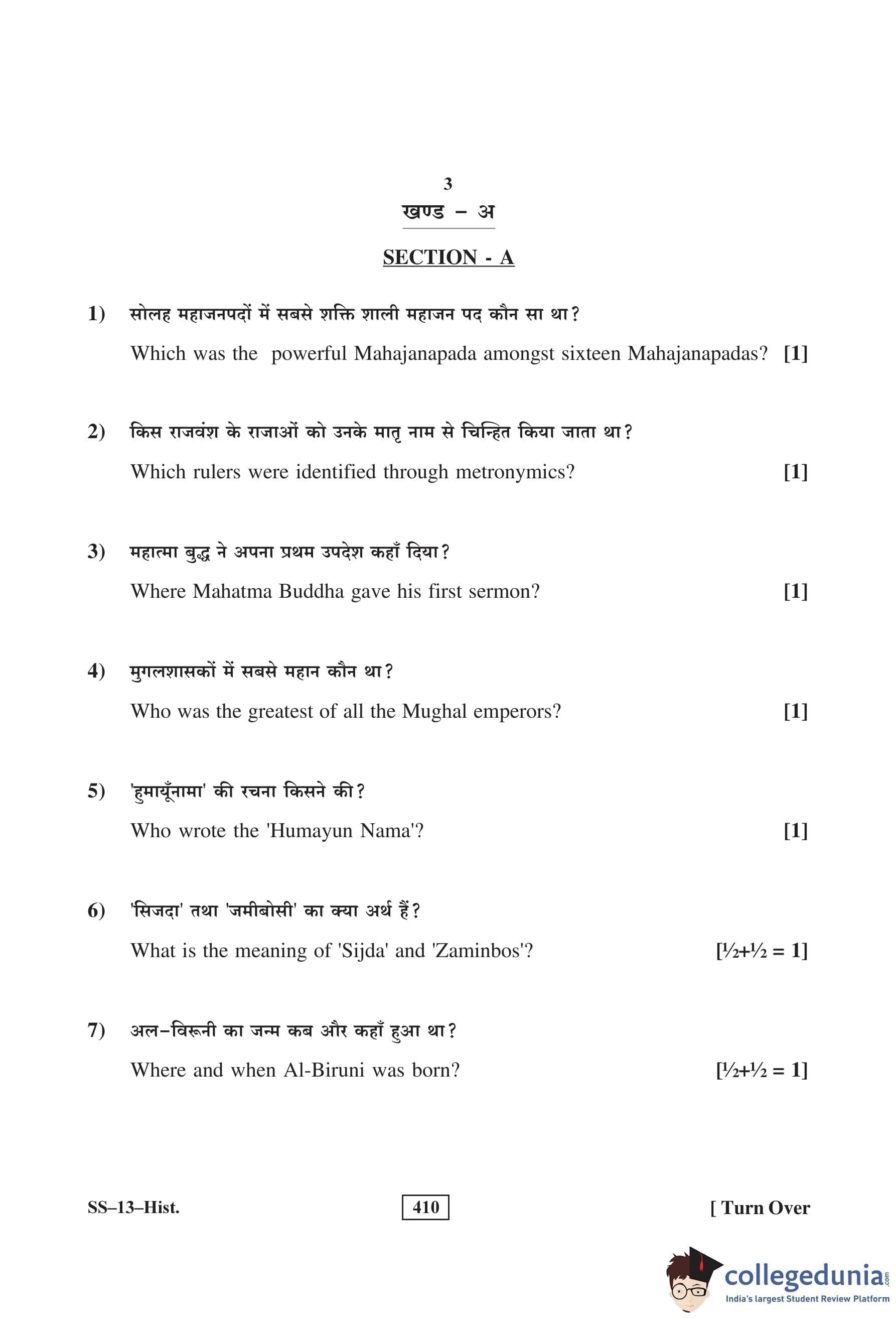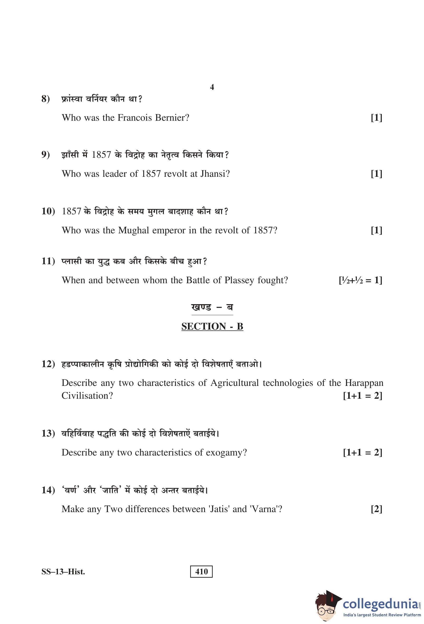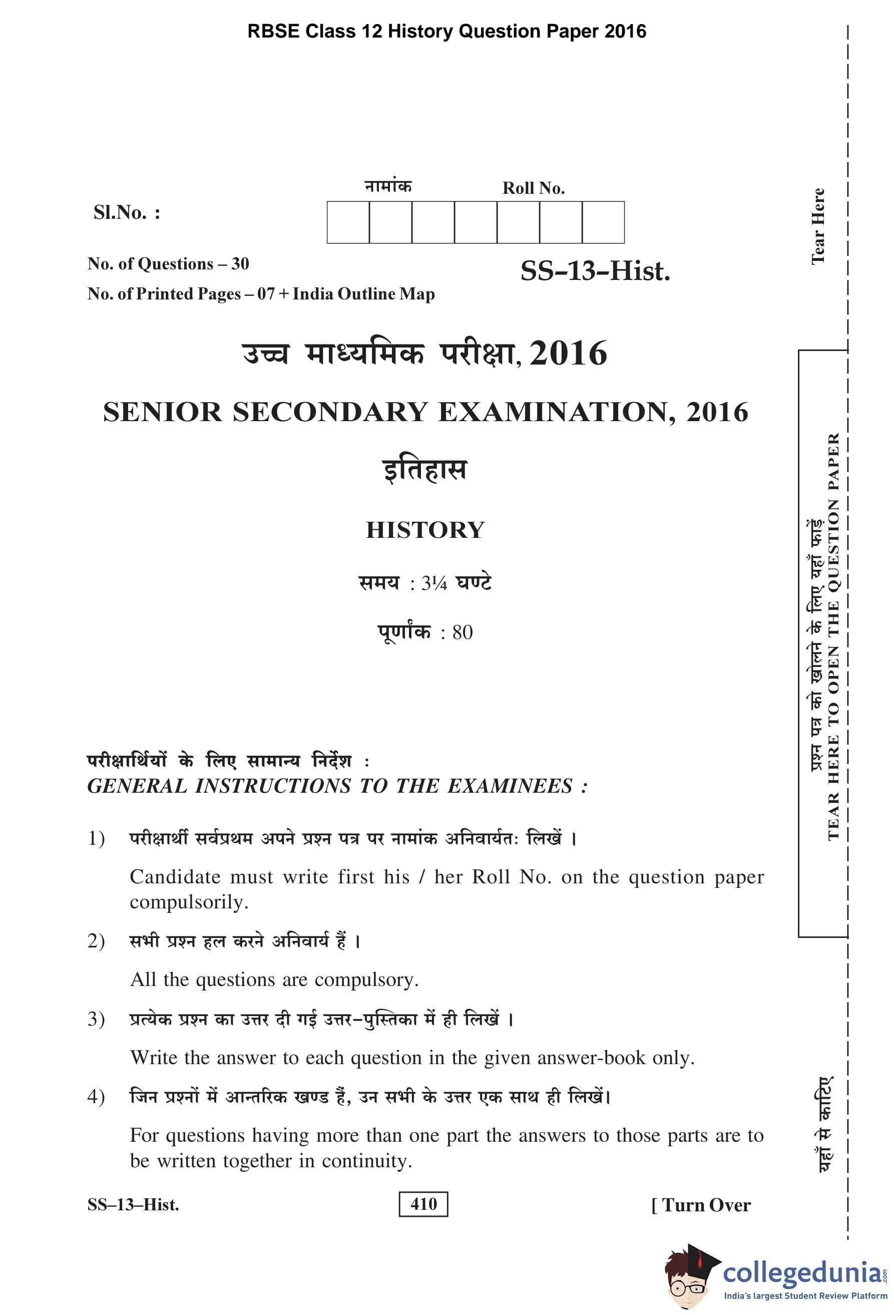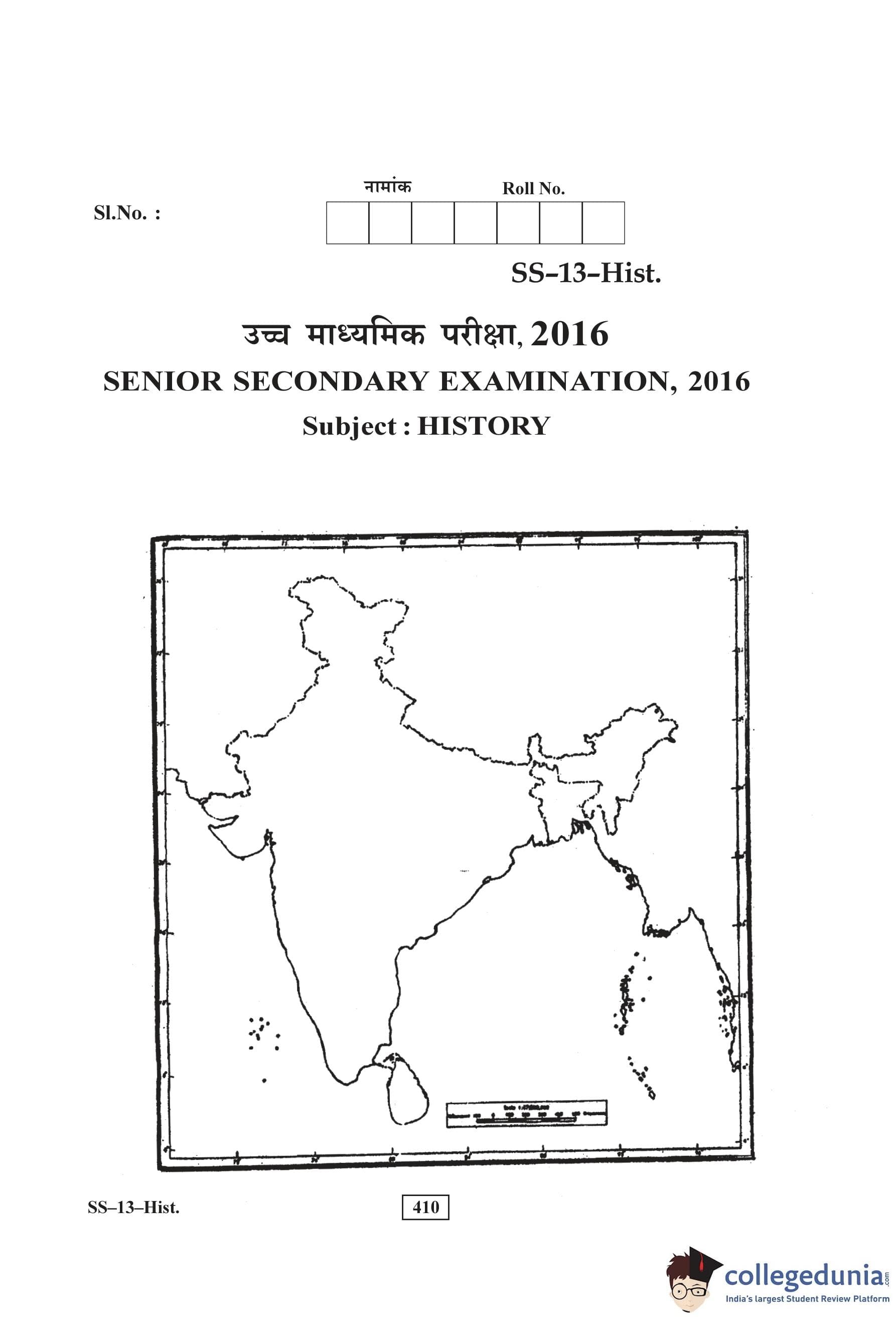 RBSE Class 12 History Question Paper 2016 with Answer Key