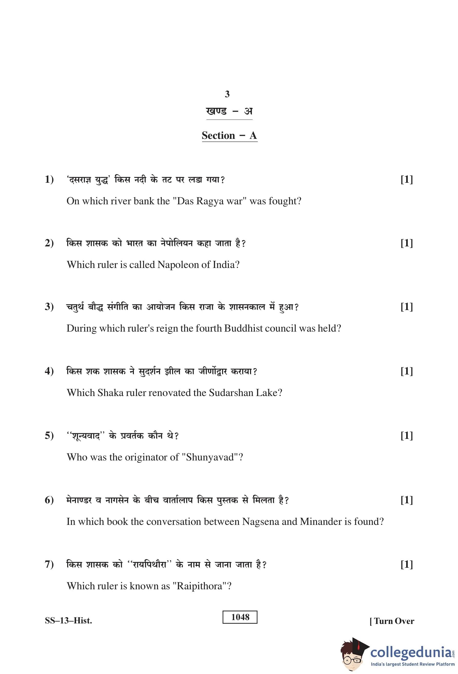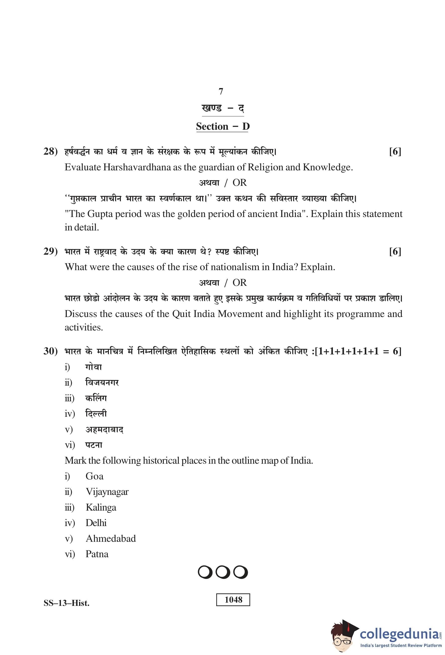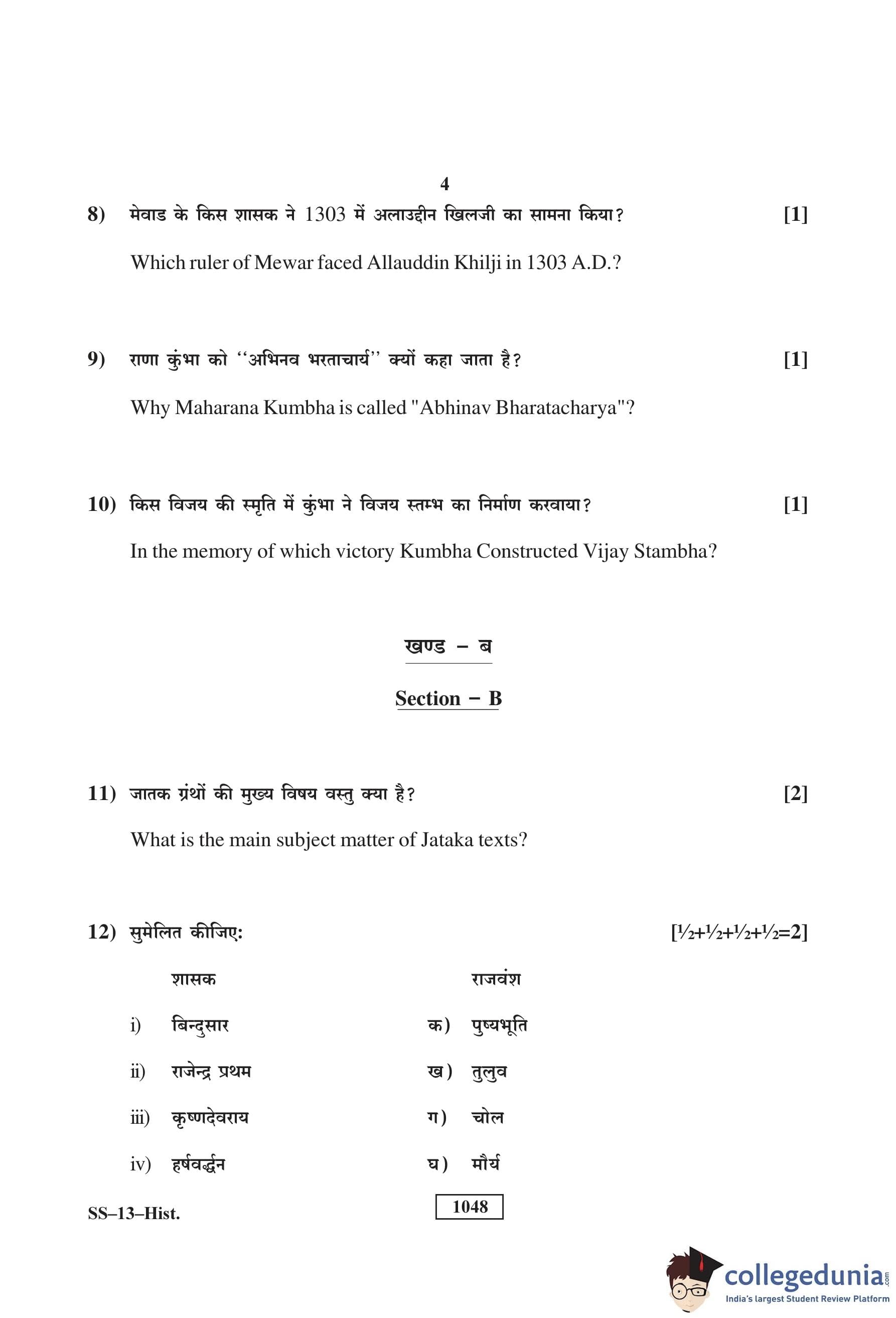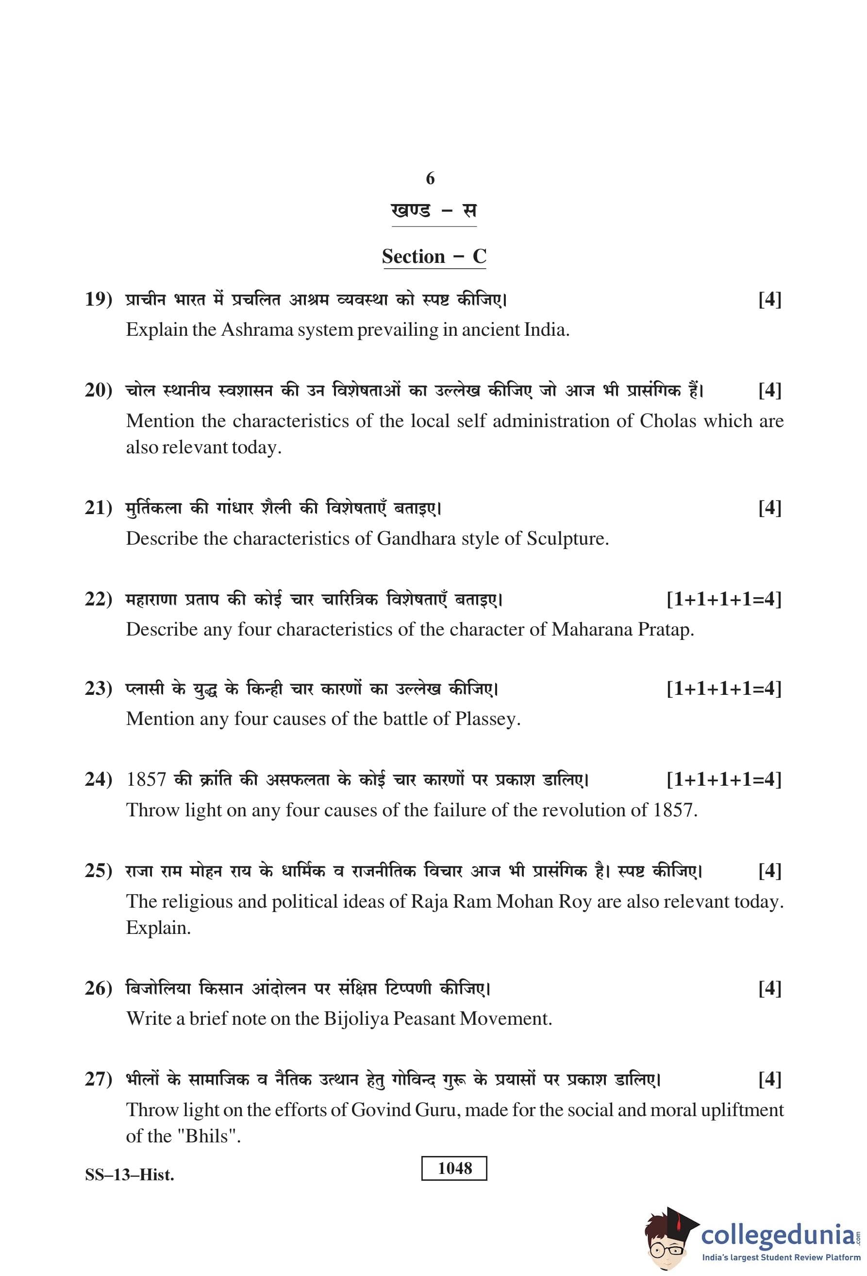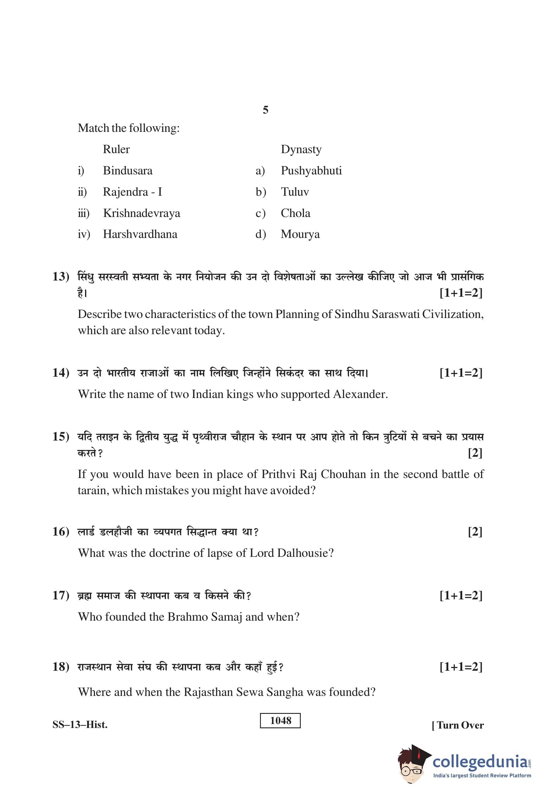 RBSE Class 12 History Question Paper 2018 with Answer Key