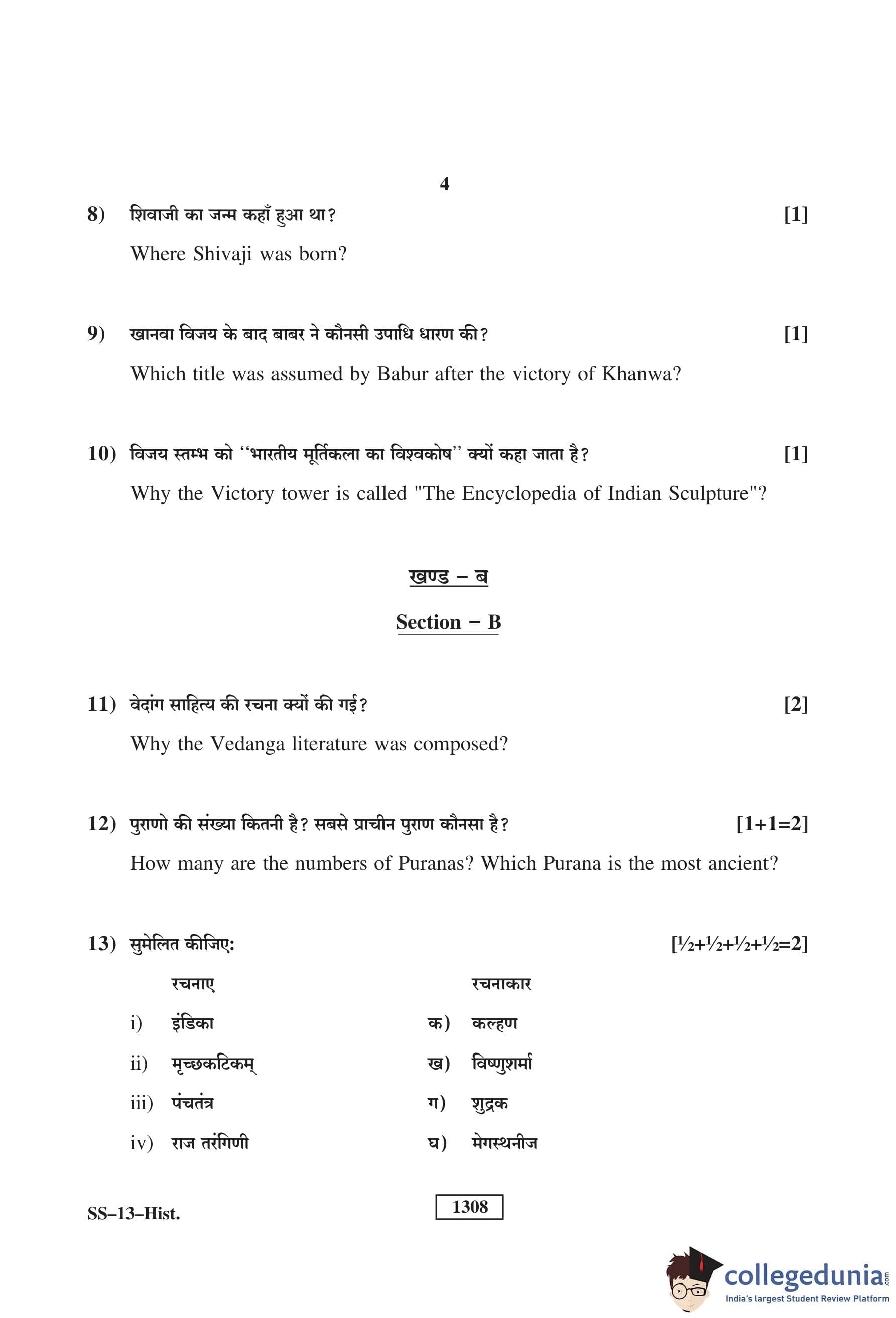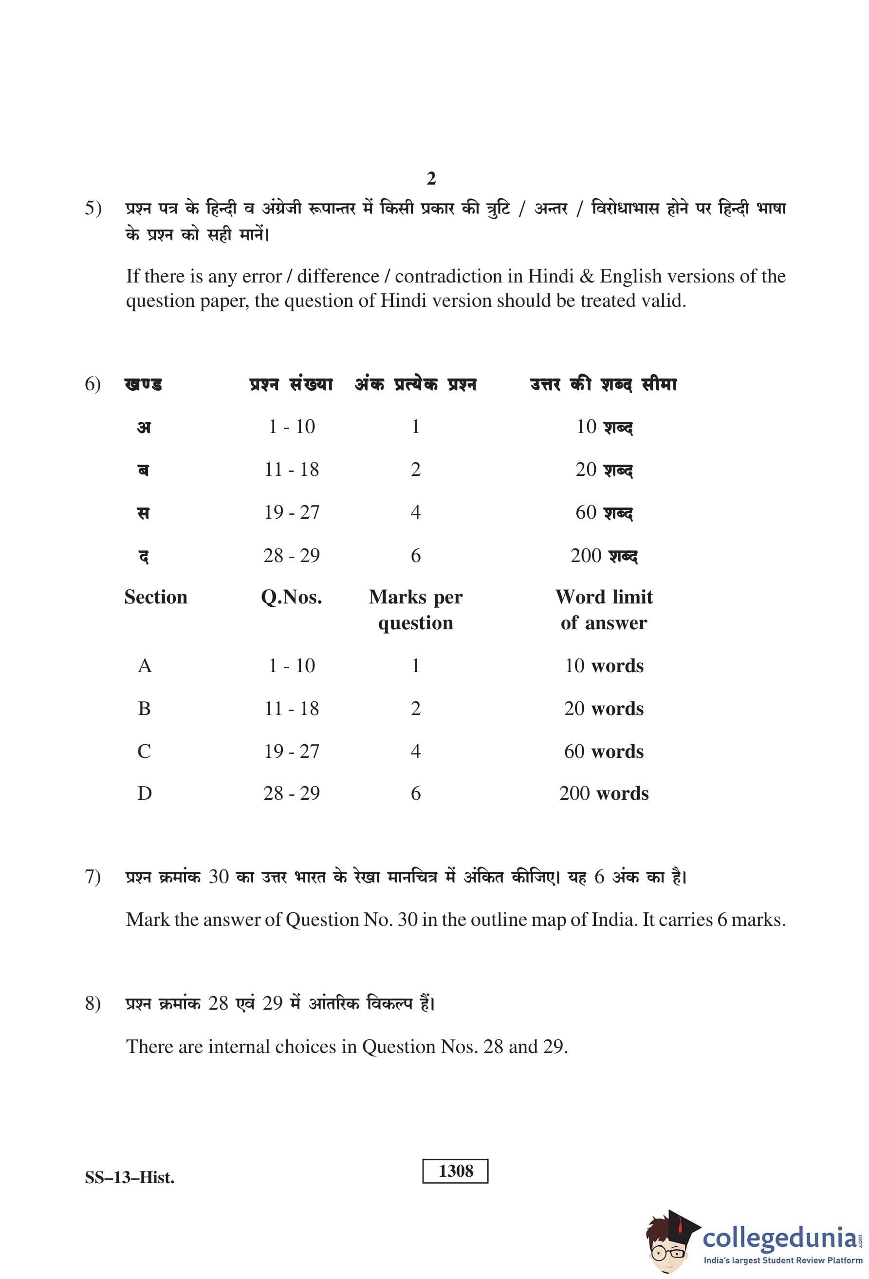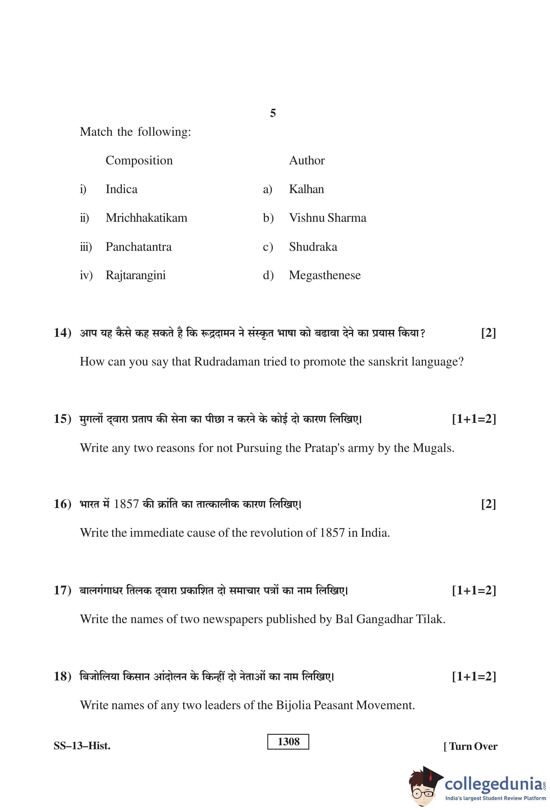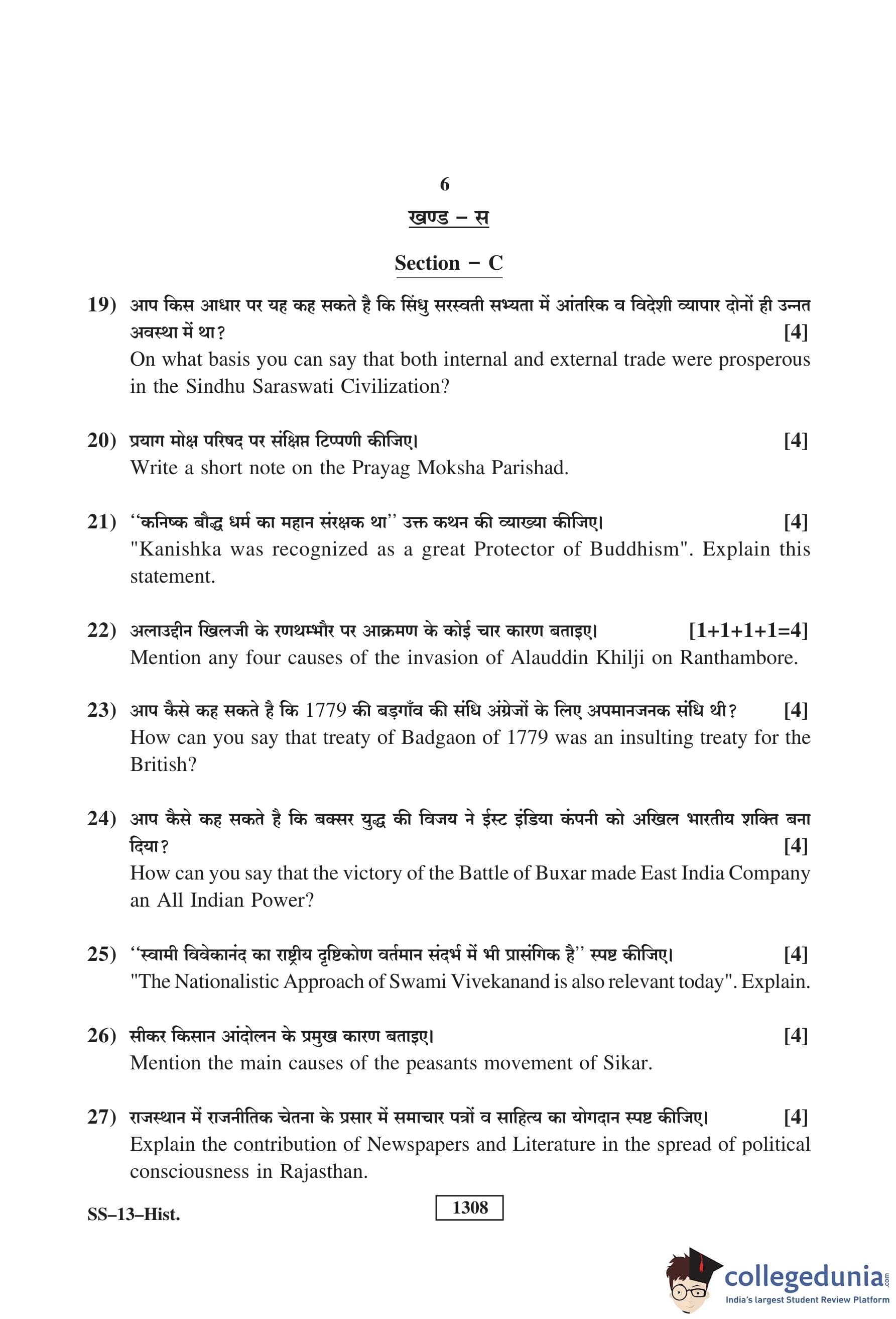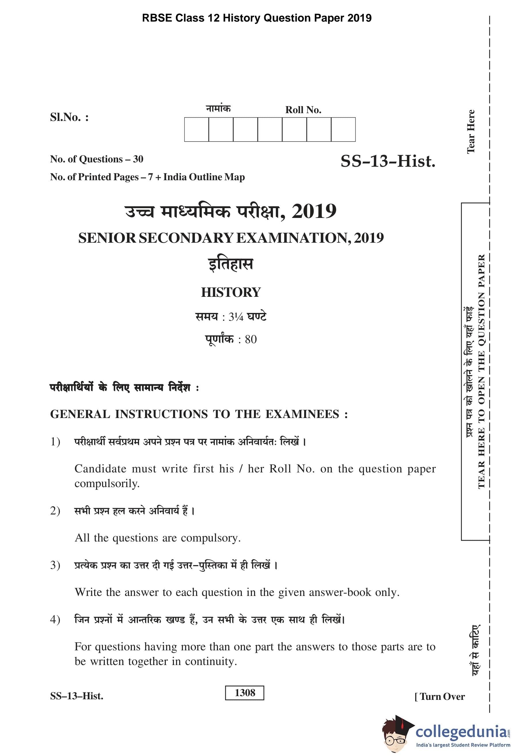 RBSE Class 12 History Question Paper 2019 with Answer Key