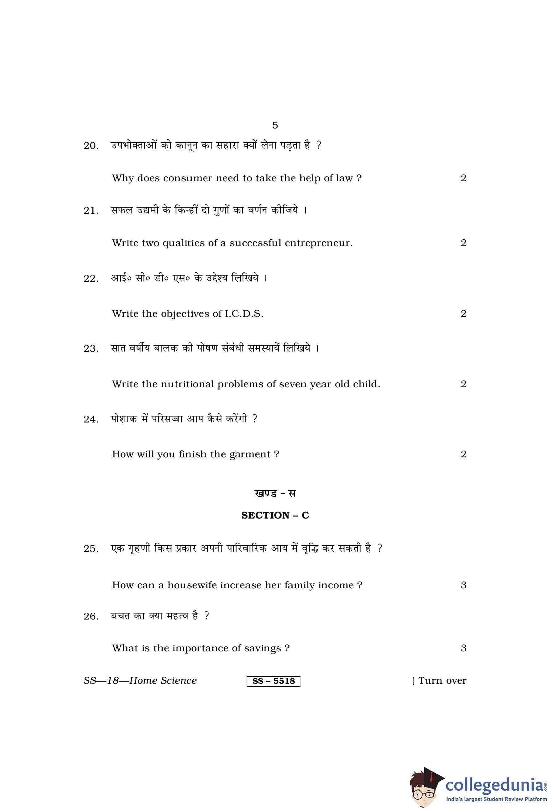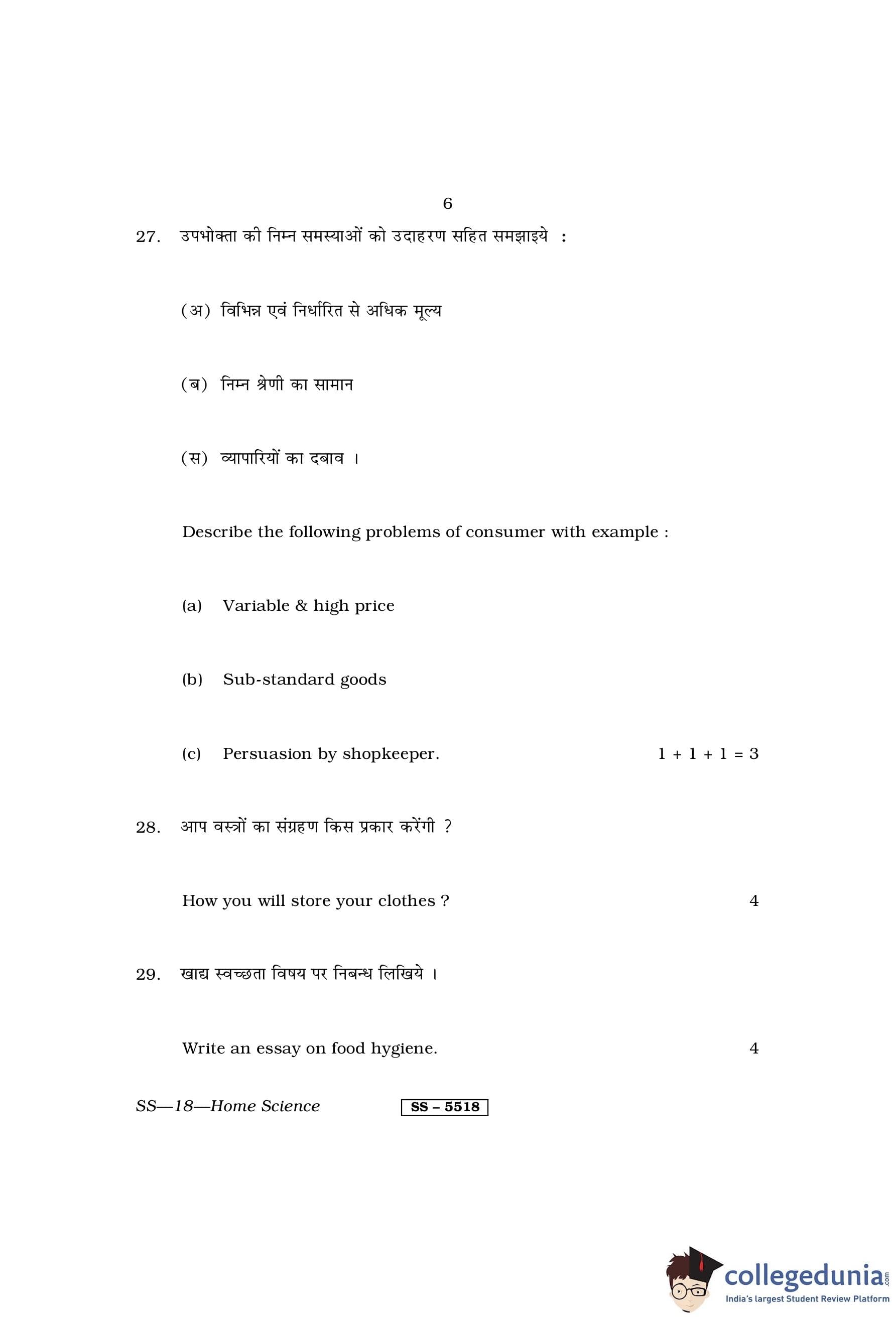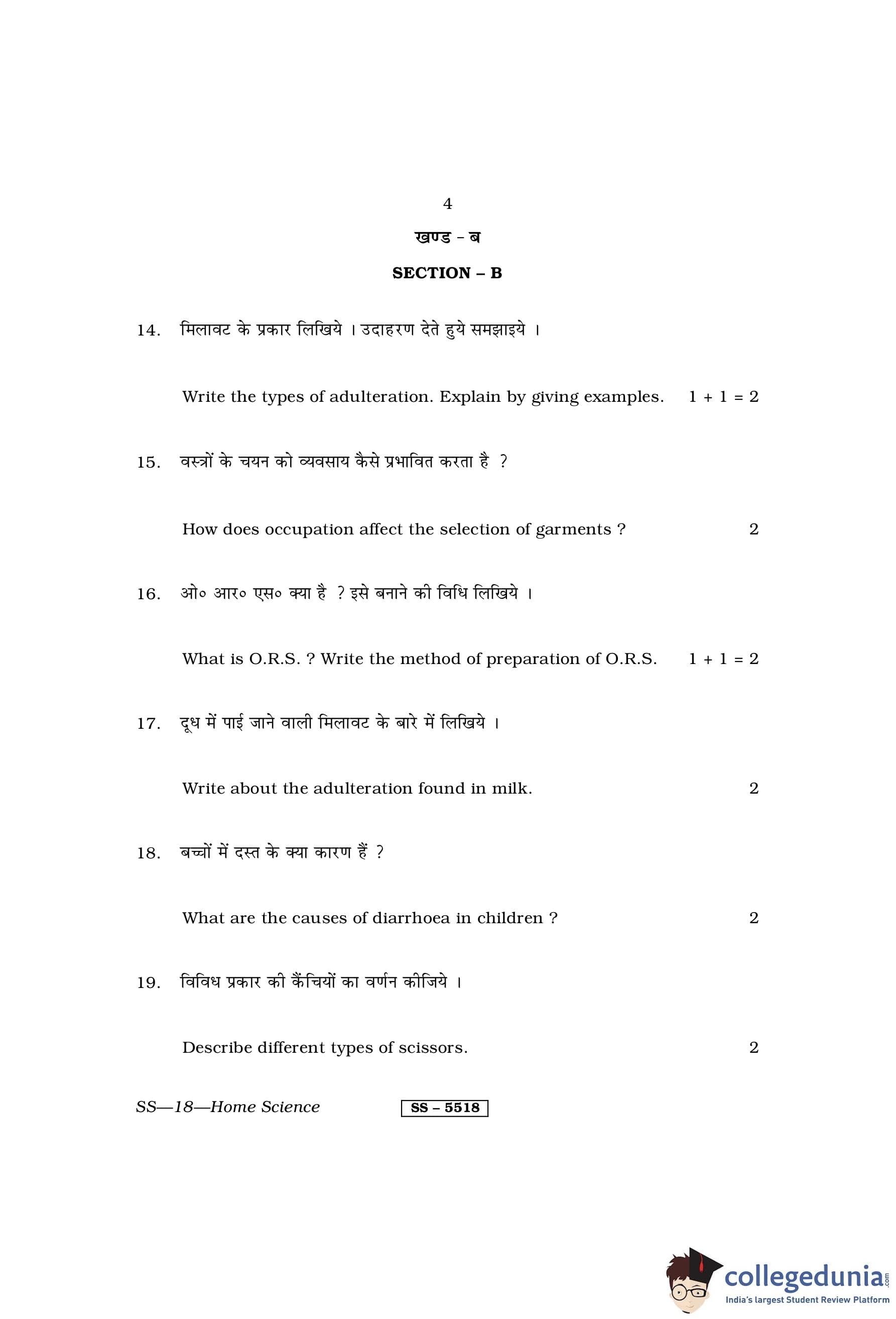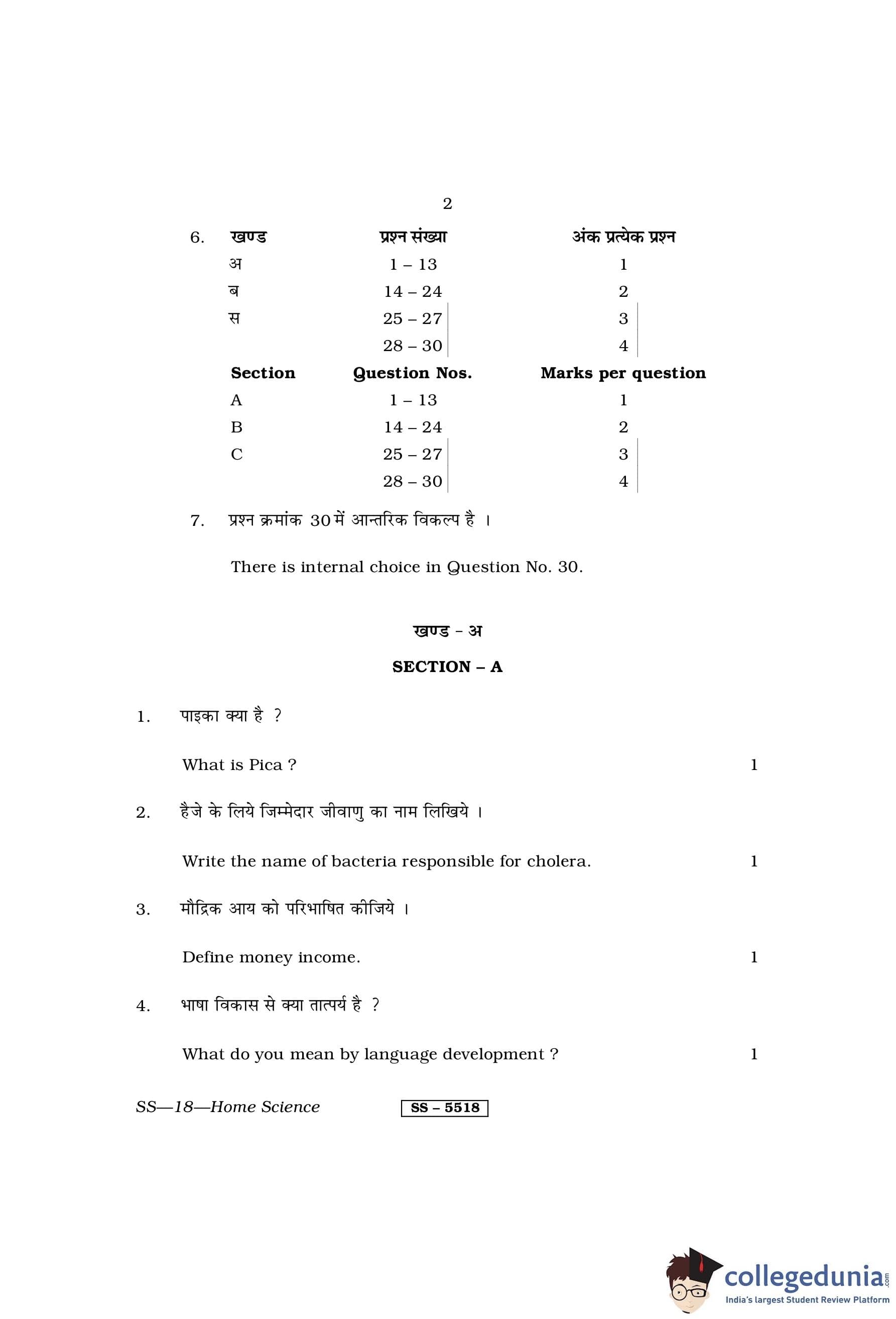 RBSE Class 12 Home Science Question Paper 2014 with Answer Key pdf is available for download here. The exam was conducted by Board of Secondary Education Rajasthan (BSER) on March 27, 2014 in the Morning Session 8:30 AM to 11:45 AM. The question paper comprised a total of 30 questions divided among 3 sections.