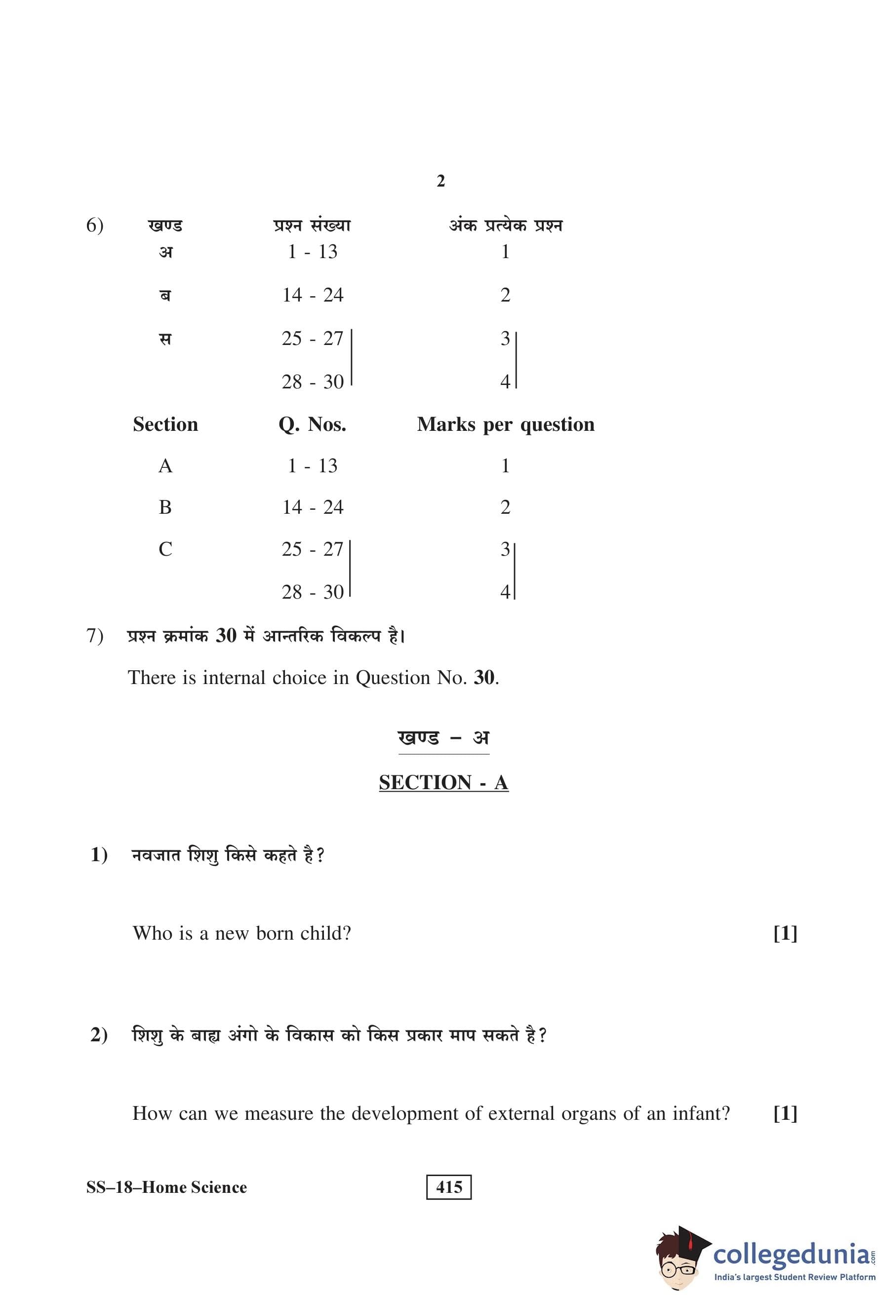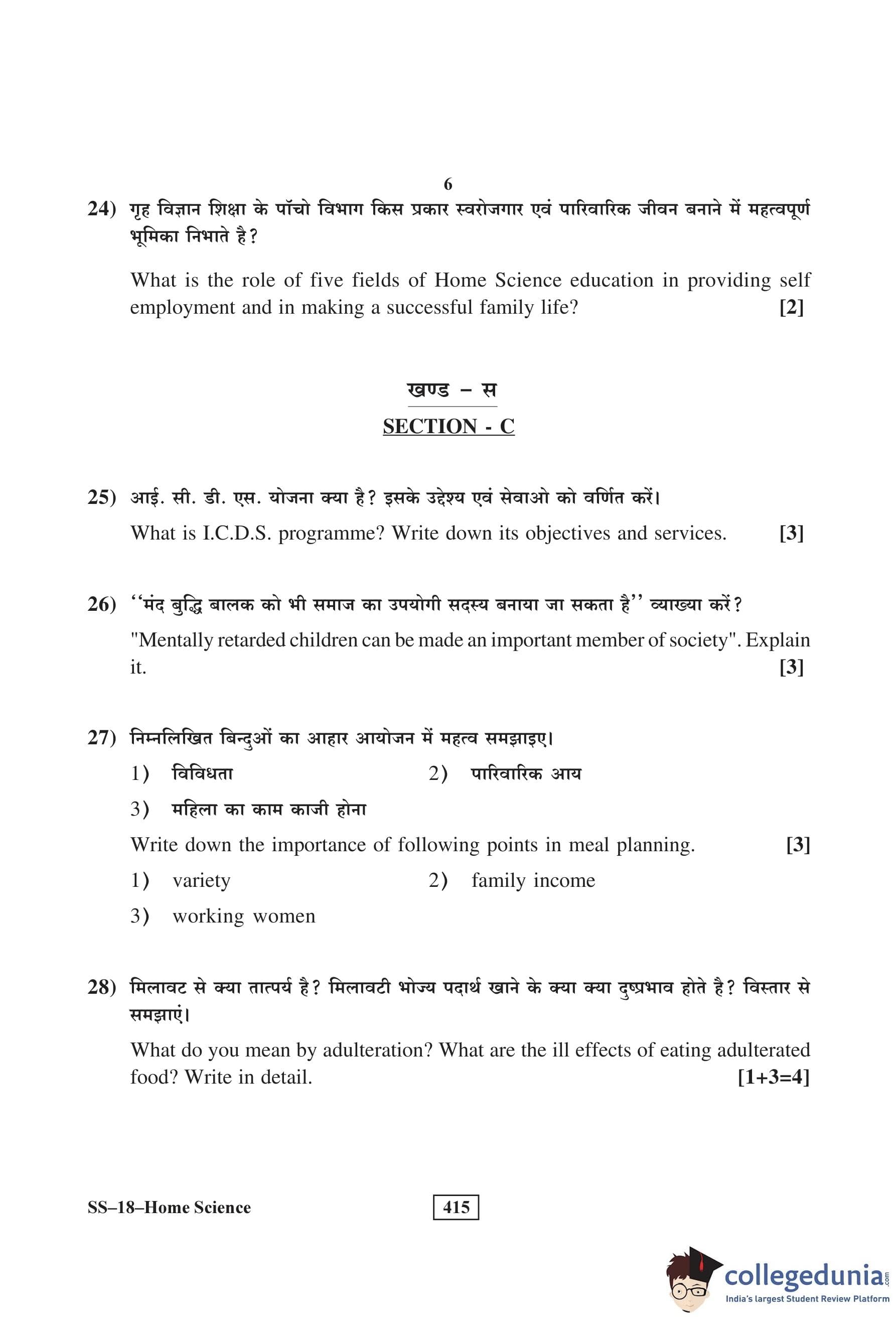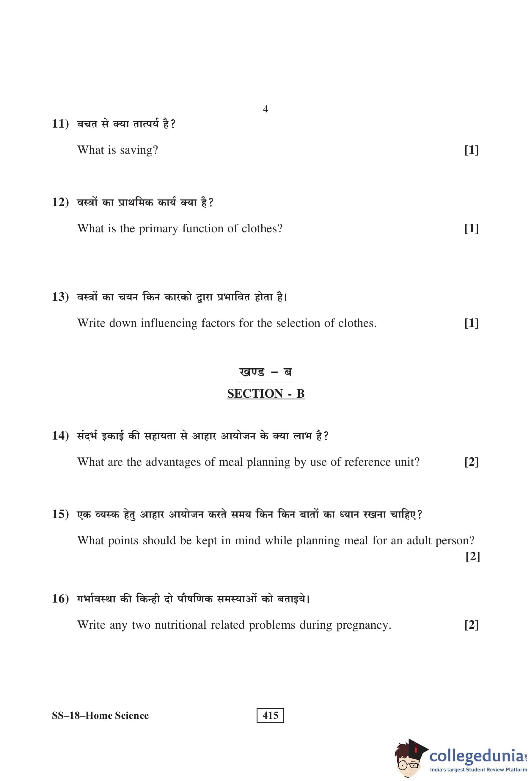 RBSE Class 12 Home Science Question Paper 2016 with Answer Key pdf is available for download here. The exam was conducted by Board of Secondary Education Rajasthan (BSER) on March 26, 2016 in the Morning Session 8:30 AM to 11:45 AM. The question paper comprised a total of 30 questions divided among 3 sections.