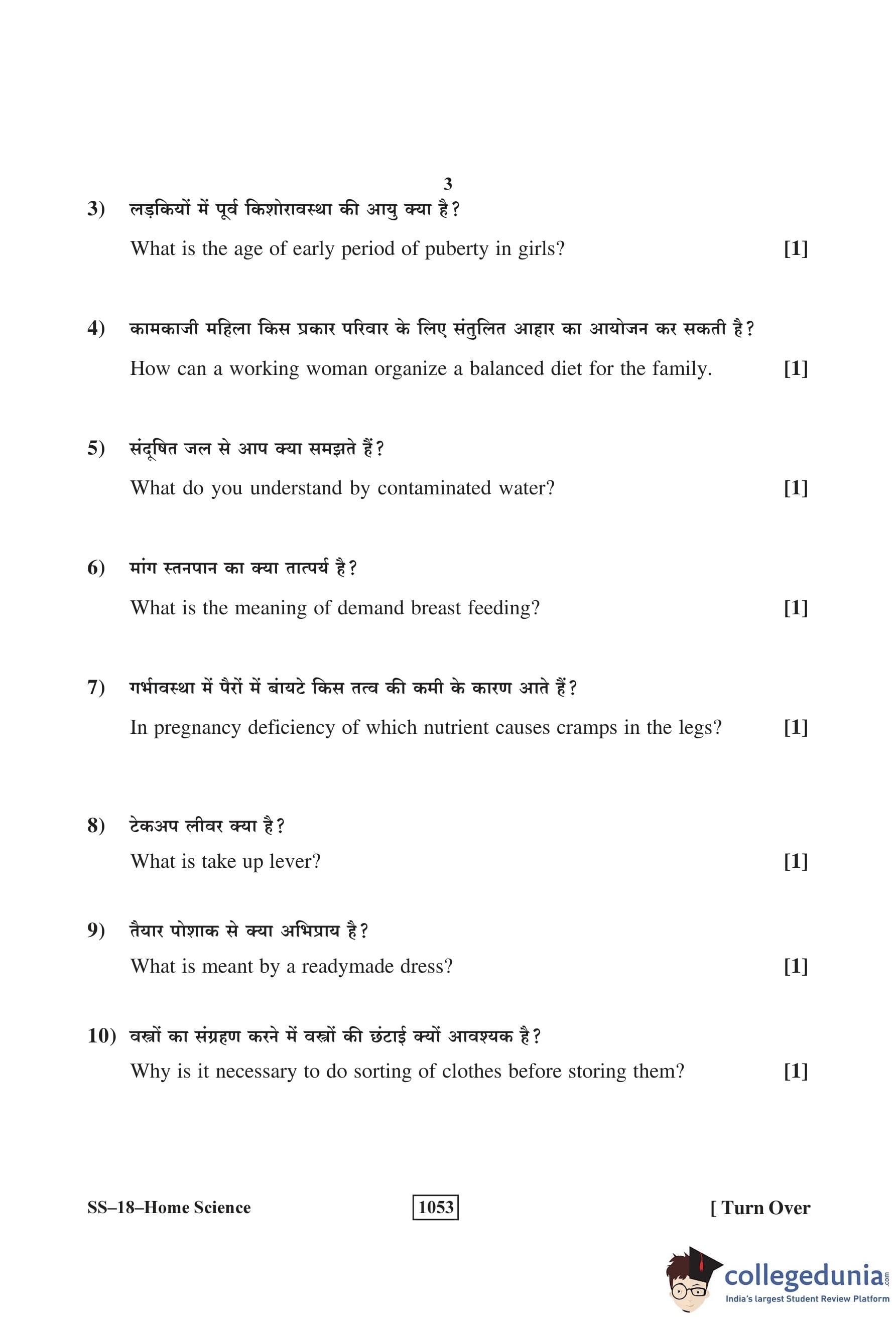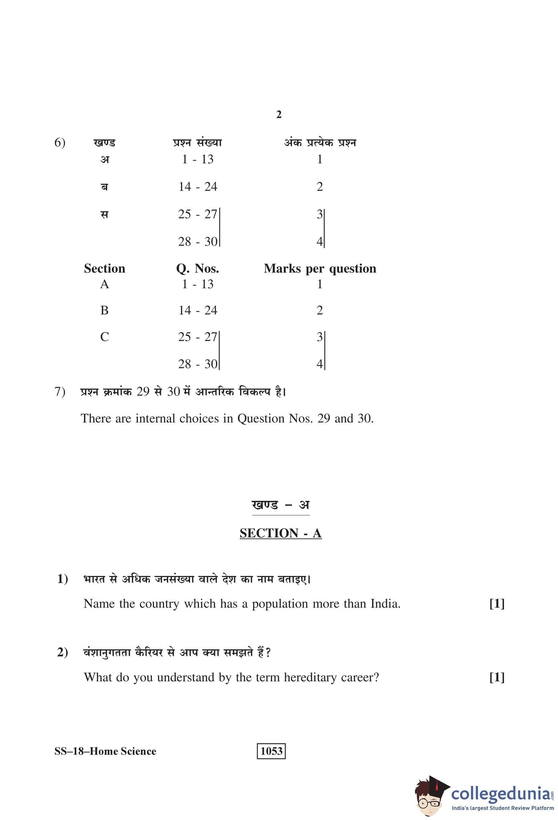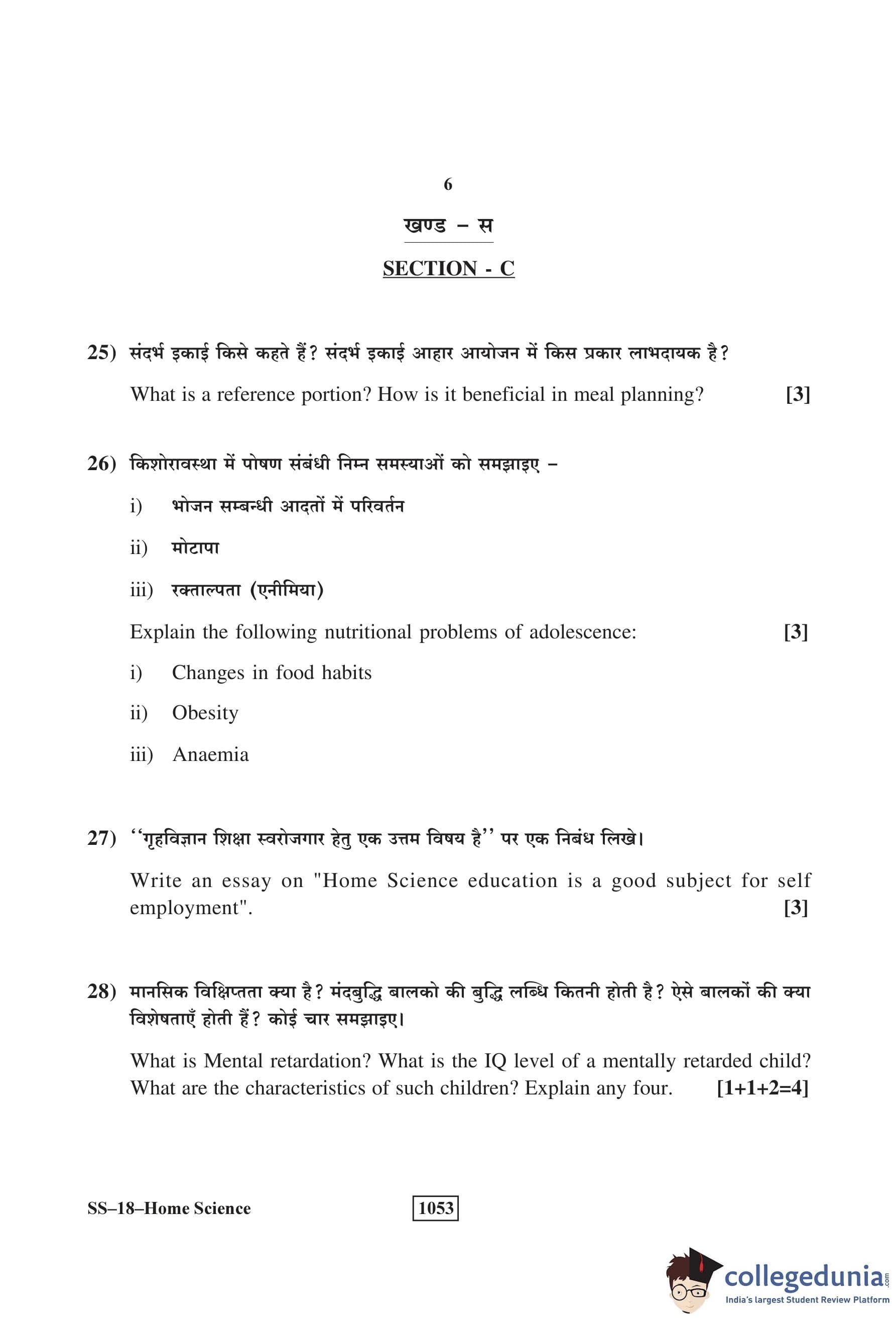 RBSE Class 12 Home Science Question Paper 2018 with Answer Key pdf is available for download here. The exam was conducted by Board of Secondary Education Rajasthan (BSER) on March 31, 2018 in the Morning Session 8:30 AM to 11:45 AM. The question paper comprised a total of 30 questions divided among 3 sections.
