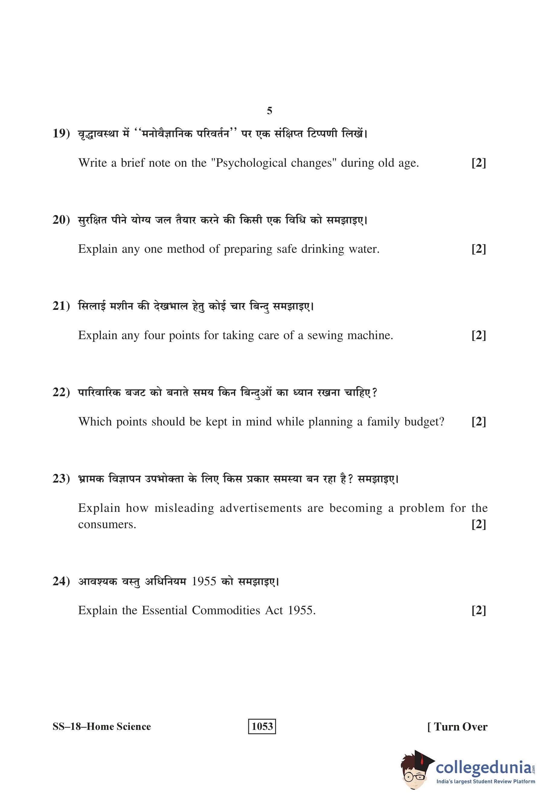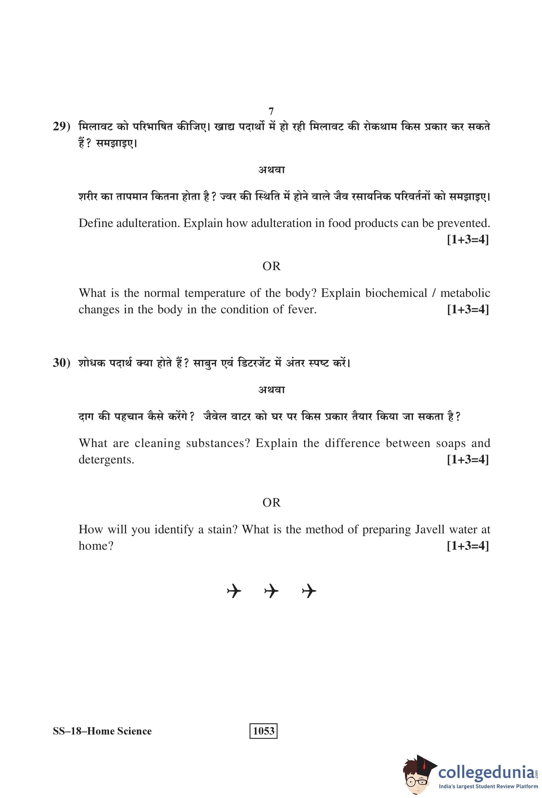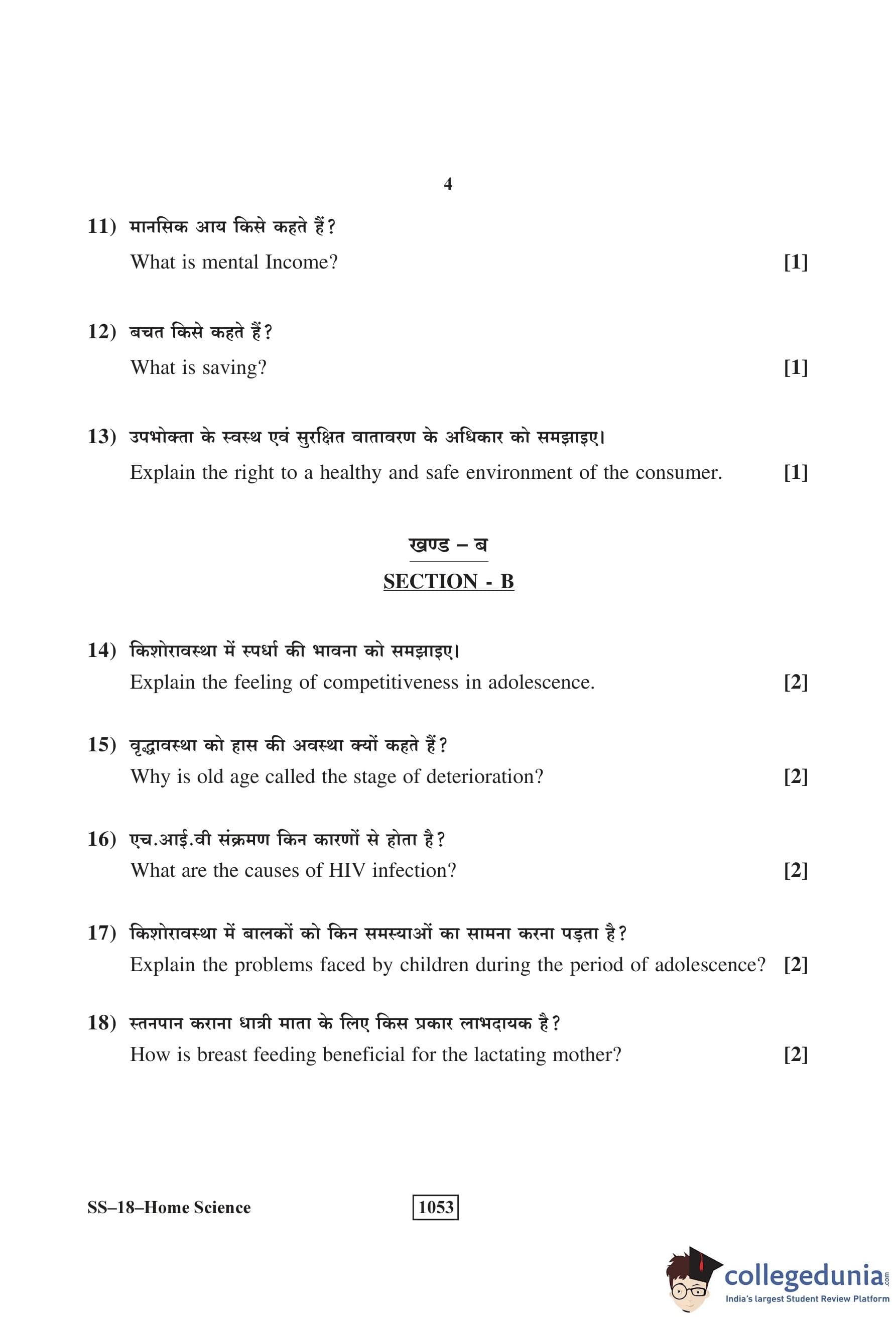 RBSE Class 12 Home Science Question Paper 2018 with Answer Key