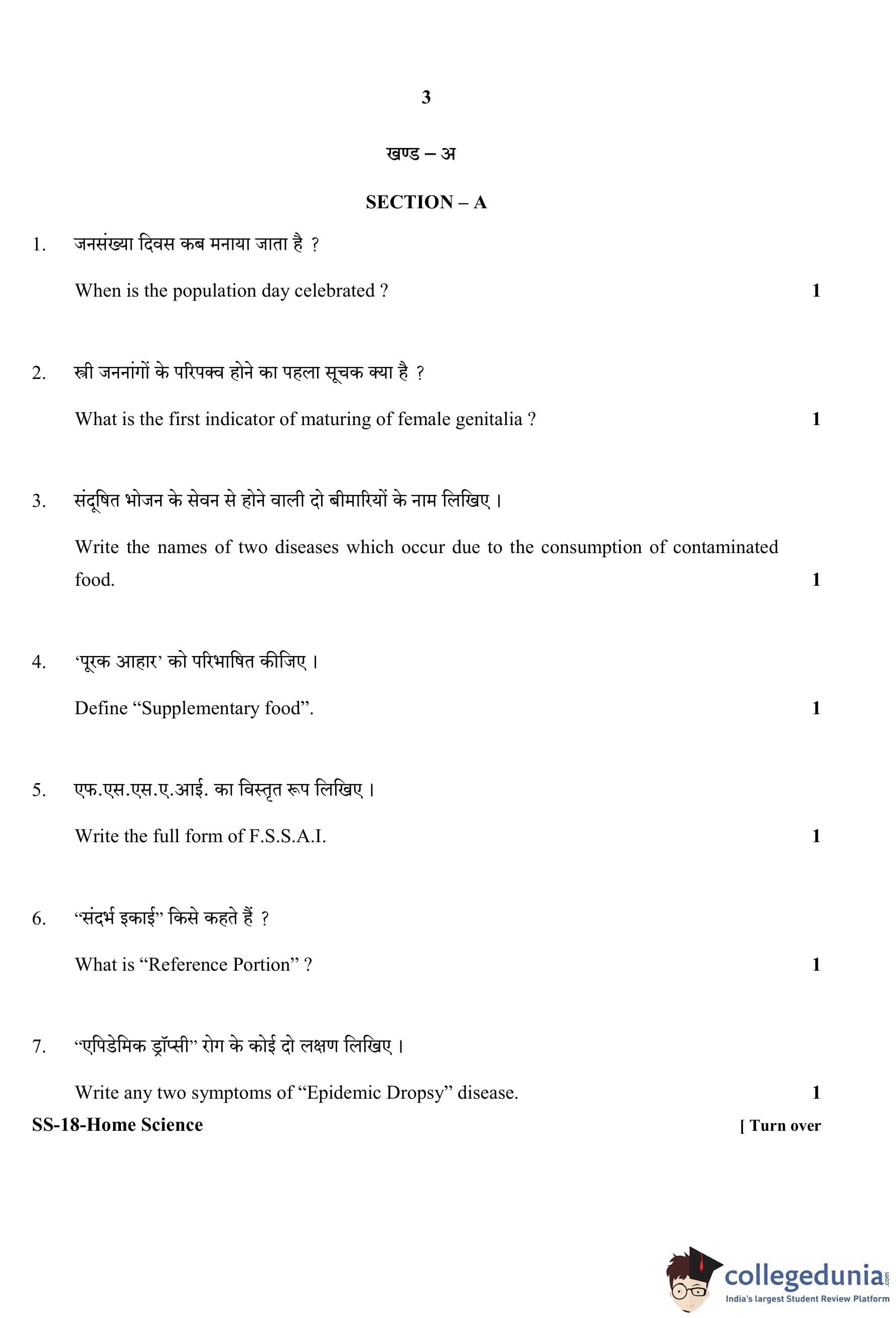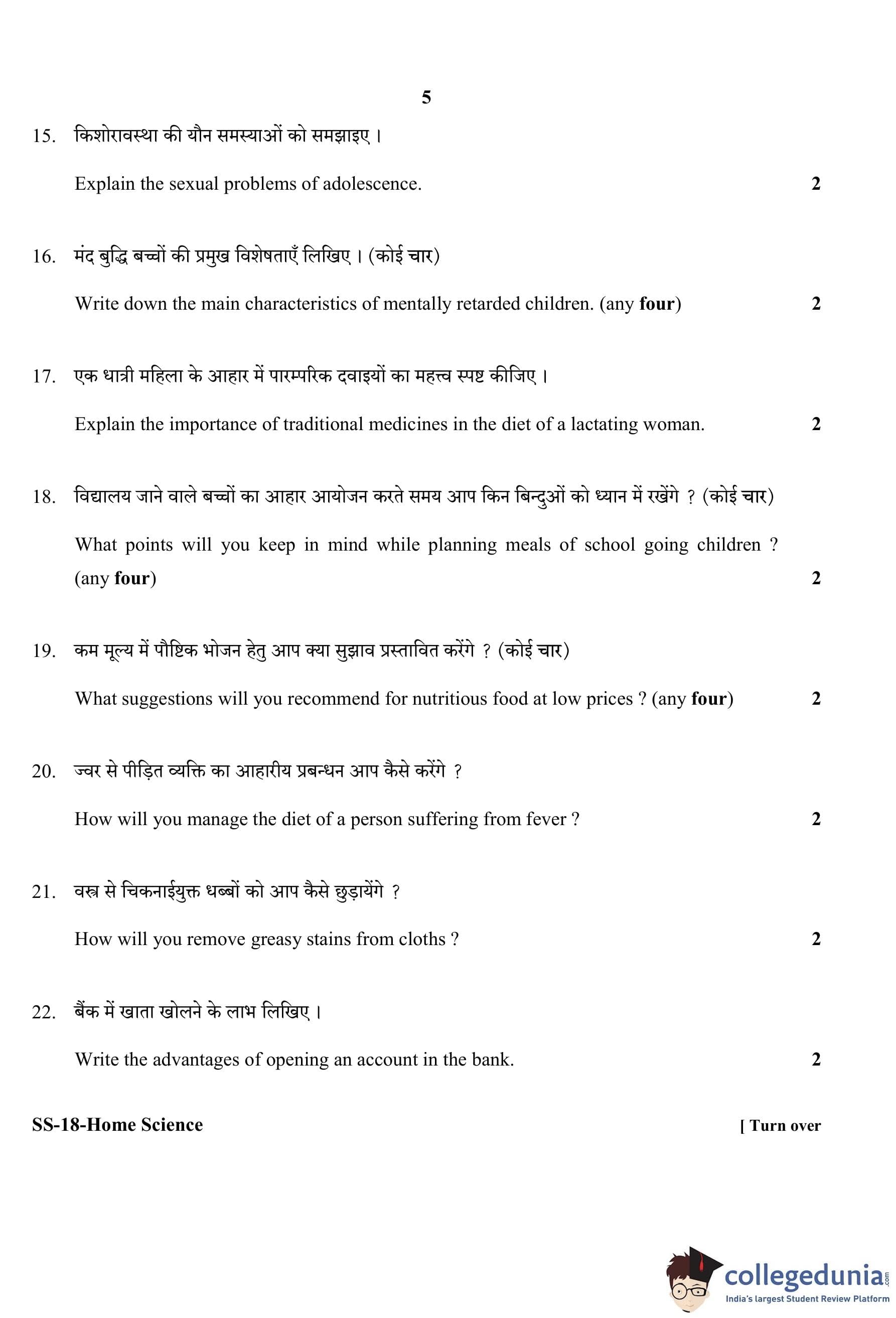 RBSE Class 12 Home Science Question Paper 2020 with Answer Key pdf is available for download here. The exam was conducted by Board of Secondary Education Rajasthan (BSER) on March 31, 2020 in the Morning Session 8:30 AM to 11:45 AM. The question paper comprised a total of 30 questions divided among 3 sections.