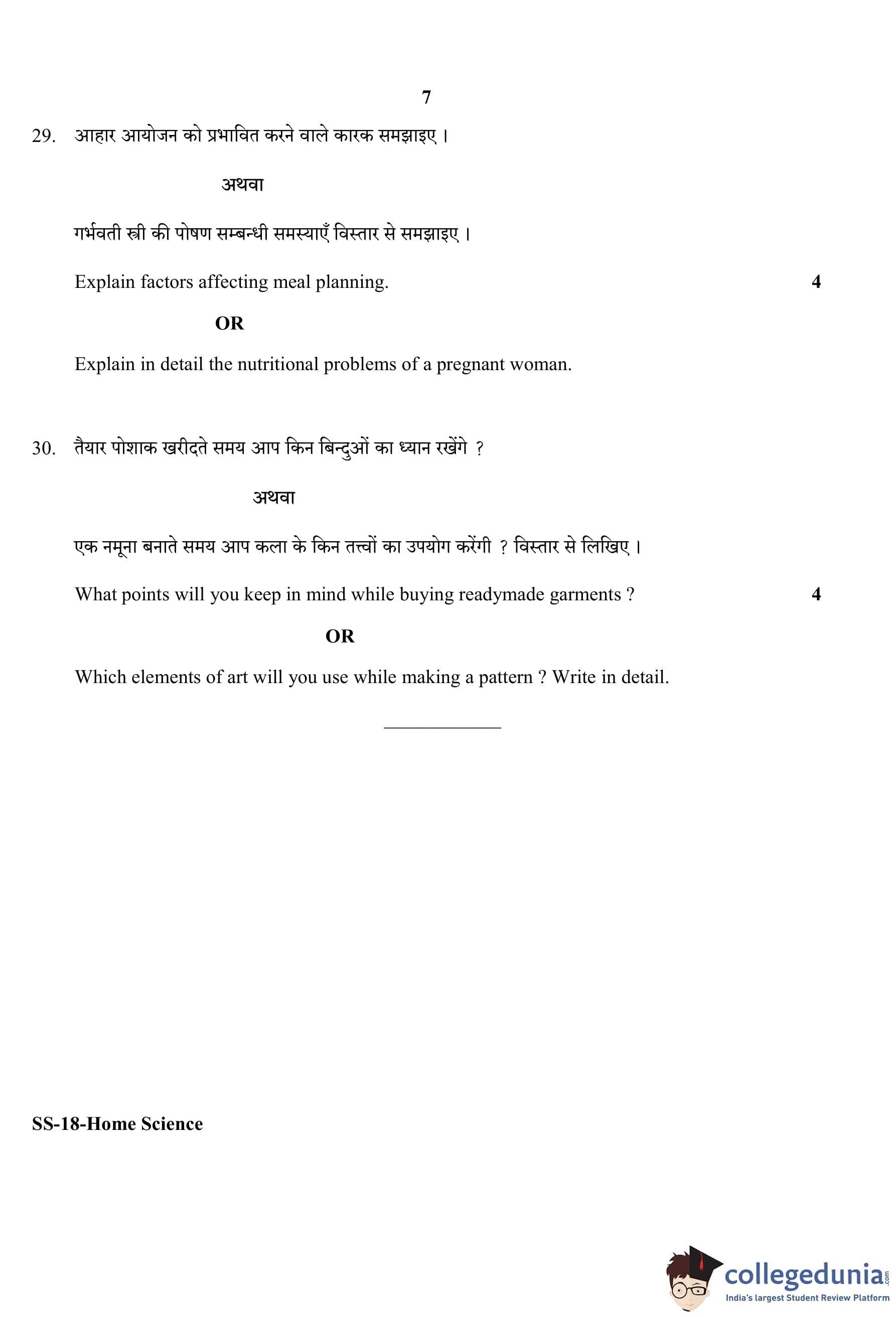 RBSE Class 12 Home Science Question Paper 2020 with Answer Key
