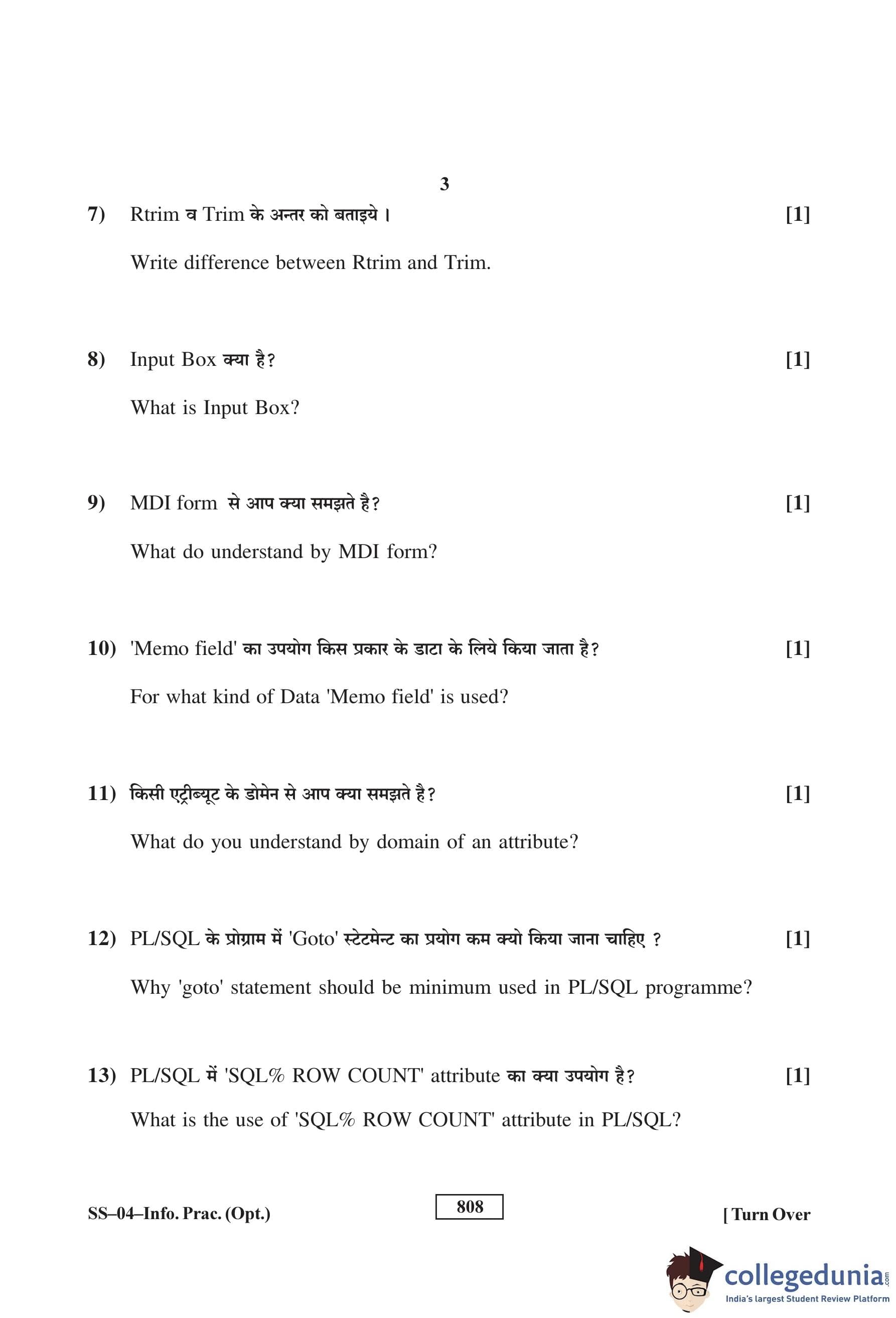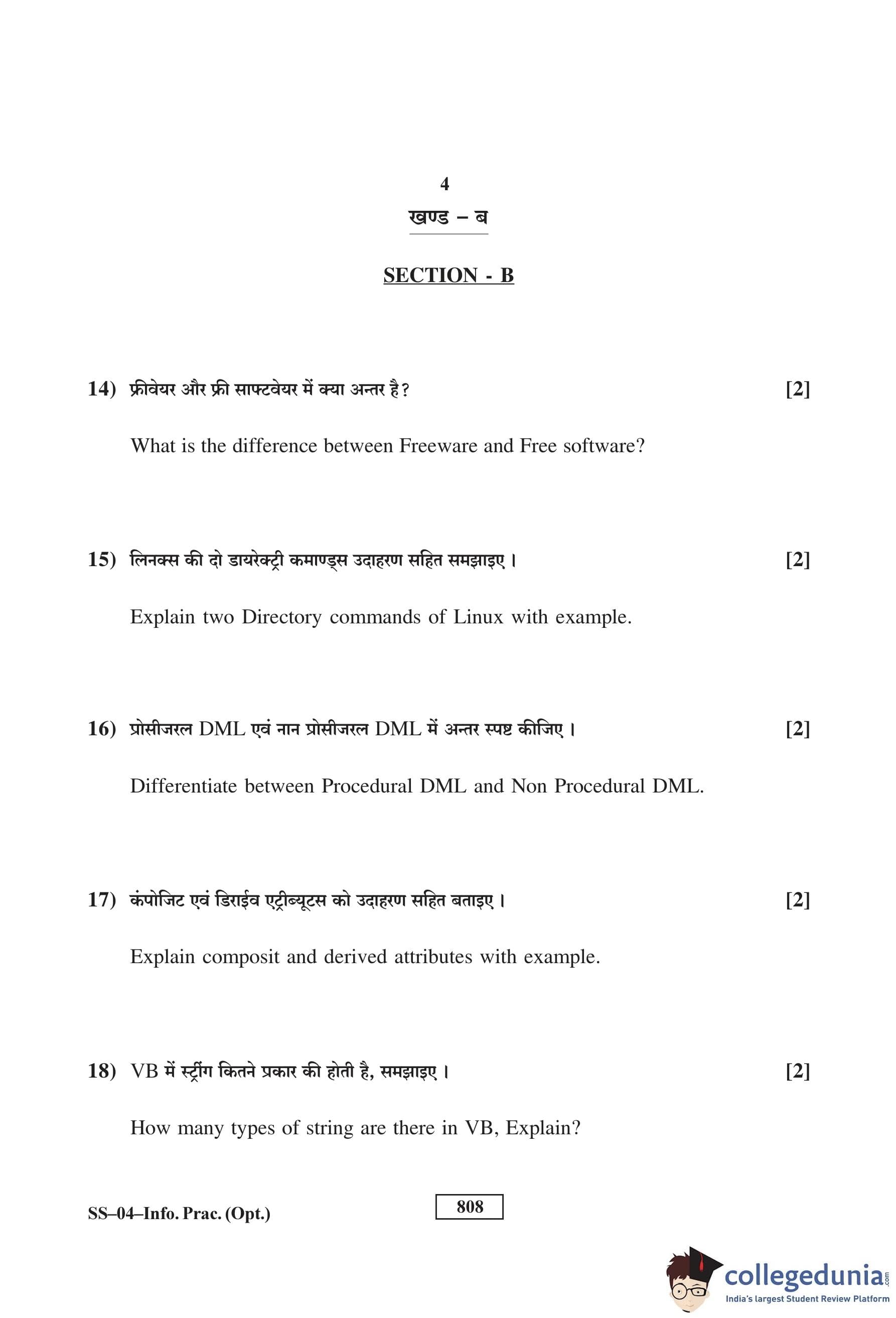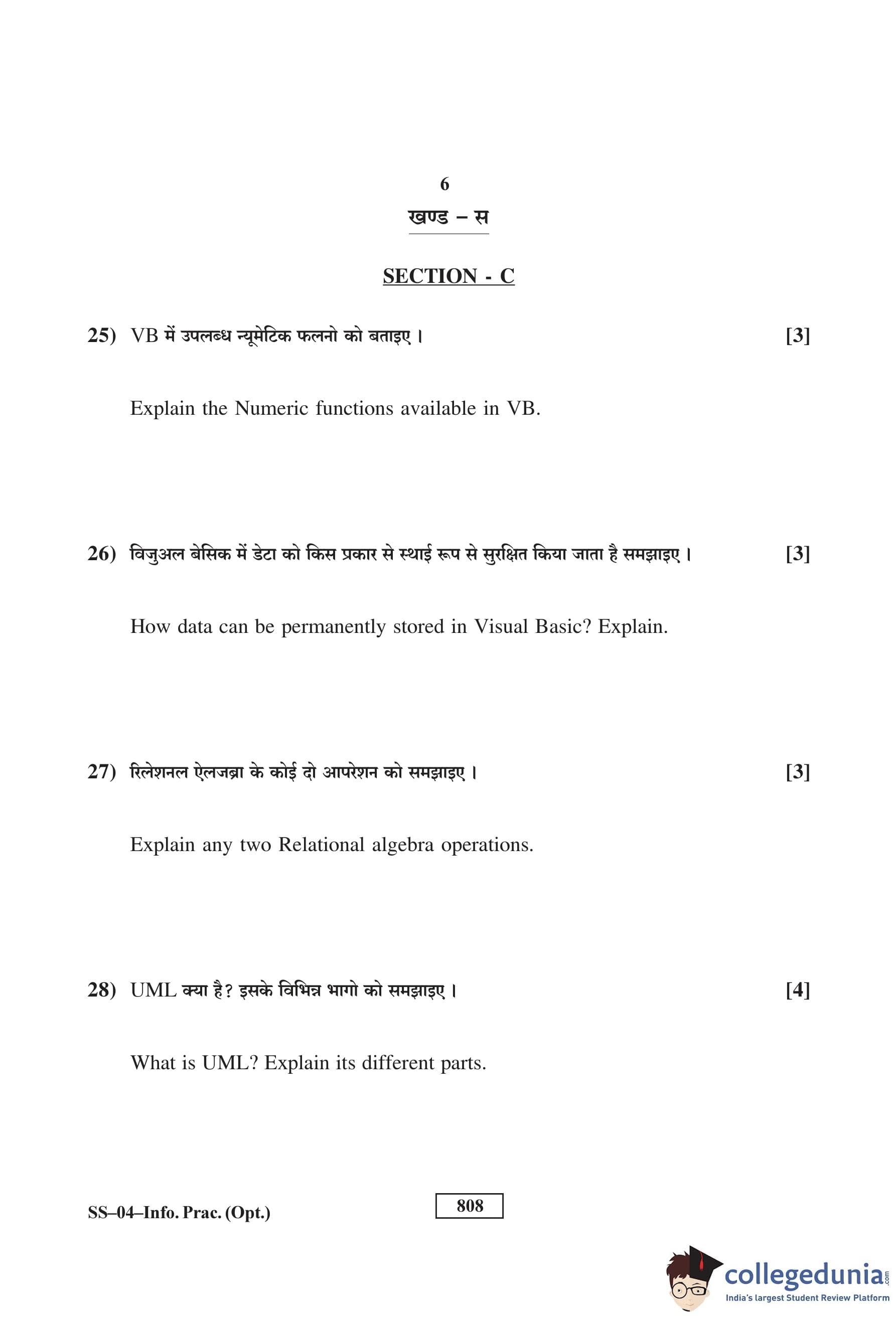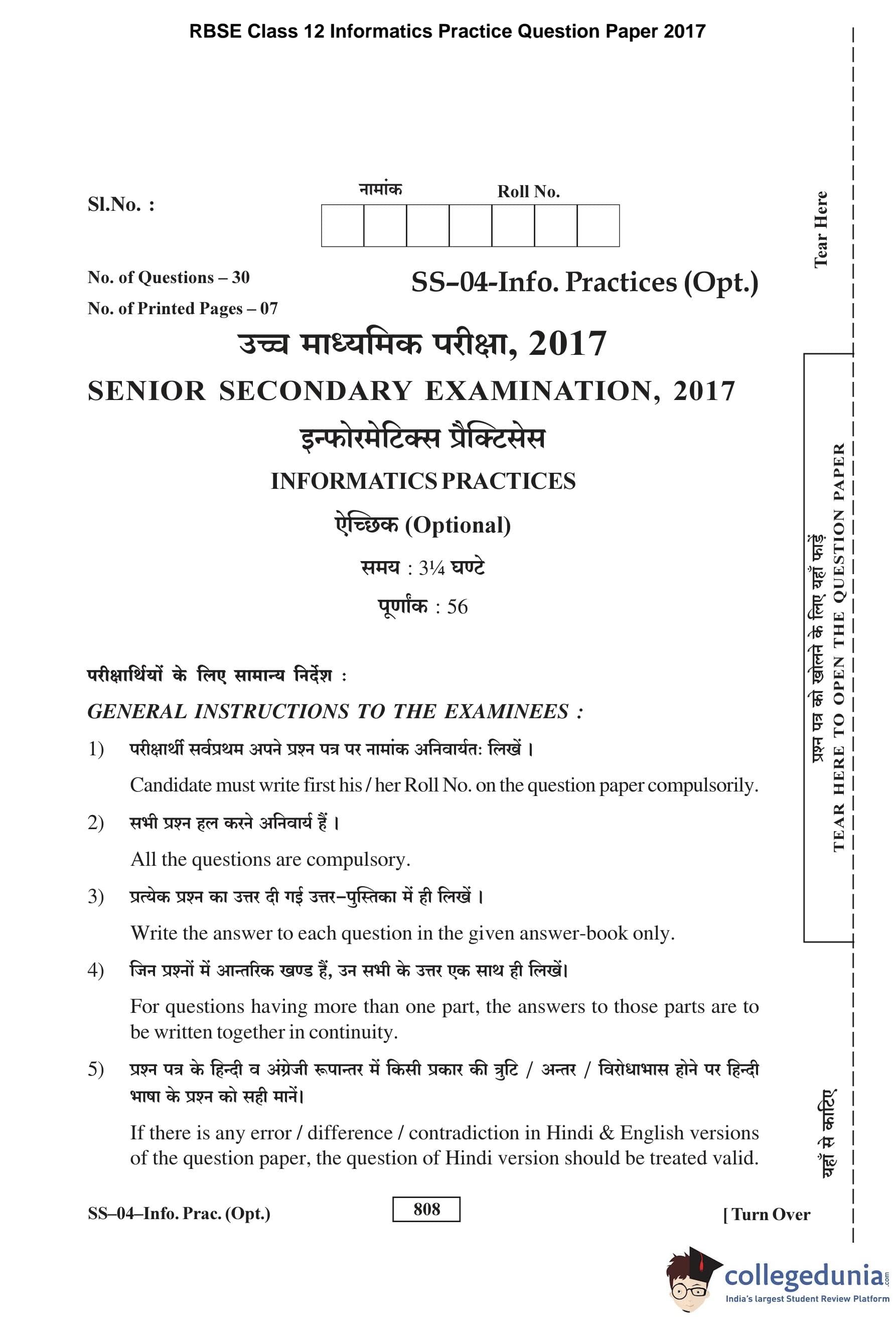 | RBSE Class 12 Informatics Practice Question Paper 2017 PDF | RBSE Class 12 Informatics Practice Answer Key 2017 PDF |