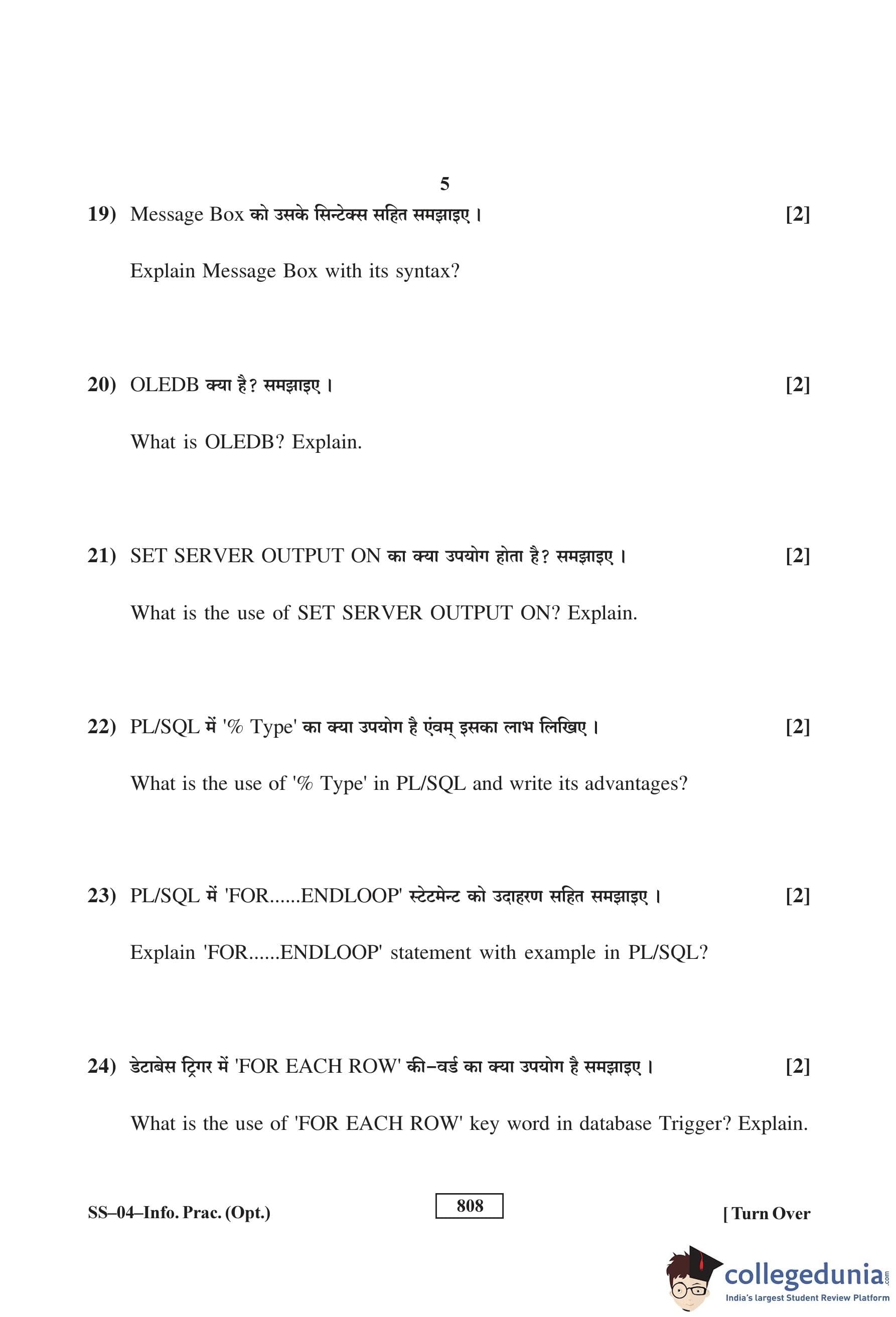RBSE Class 12 Informatics Practice Question Paper 2017 with Answer Key pdf is available for download here. The exam was conducted by Board of Secondary Education Rajasthan (BSER) on March 3, 2017 in the Morning Session 8:30 AM to 11:45 AM. The question paper comprised a total of 30 questions divided among 3 sections.