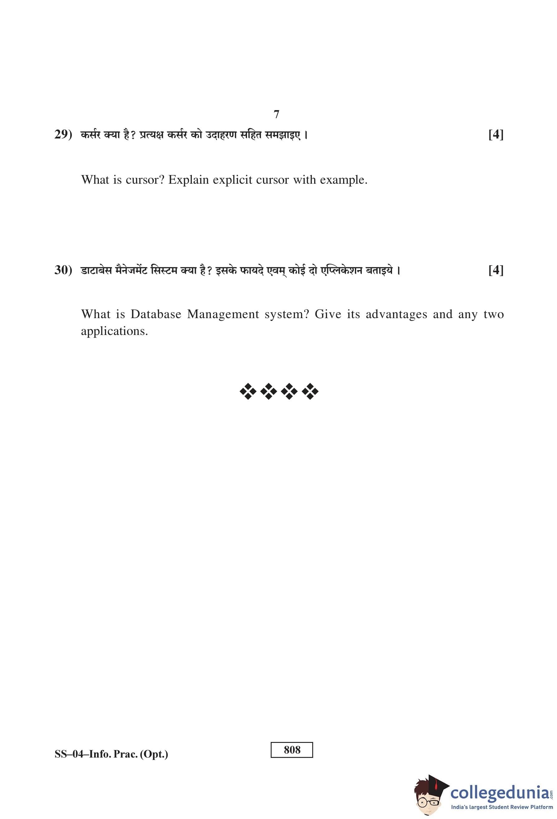 RBSE Class 12 Informatics Practice Question Paper 2017 with Answer Key