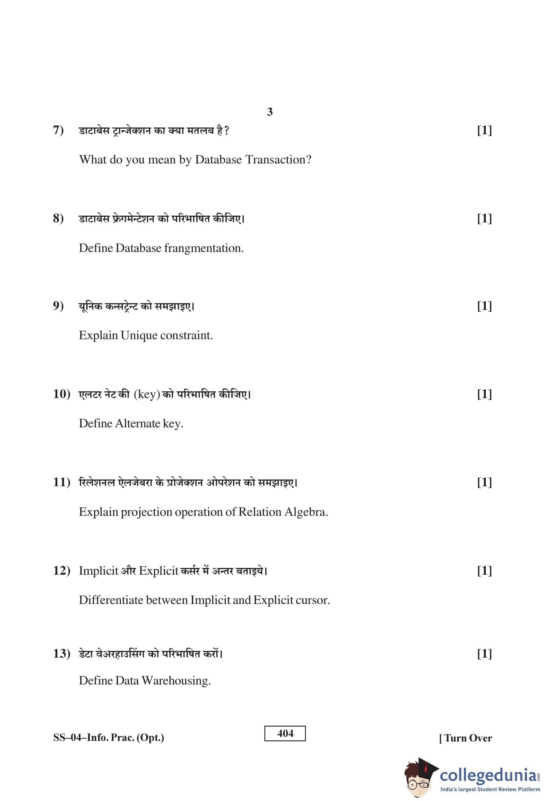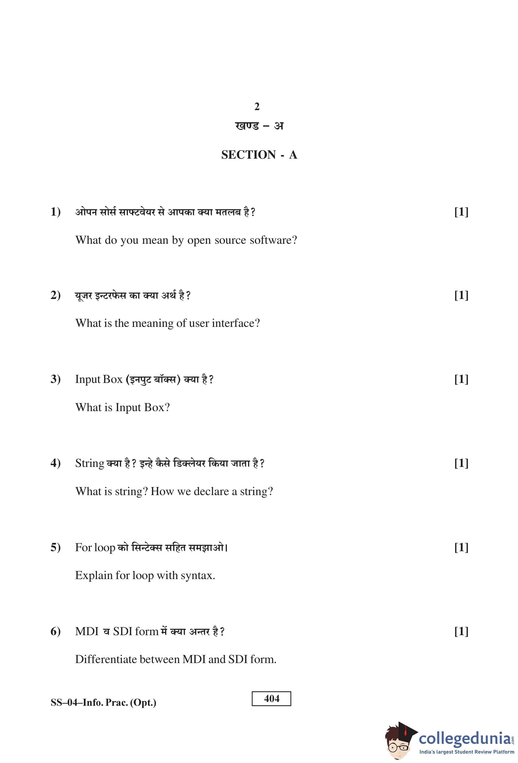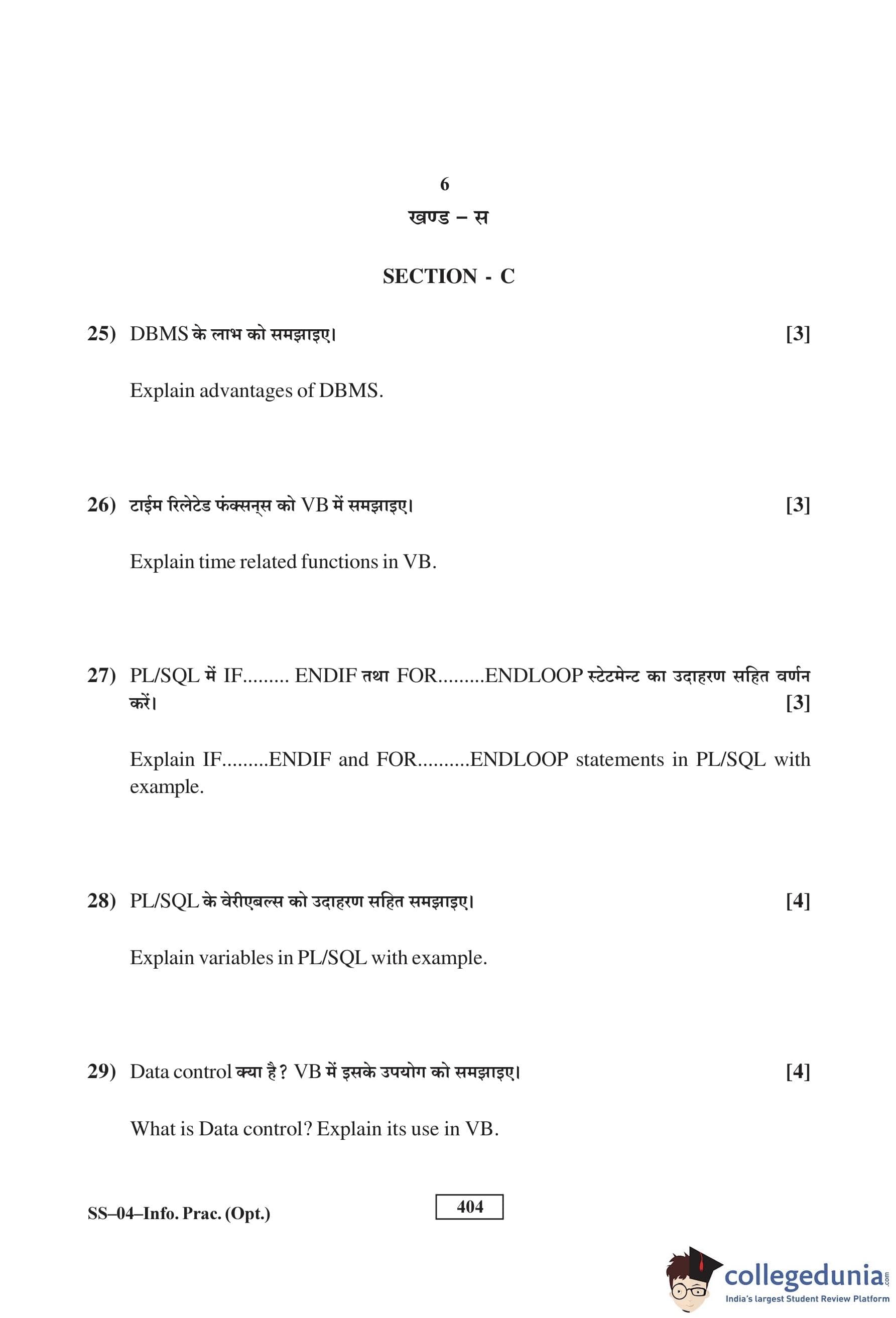 RBSE Class 12 Informatics Practises Question Paper 2016 with Answer Key pdf is available for download here. The exam was conducted by Board of Secondary Education Rajasthan (BSER) on March 4, 2016 in the Morning Session 8:30 AM to 11:45 AM. The question paper comprised a total of 30 questions divided among 3 sections.