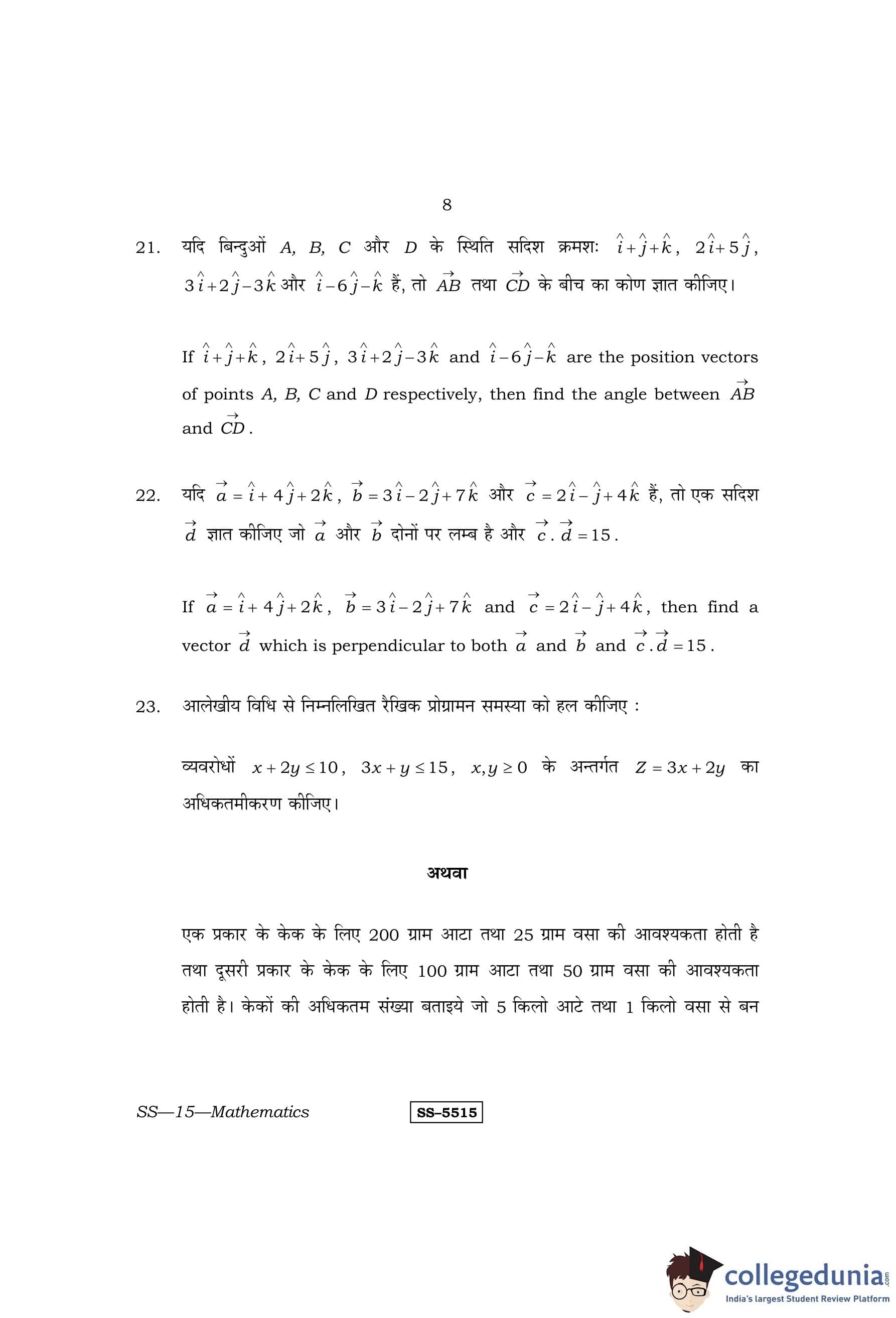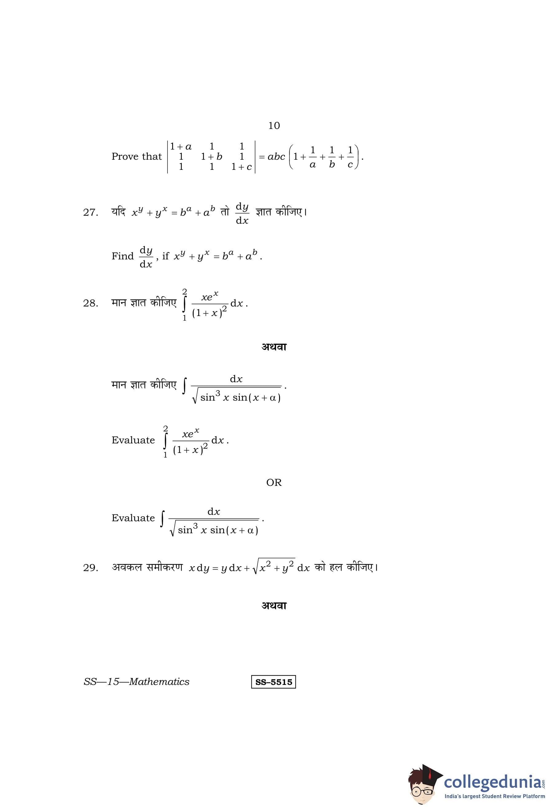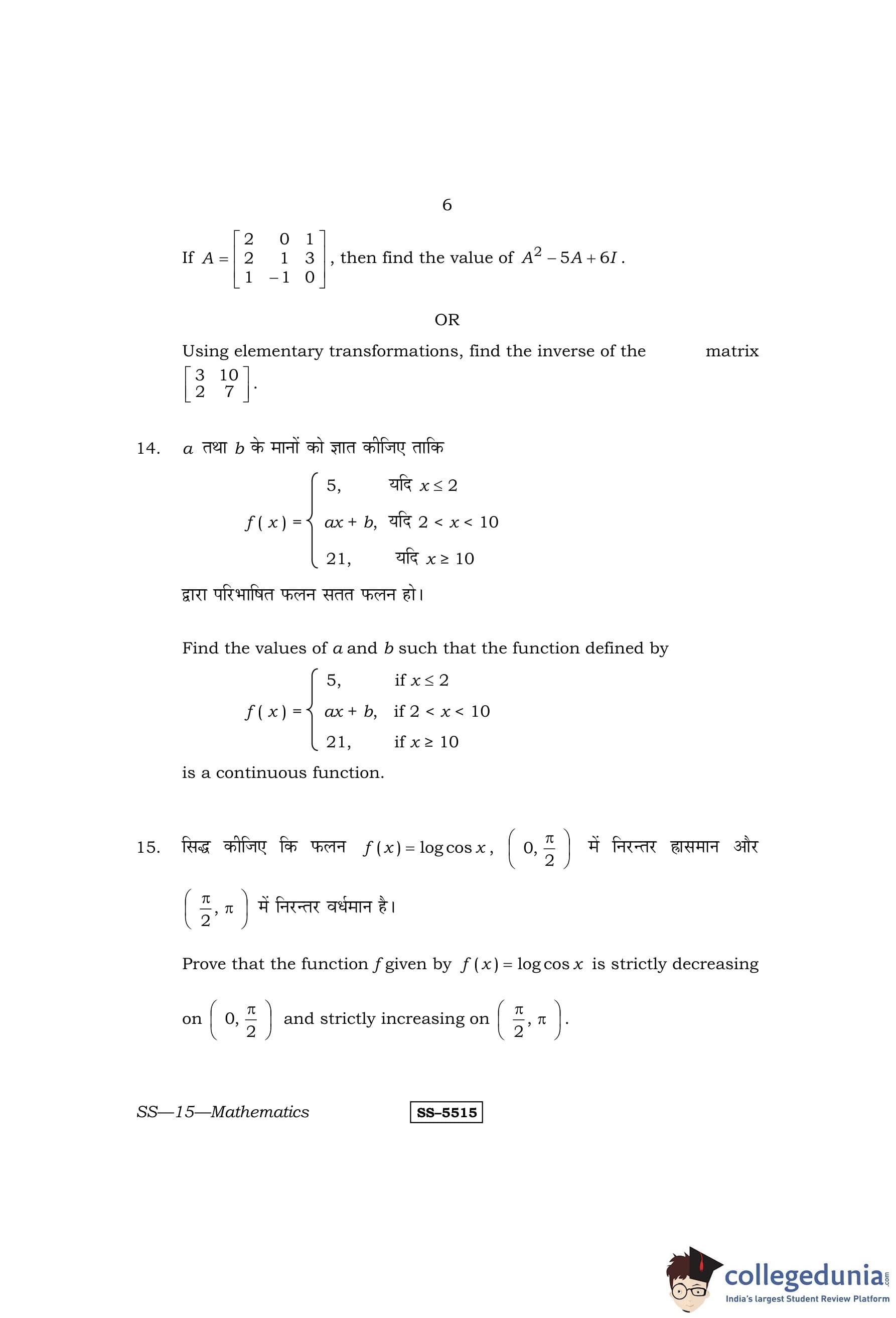 RBSE Class 12 Mathematics Question Paper 2014 with Answer Key