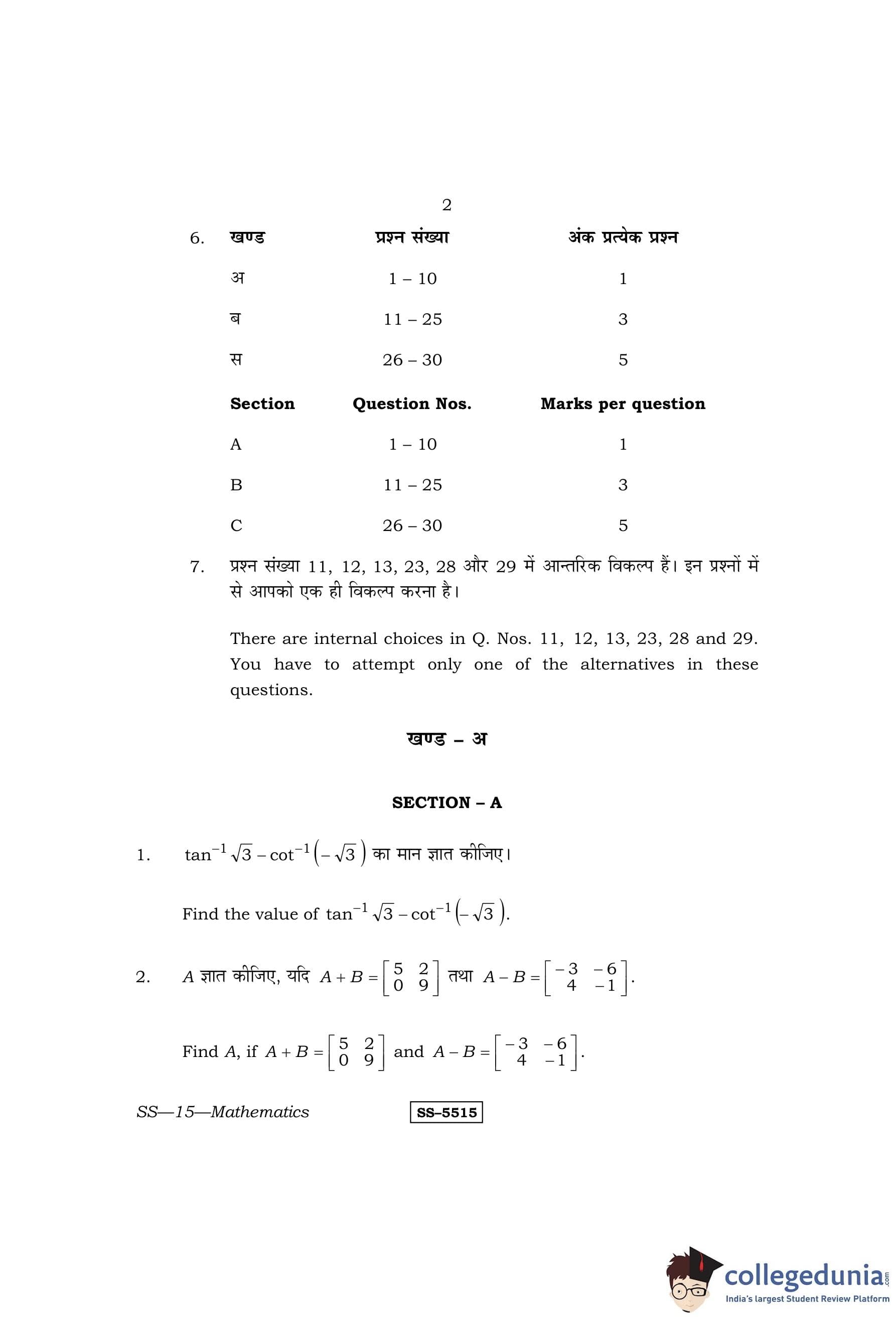 RBSE Class 12 Mathematics Question Paper 2014 with Answer Key pdf is available for download here. The exam was conducted by Board of Secondary Education Rajasthan (BSER) on March 22, 2014 in the Morning Session 8:30 AM to 11:45 AM. The question paper comprised a total of 30 questions divided among 3 sections.