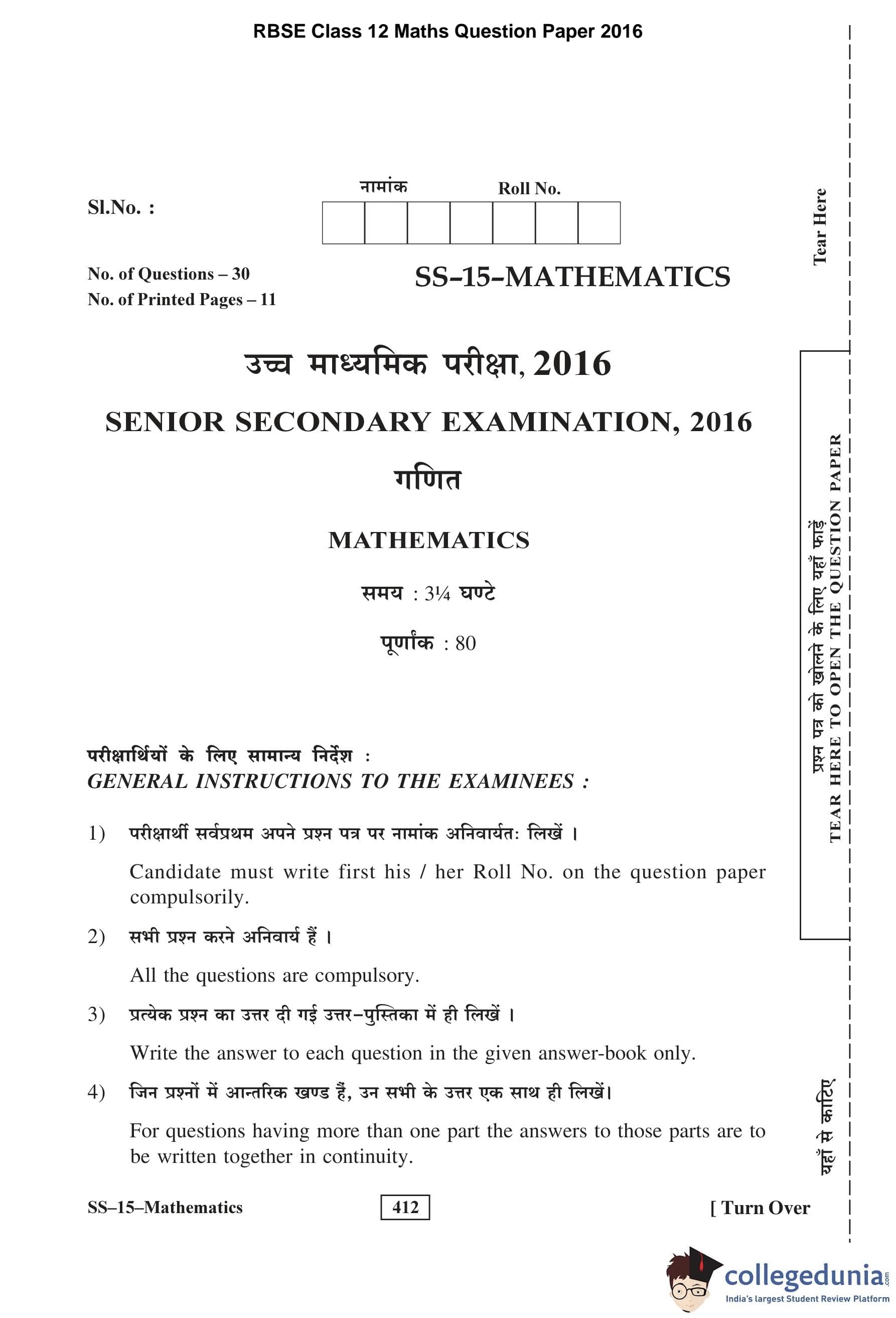 | RBSE Class 12 Mathematics Question Paper 2016 PDF | RBSE Class 12 Mathematics Answer Key 2016 PDF |