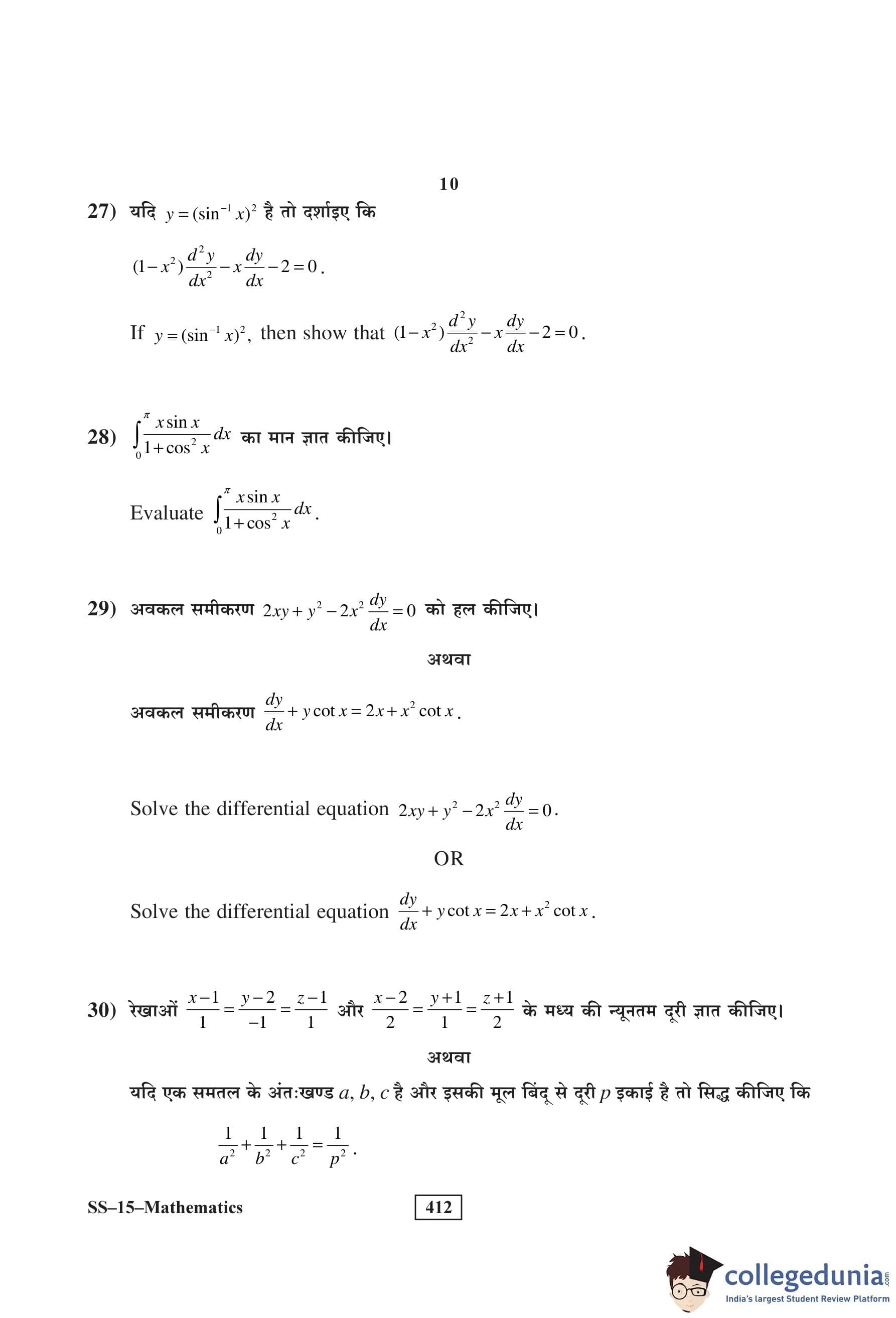 RBSE Class 12 Mathematics Question Paper 2016 with Answer Key
