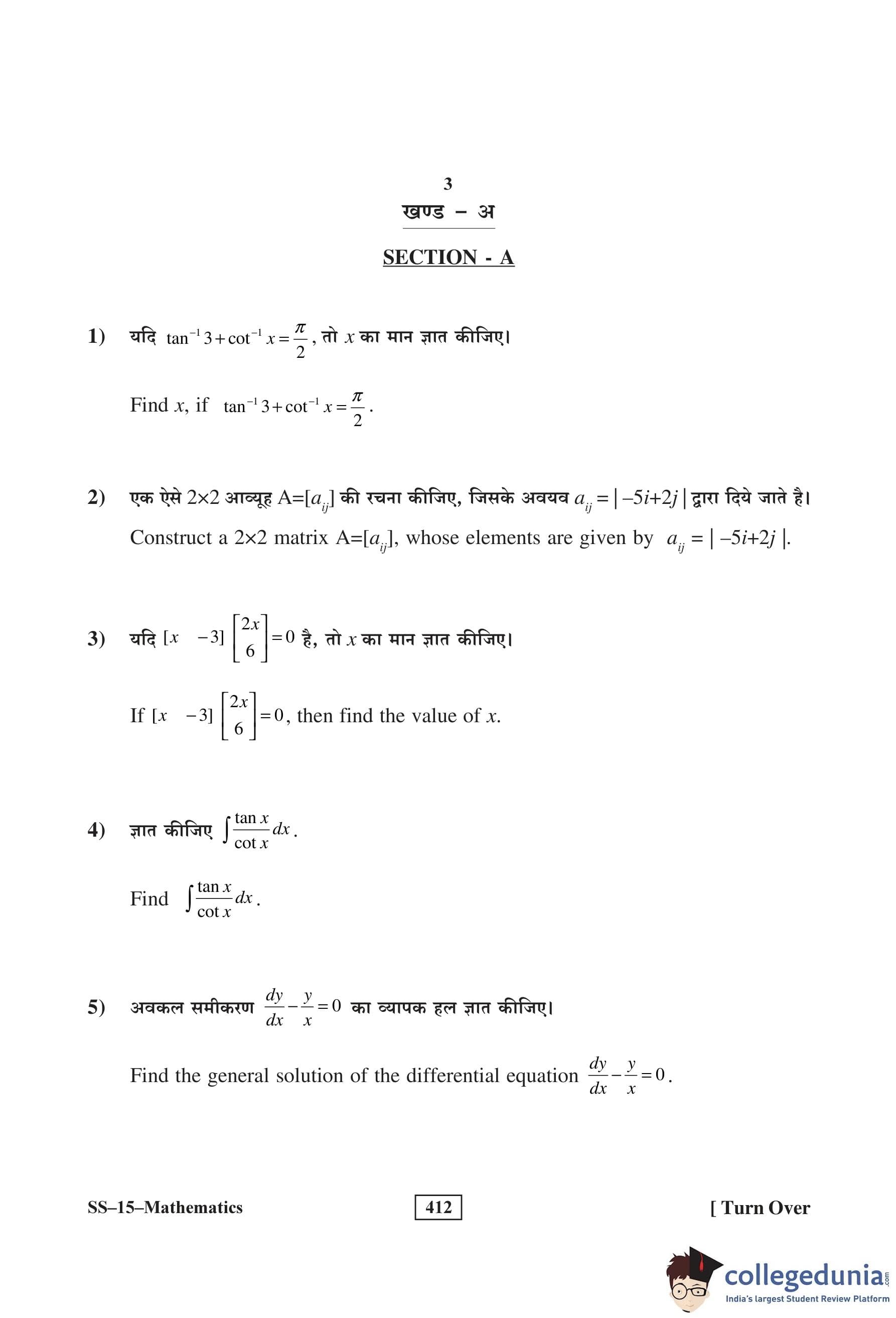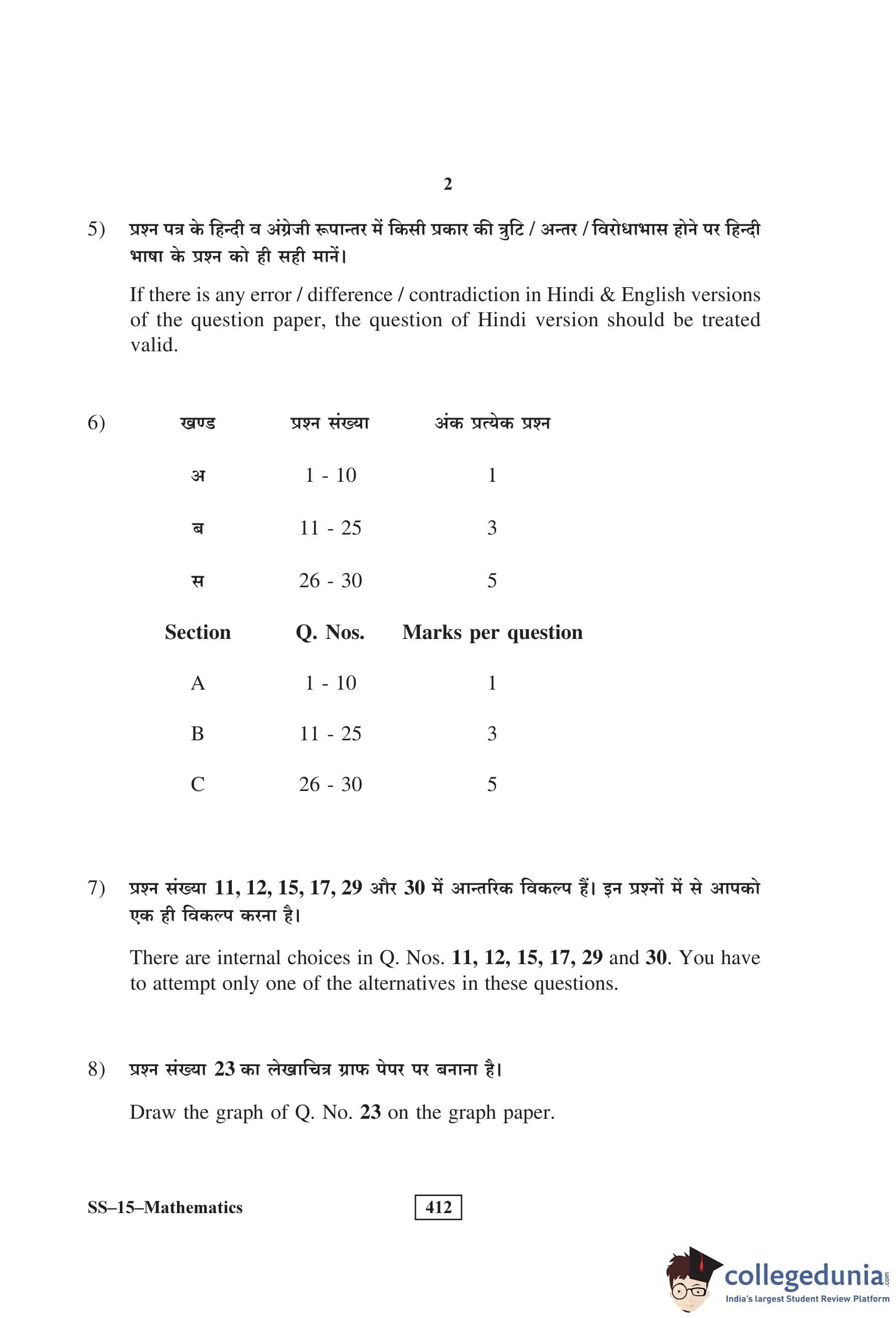 RBSE Class 12 Mathematics Question Paper 2016 with Answer Key pdf is available for download here. The exam was conducted by Board of Secondary Education Rajasthan (BSER) on March 17, 2016 in the Morning Session 8:30 AM to 11:45 AM. The question paper comprised a total of 30 questions divided among 3 sections.