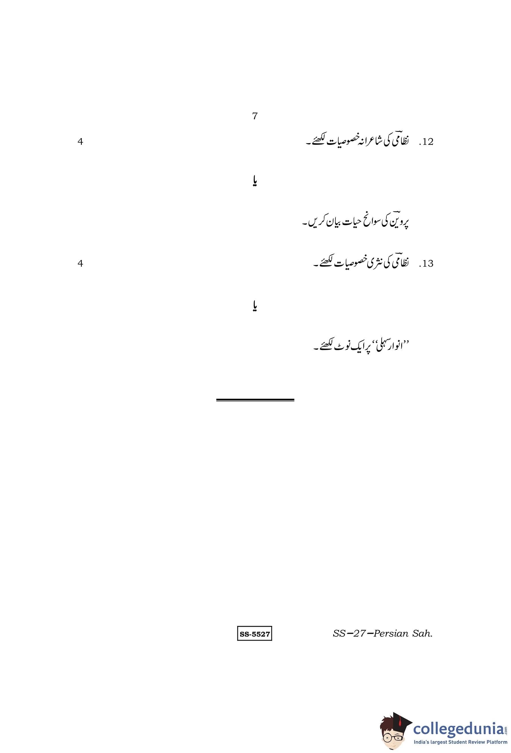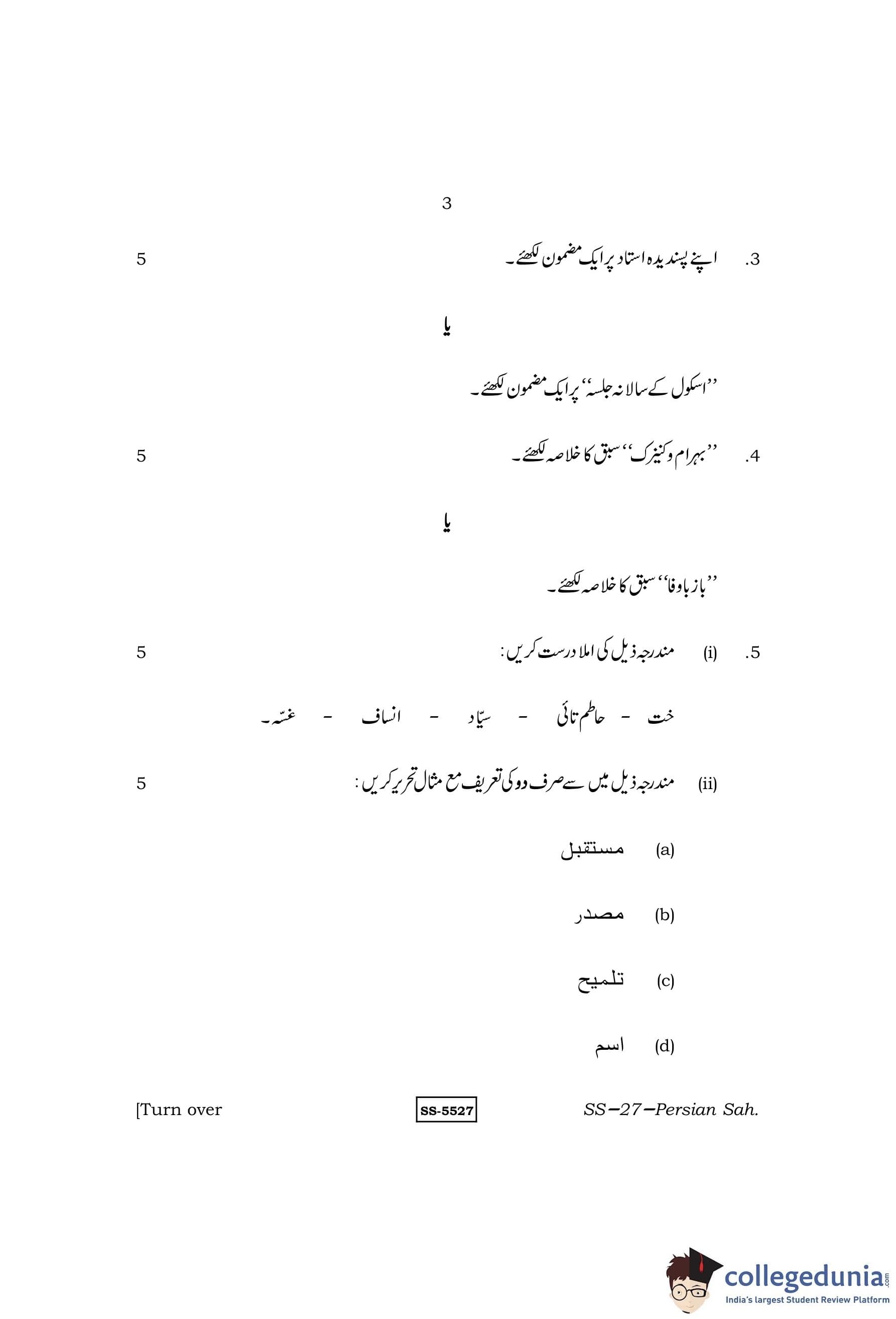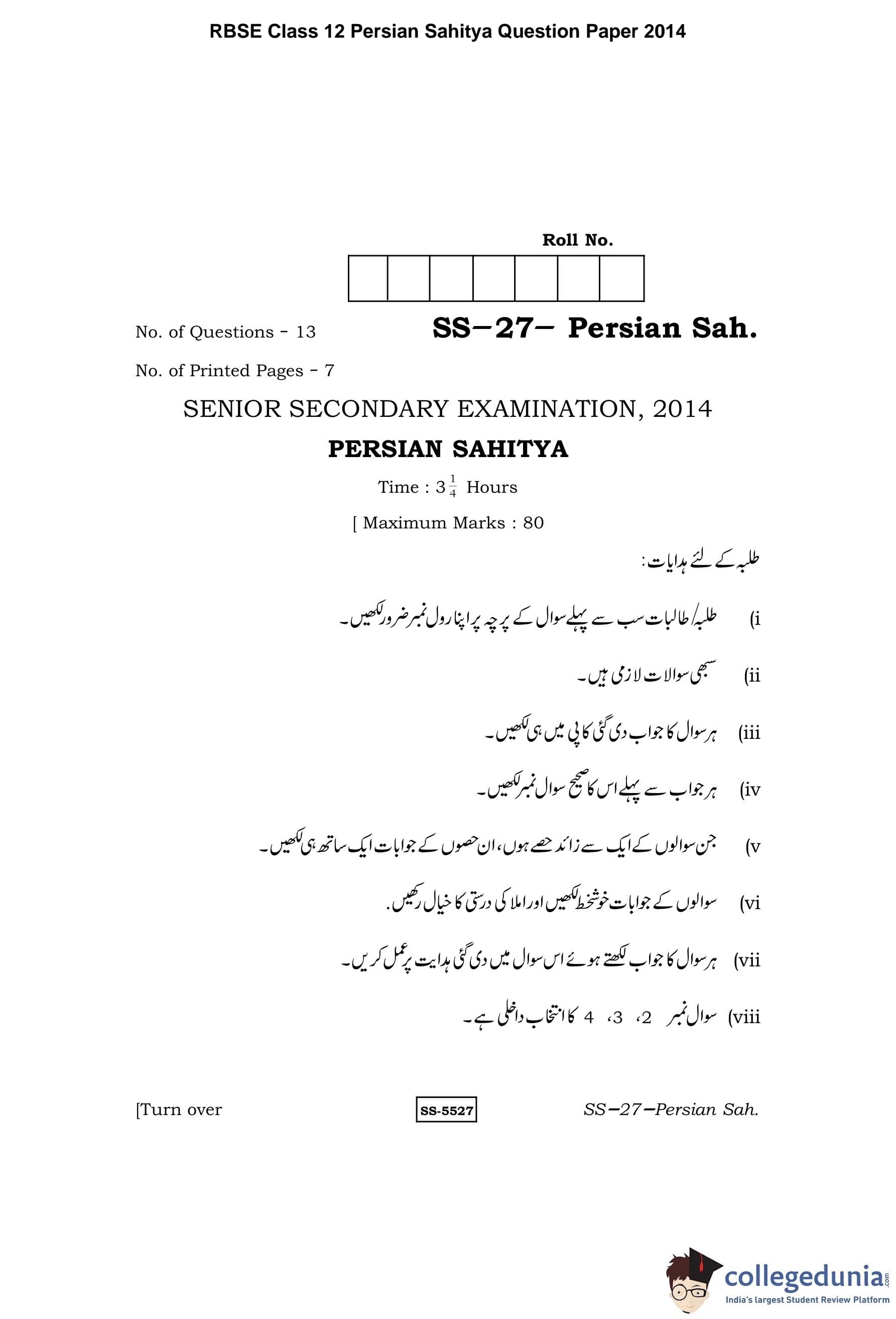 RBSE Class 12 Persian Sahitya Question Paper 2014 with Answer Key pdf is available for download here. The exam was conducted by Board of Secondary Education Rajasthan (BSER) on March 20, 2014 in the Morning Session 8:30 AM to 11:45 AM. The question paper comprised a total of 13 questions.