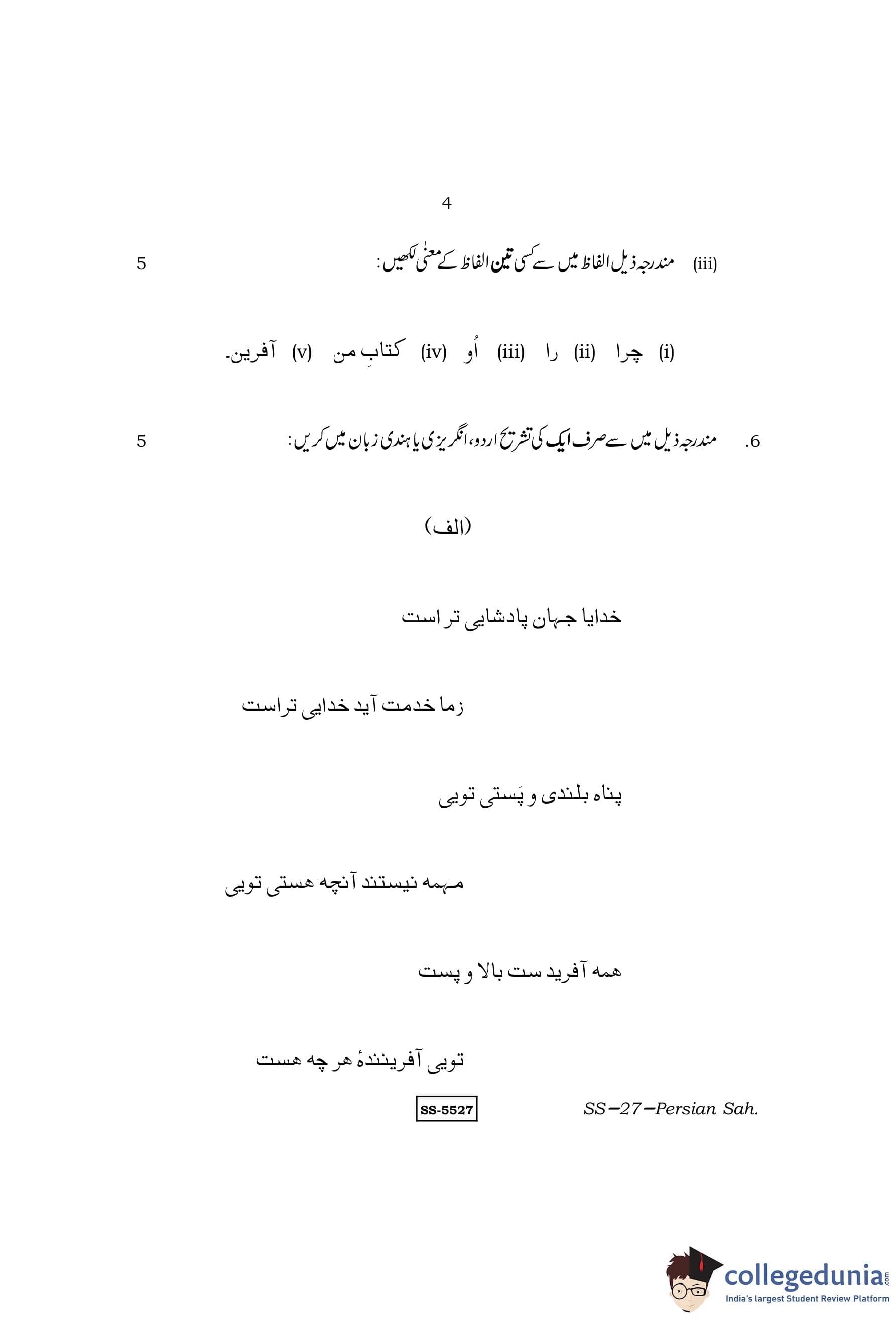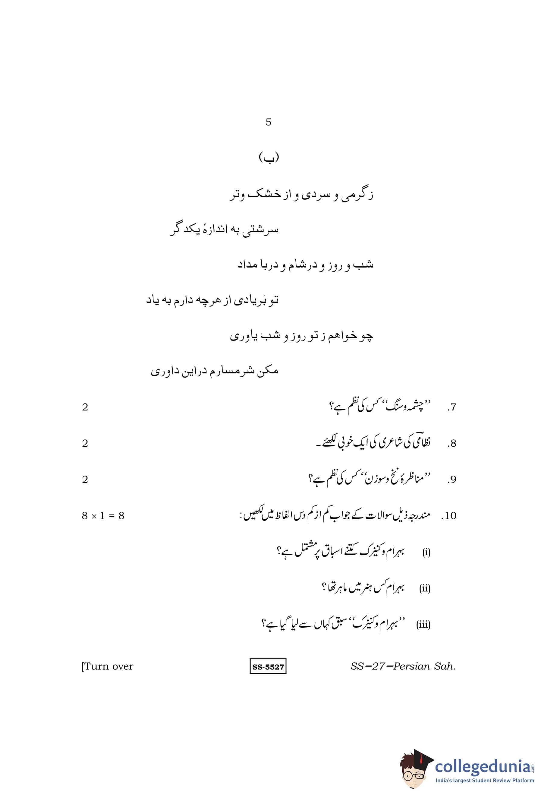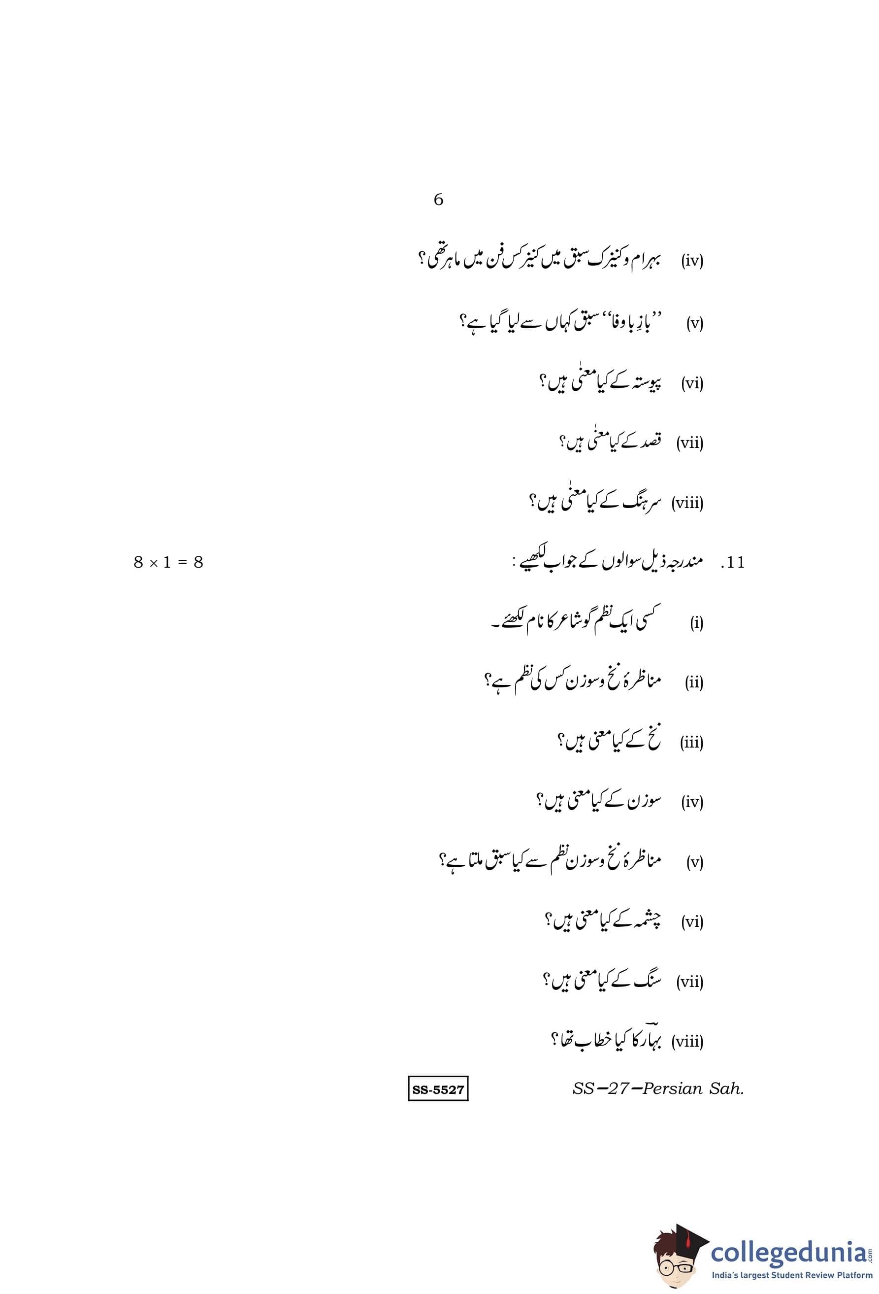 RBSE Class 12 Persian Sahitya Question Paper 2014 with Answer Key pdf is available for download here. The exam was conducted by Board of Secondary Education Rajasthan (BSER) on March 20, 2014 in the Morning Session 8:30 AM to 11:45 AM. The question paper comprised a total of 13 questions.