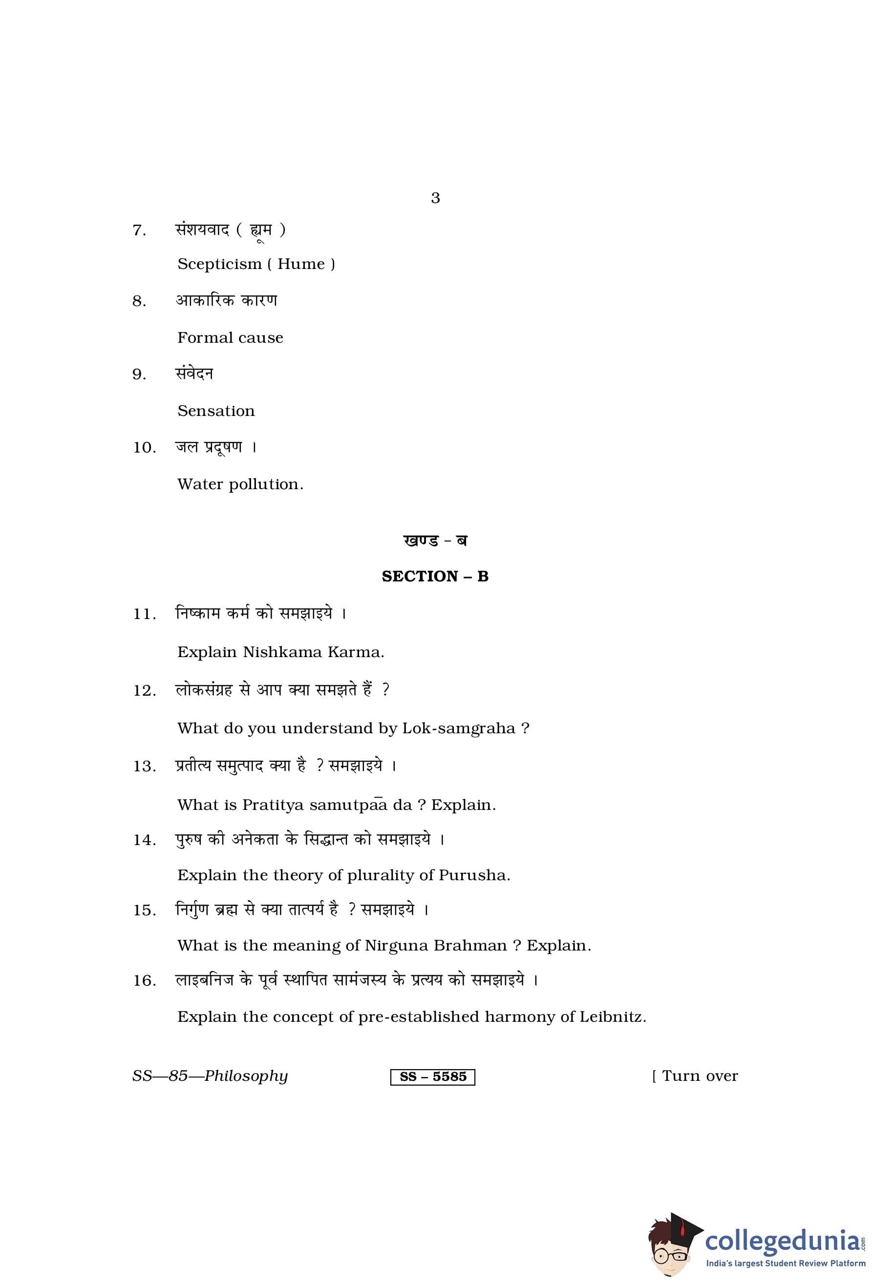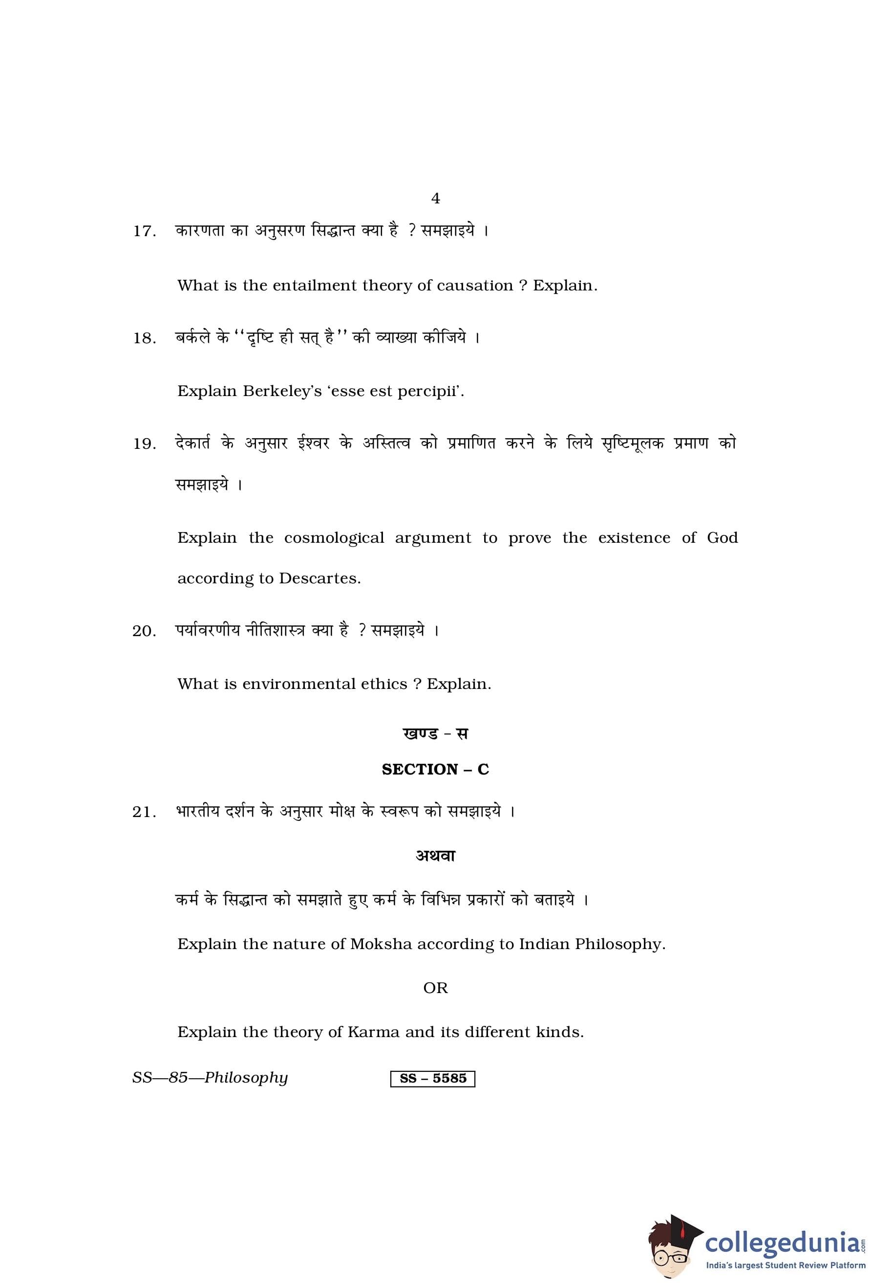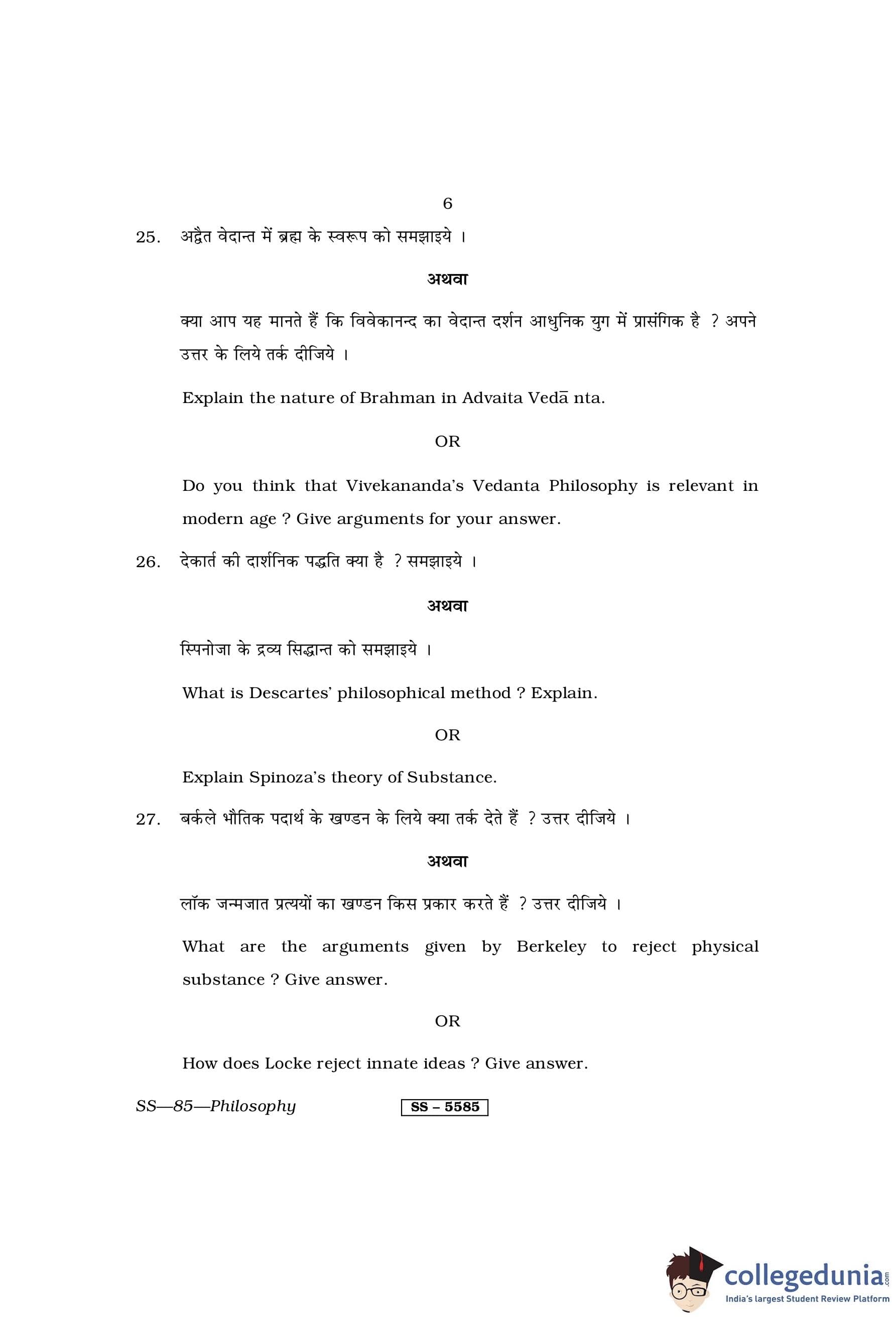 RBSE Class 12 Philosophy Question Paper 2014 with Answer Key pdf is available for download here. The exam was conducted by Board of Secondary Education Rajasthan (BSER) on March 15, 2014 in the Morning Session 8:30 AM to 11:45 AM. The question paper comprised a total of 30 questions divided among 3 sections.