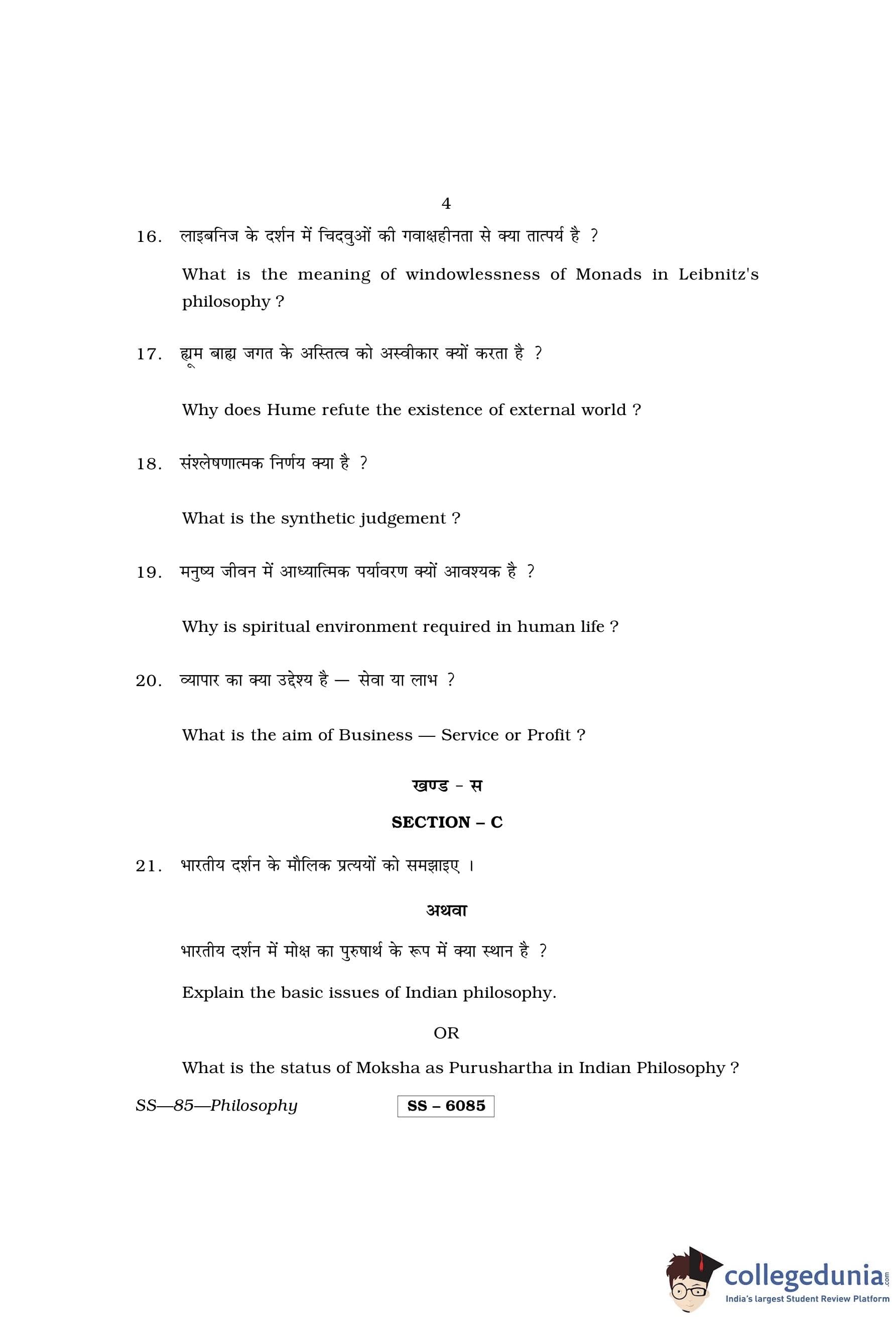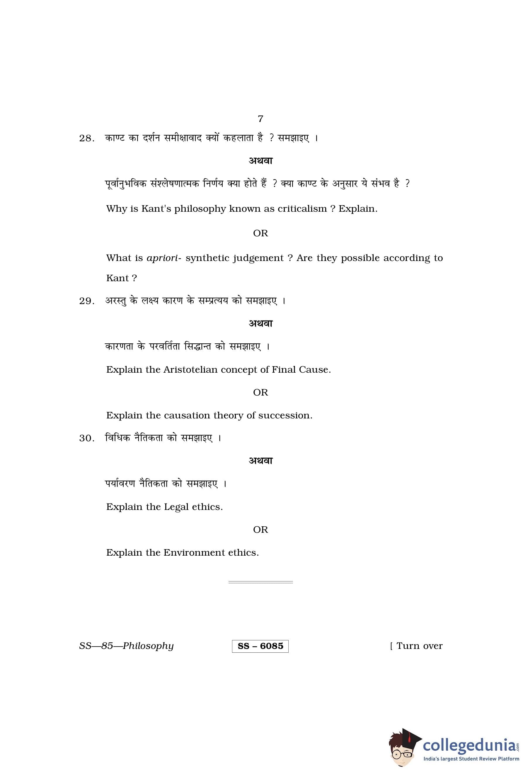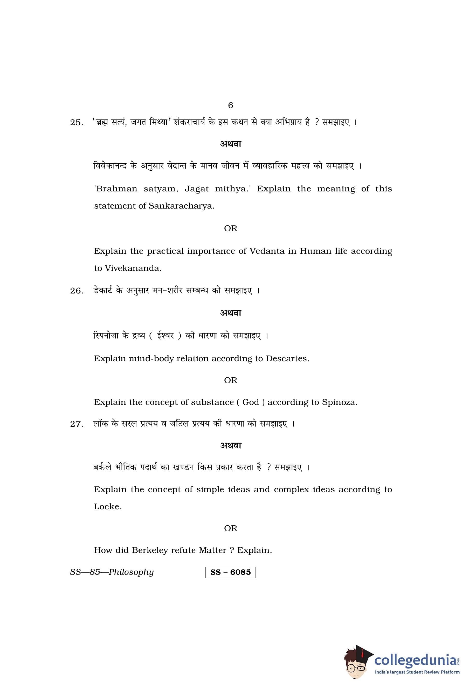 RBSE Class 12 Philosophy Question Paper 2015 with Answer Key pdf is available for download here. The exam was conducted by Board of Secondary Education Rajasthan (BSER) on March 25, 2015 in the Morning Session 8:30 AM to 11:45 AM. The question paper comprised a total of 30 questions divided among 3 sections.