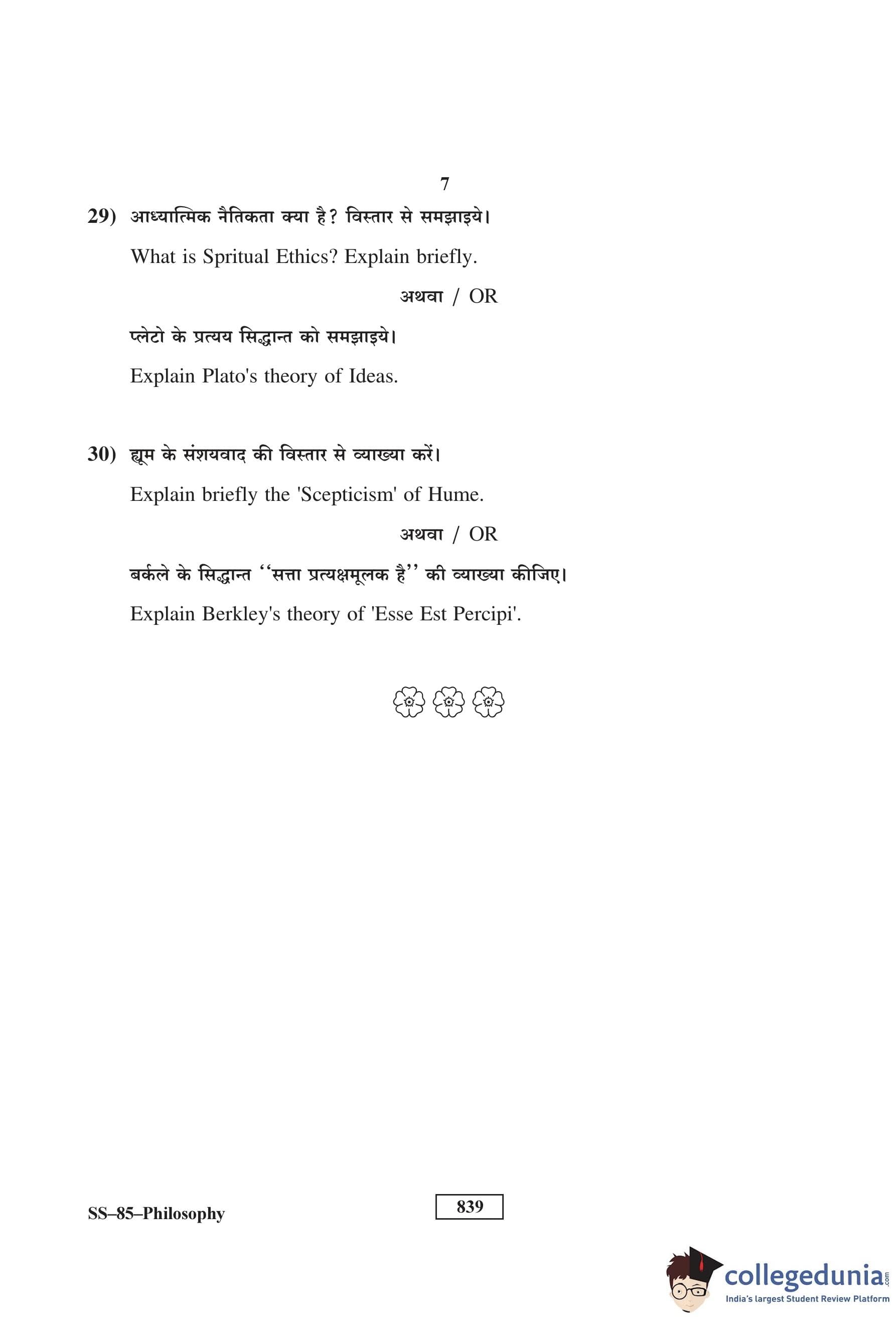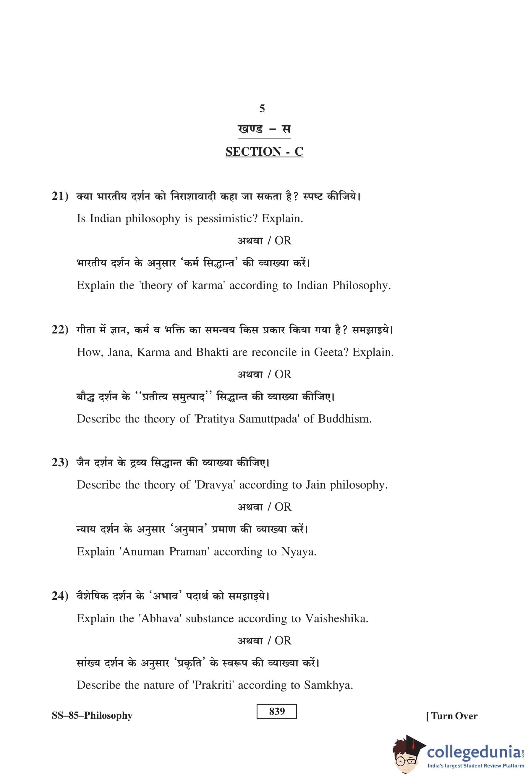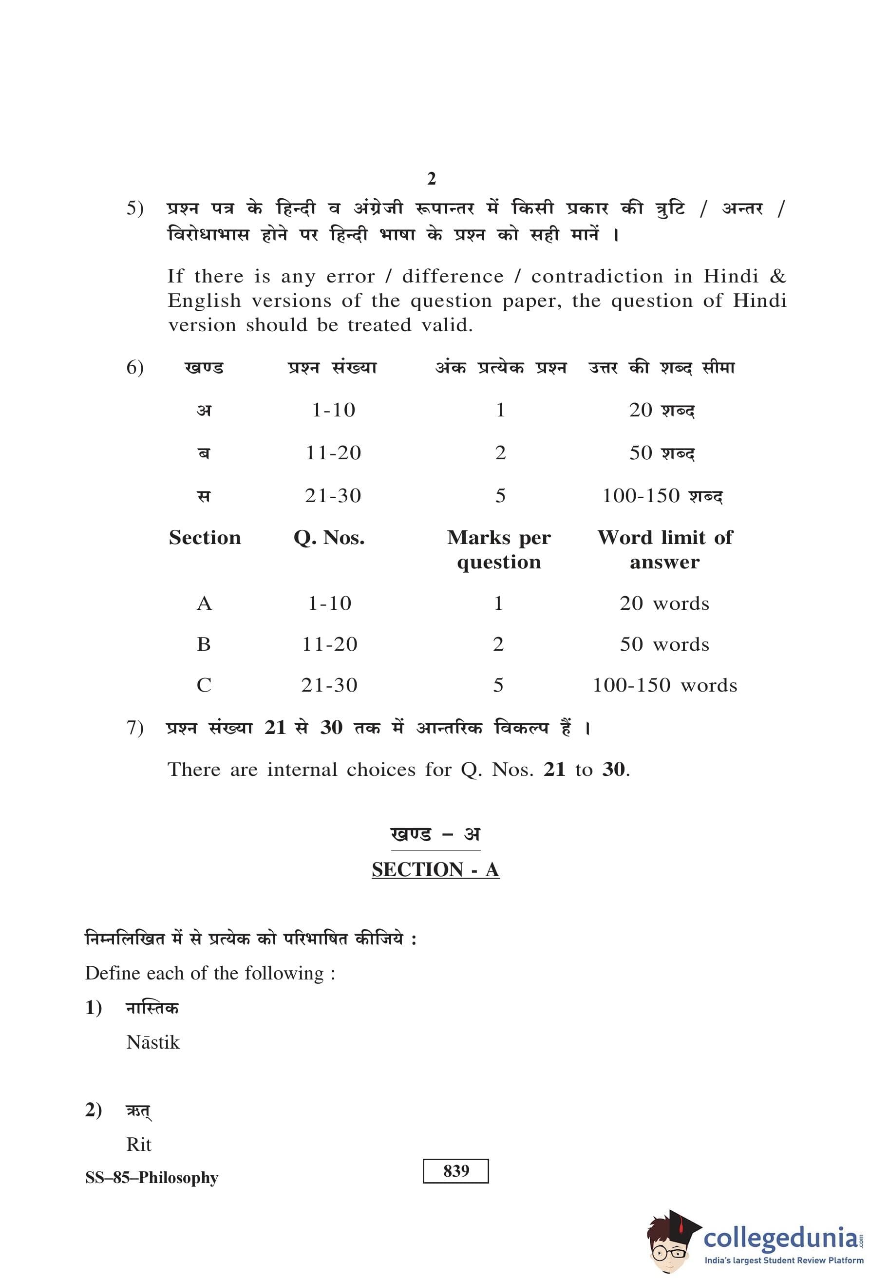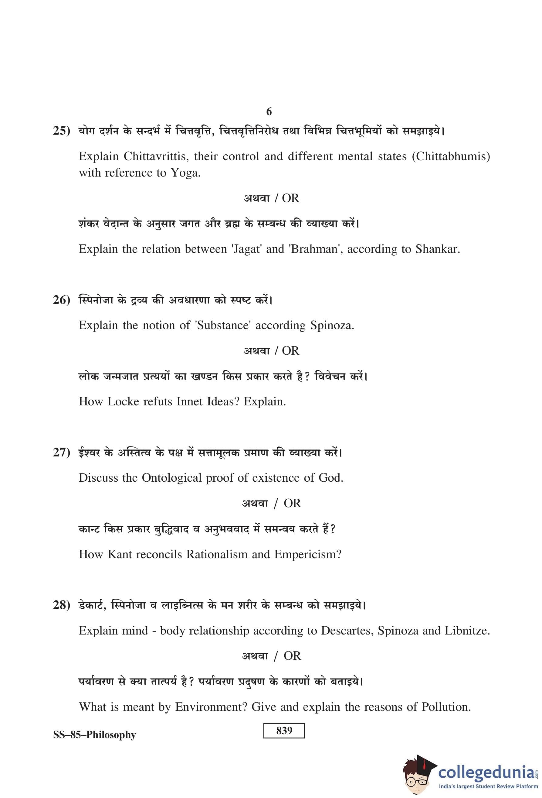 RBSE Class 12 Philosophy Question Paper 2017 with Answer Key pdf is available for download here. The exam was conducted by Board of Secondary Education Rajasthan (BSER) on March 23, 2017 in the Morning Session 8:30 AM to 11:45 AM. The question paper comprised a total of 30 questions divided among 3 sections.