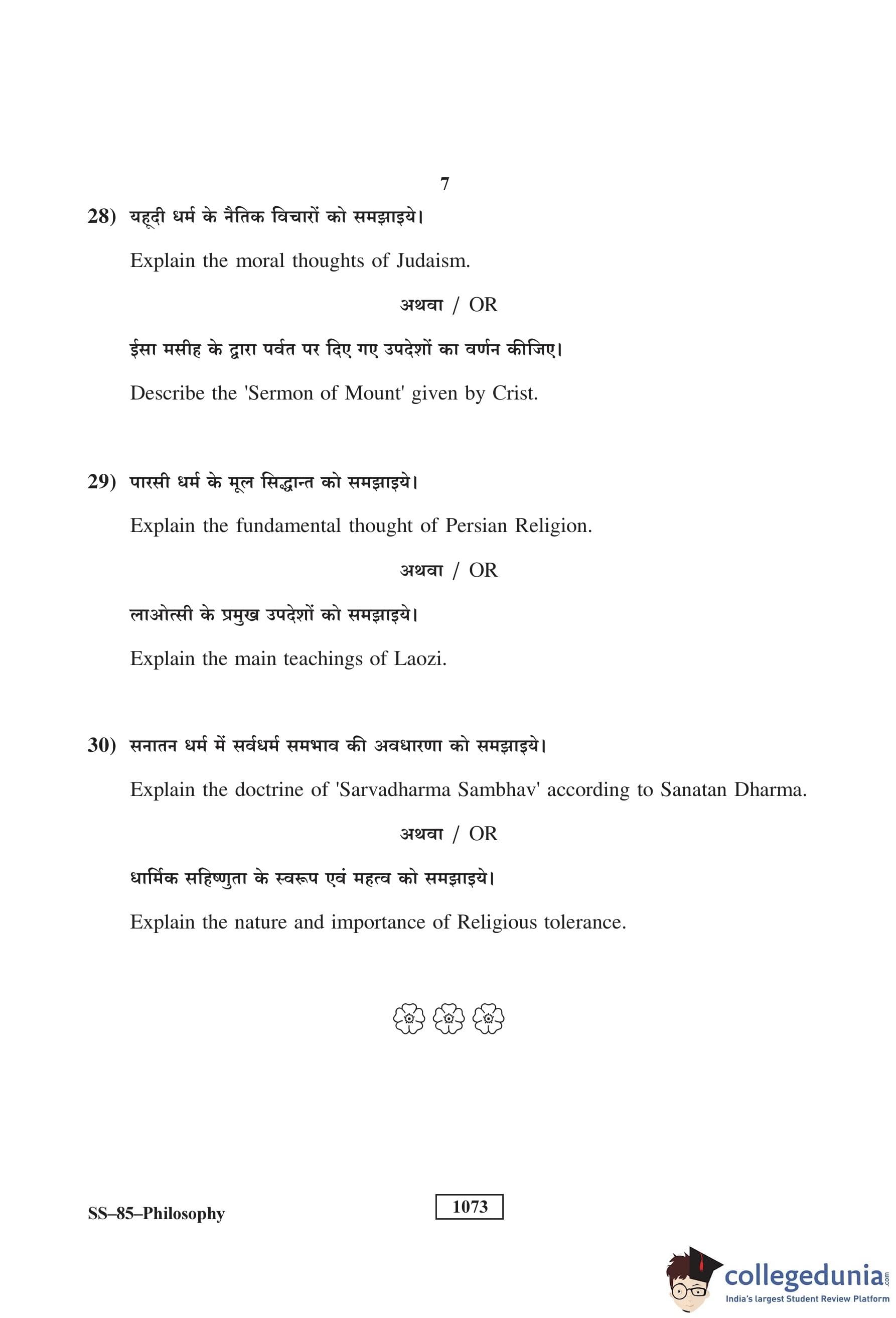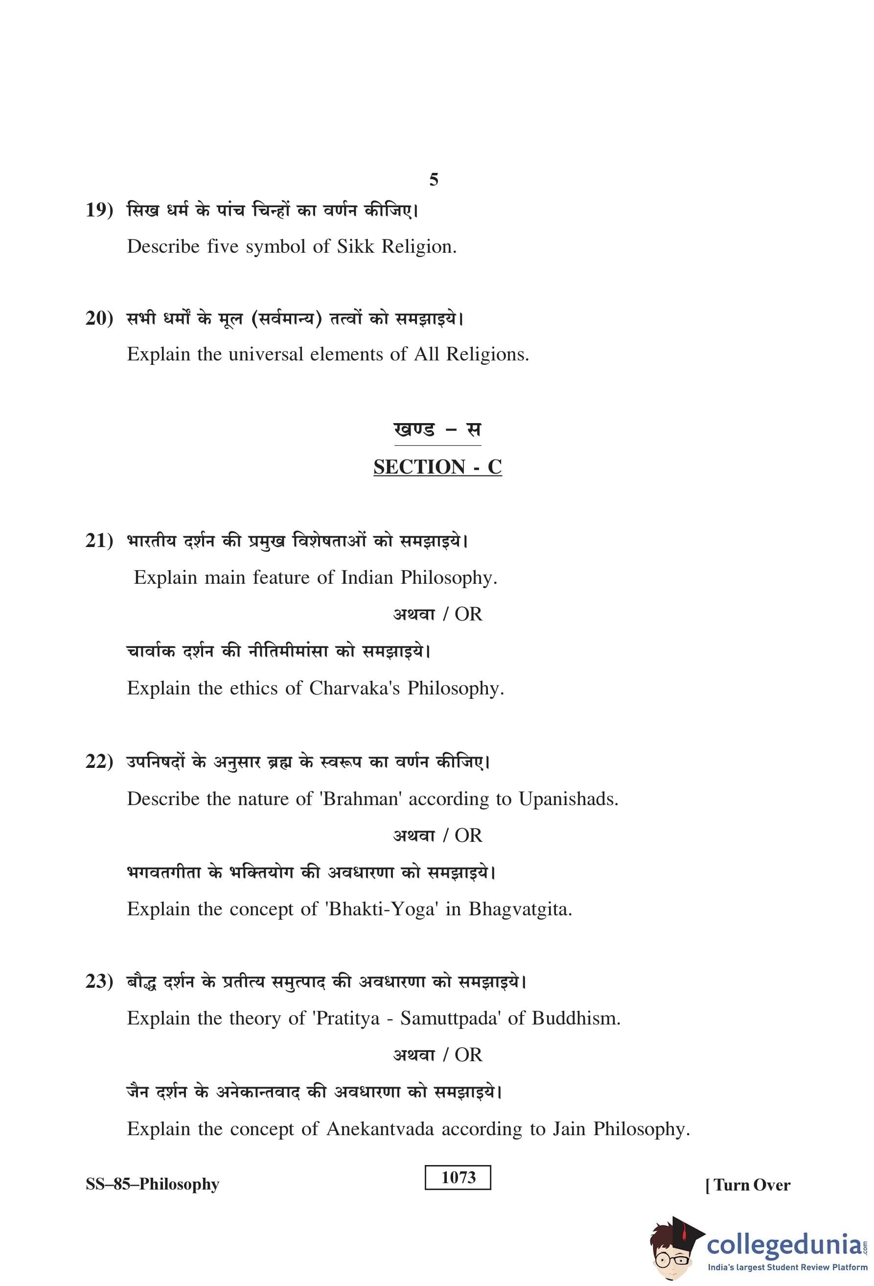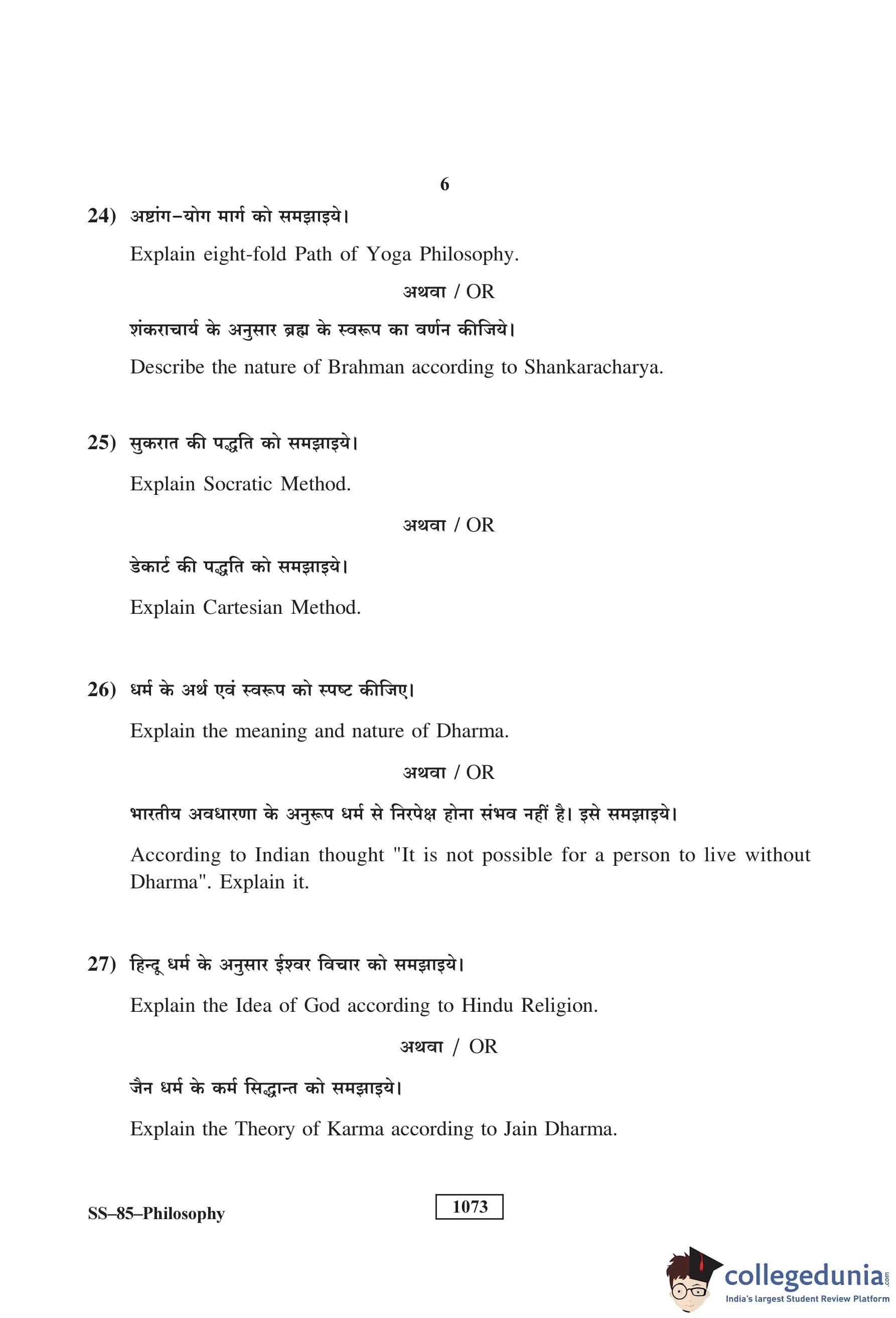 RBSE Class 12 Philosophy Question Paper 2018 with Answer Key pdf is available for download here. The exam was conducted by Board of Secondary Education Rajasthan (BSER) on March 26, 2018 in the Morning Session 8:30 AM to 11:45 AM. The question paper comprised a total of 30 questions divided among 3 sections.
