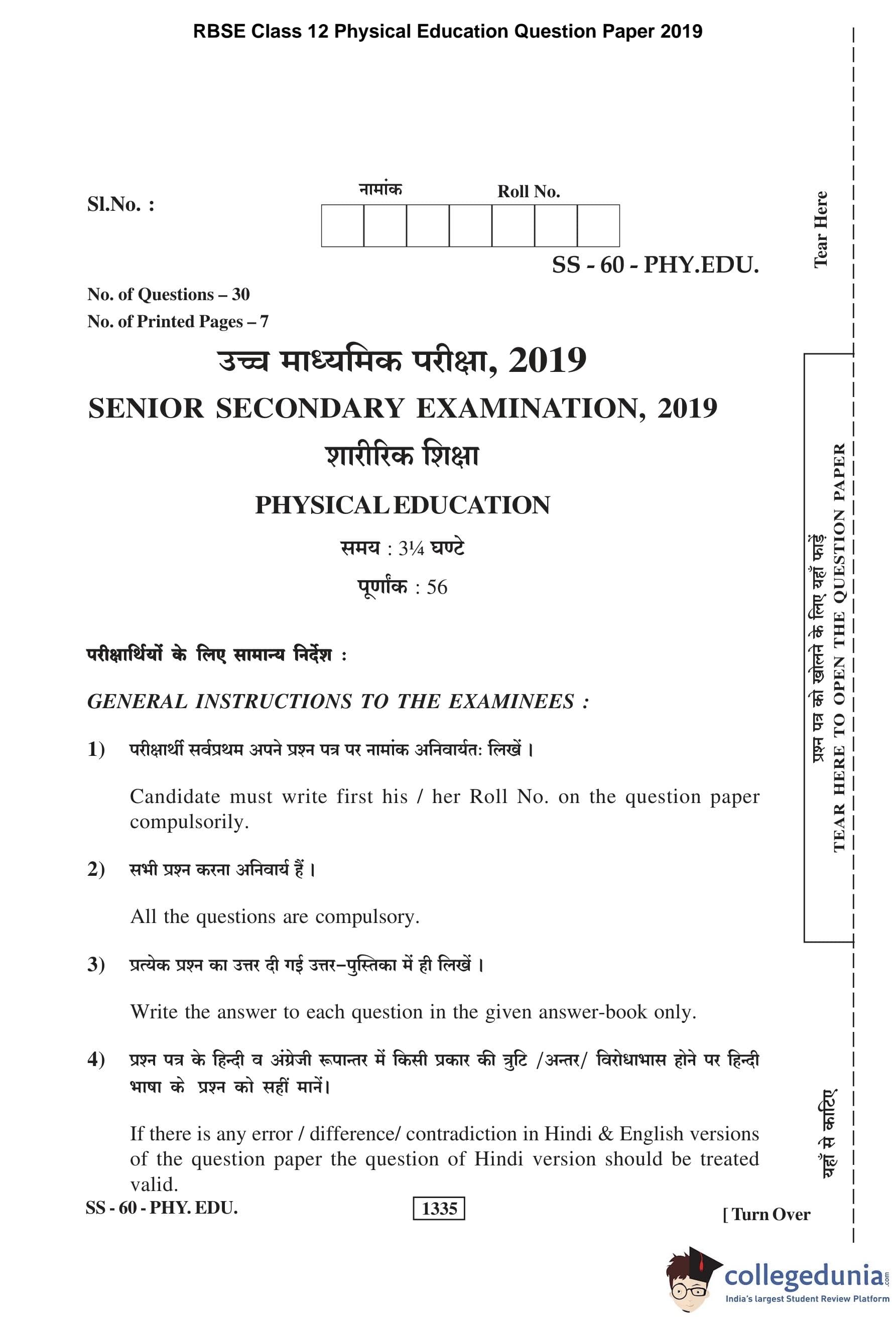 | RBSE Class 12 Physical Education Question Paper 2019 PDF | RBSE Class 12 Physical Education Answer Key 2019 PDF |