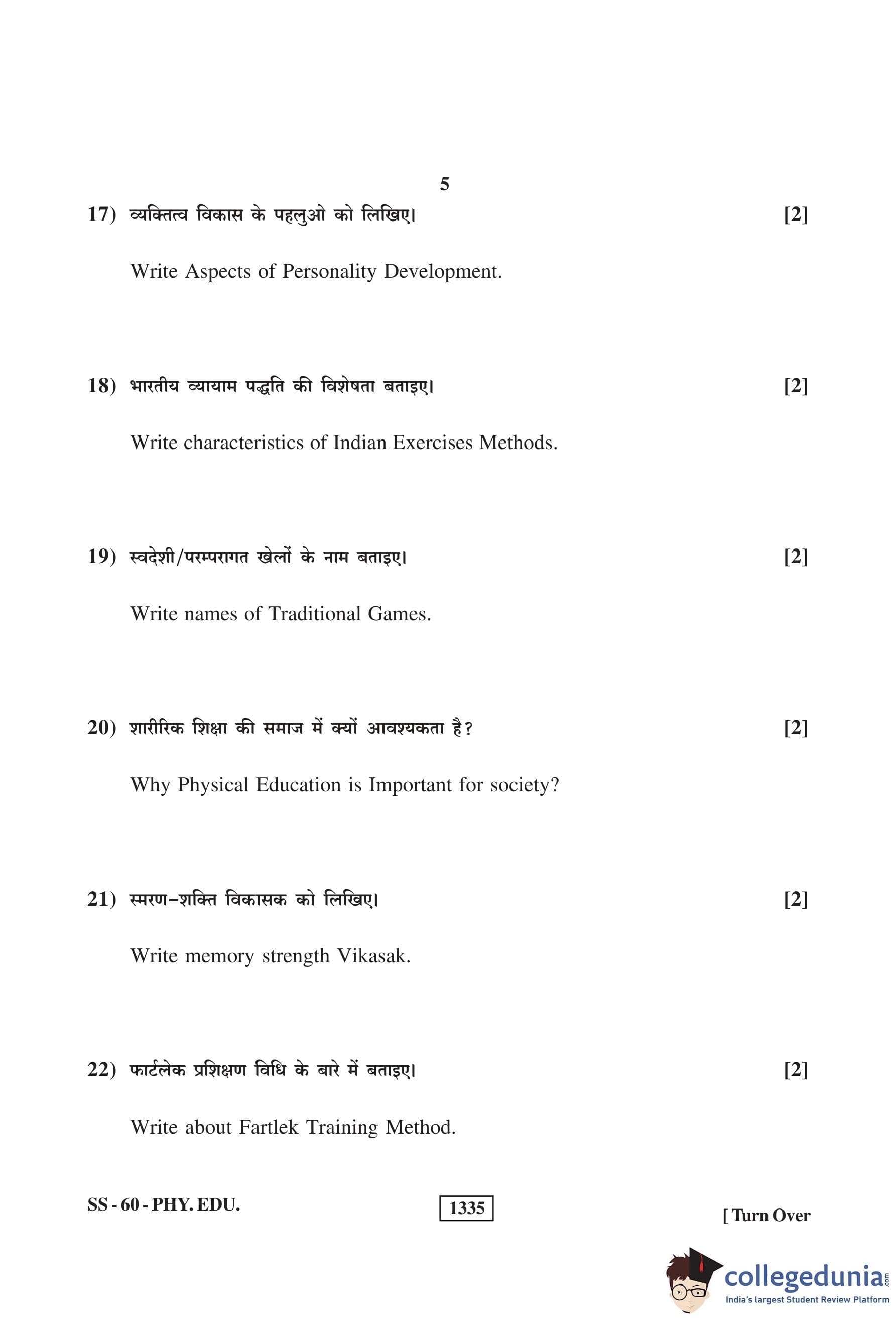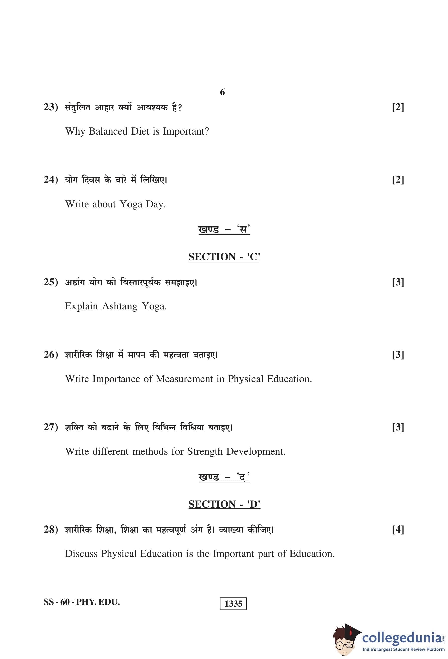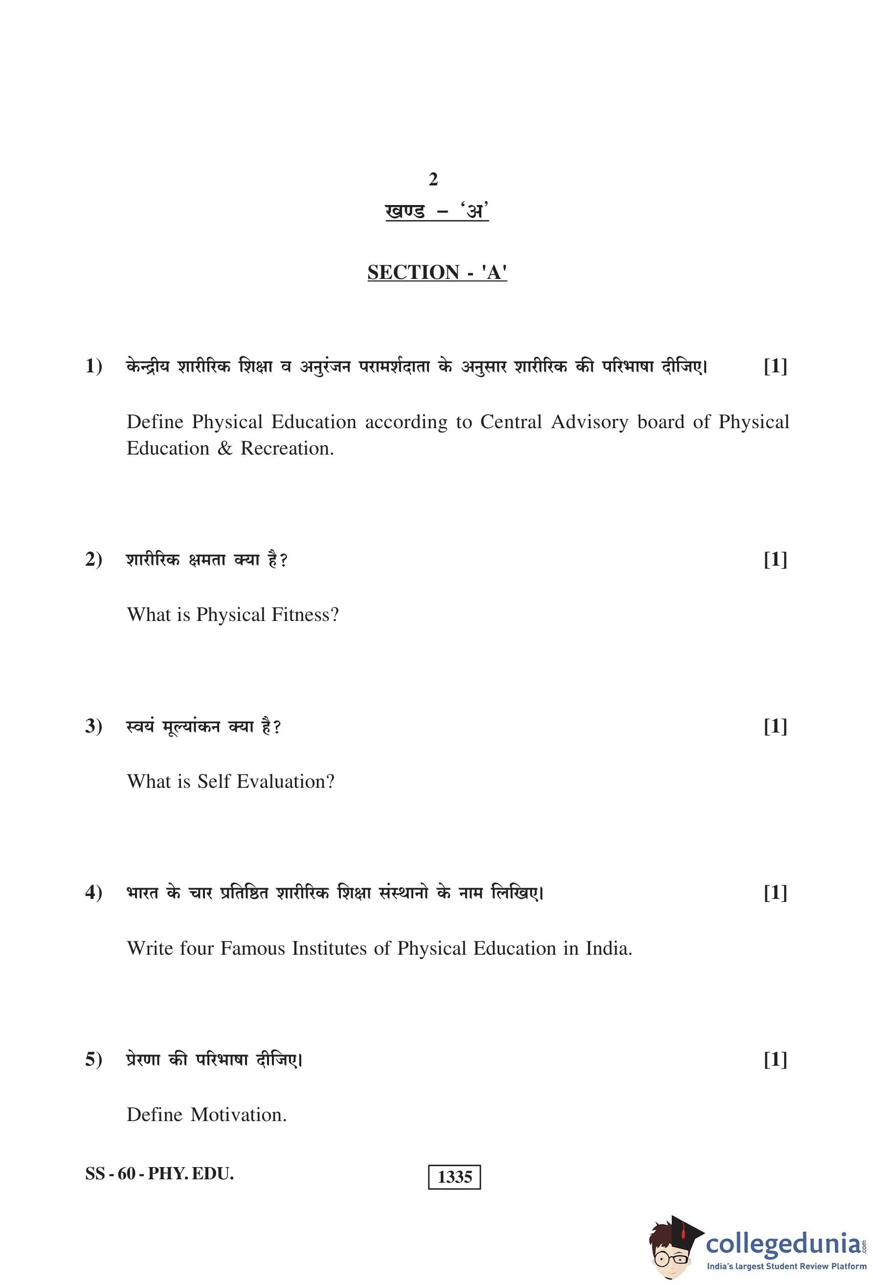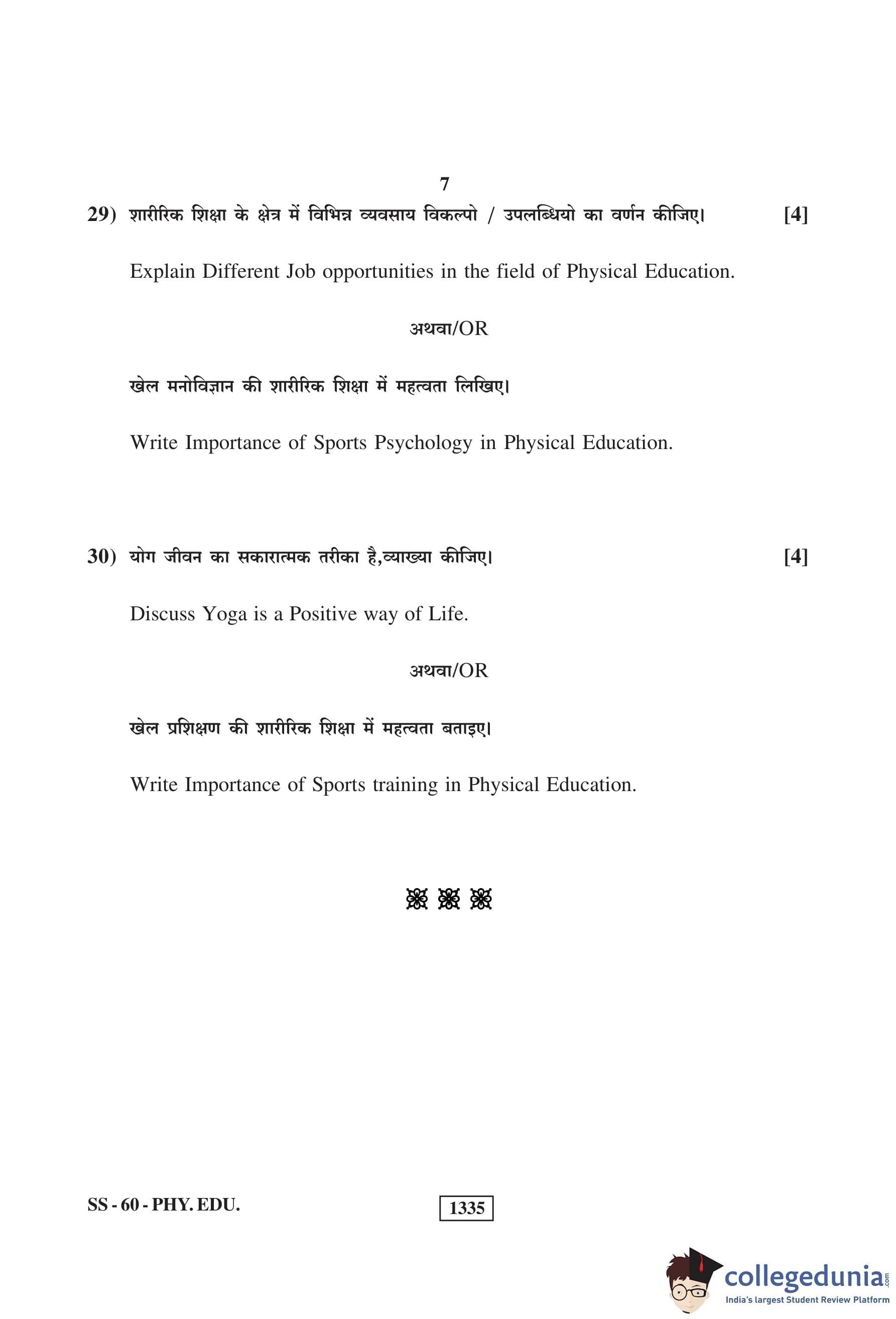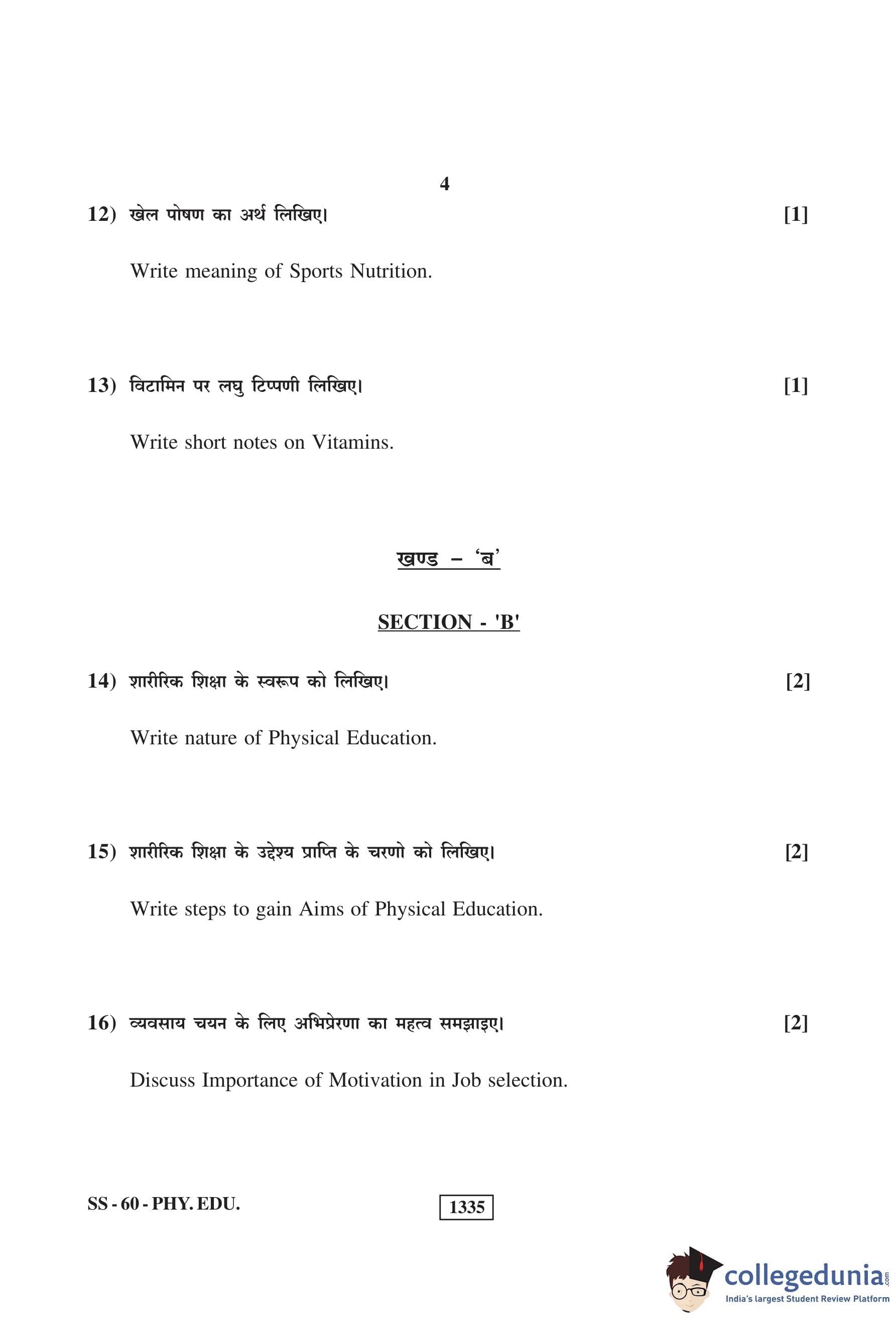 RBSE Class 12 Physical Education Question Paper 2019 with Answer Key pdf is available for download here. The exam was conducted by Board of Secondary Education Rajasthan (BSER) on March 14, 2019 in the Morning Session 8:30 AM to 11:45 AM. The question paper comprised a total of 30 questions.