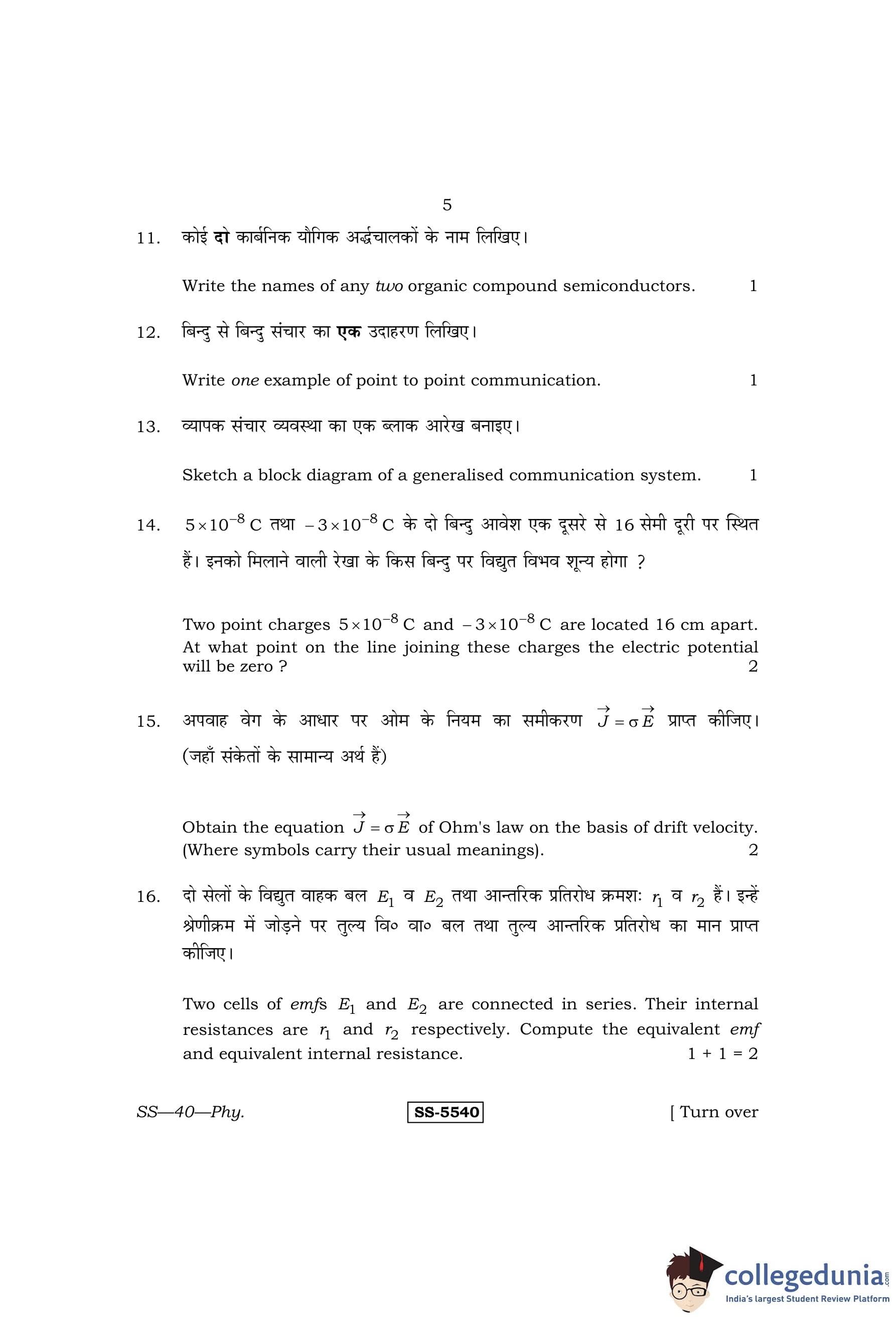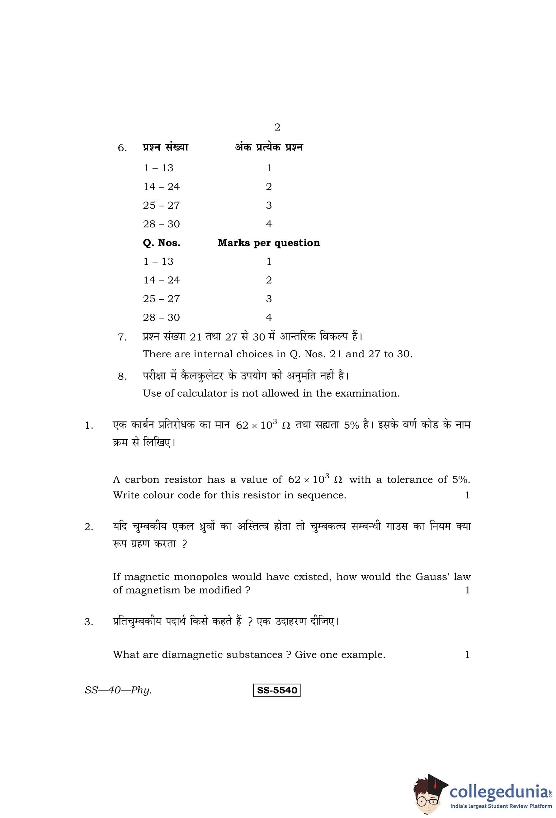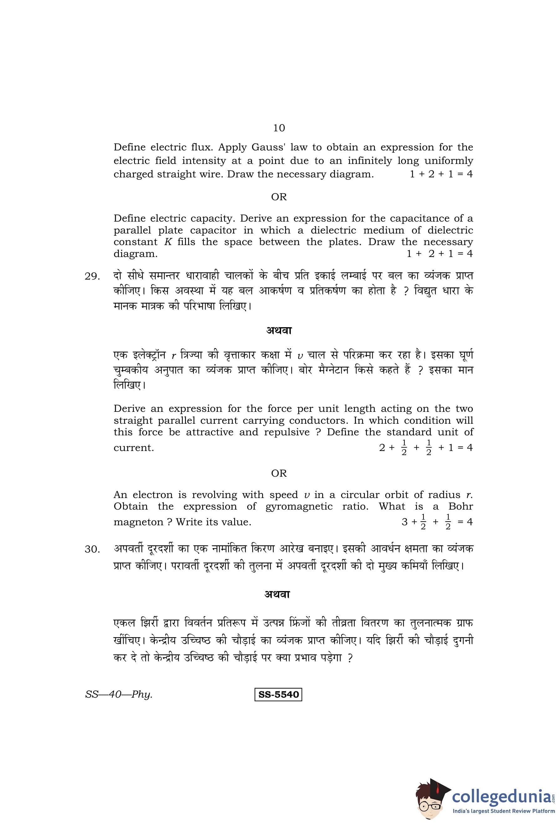 RBSE Class 12 Physics Question Paper 2014 with Answer Key