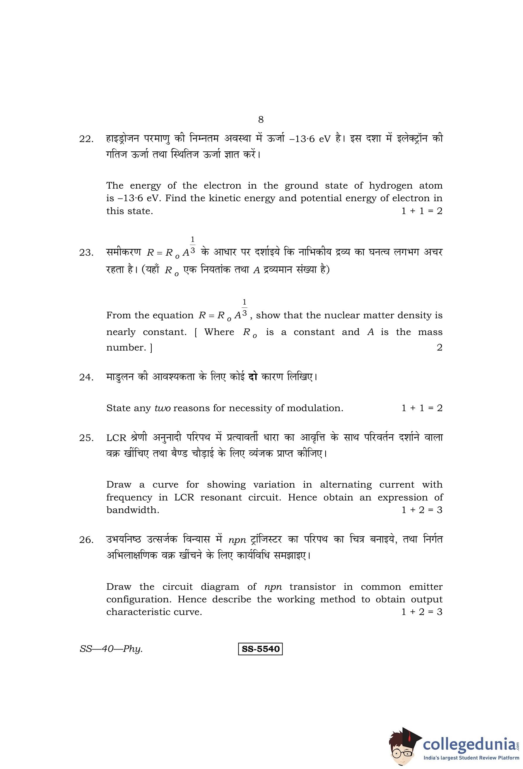 RBSE Class 12 Physics Question Paper 2014 with Answer Key pdf is available for download here. The exam was conducted by Board of Secondary Education Rajasthan (BSER) on March 12, 2014 in the Morning Session 8:30 AM to 11:45 AM. The question paper comprised a total of 30 questions.