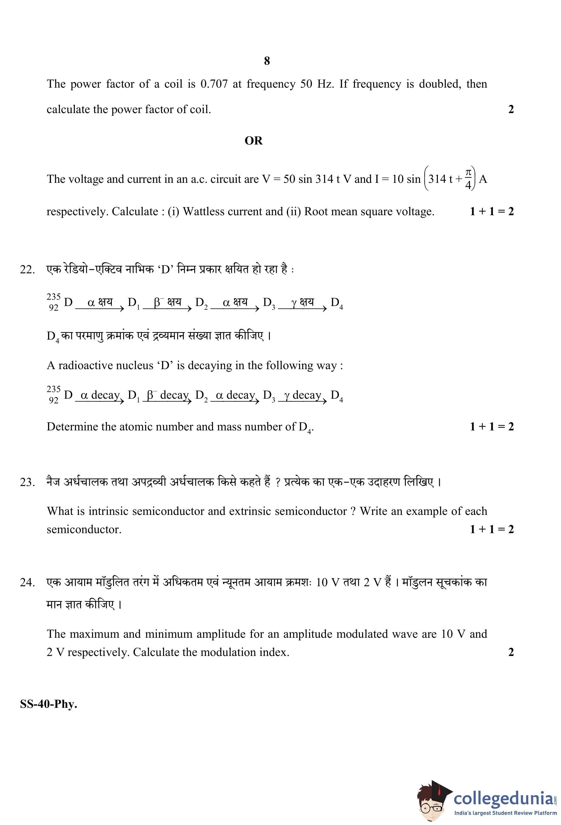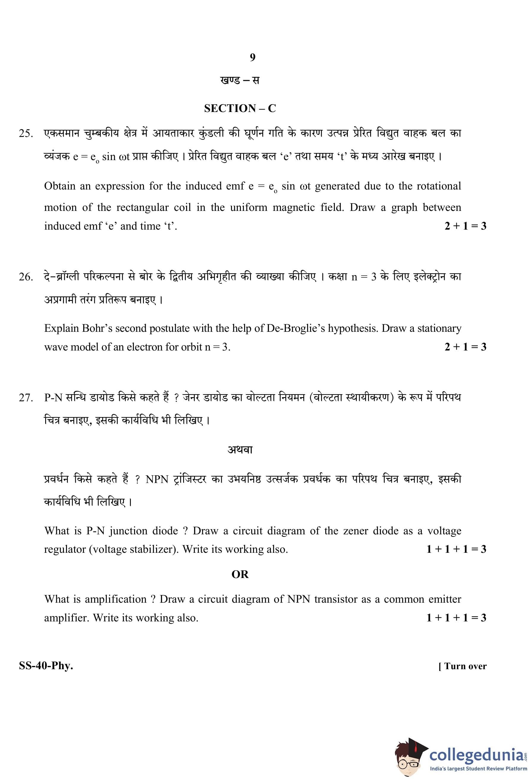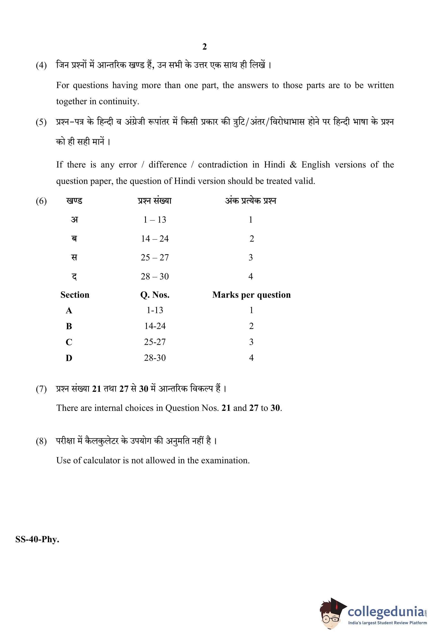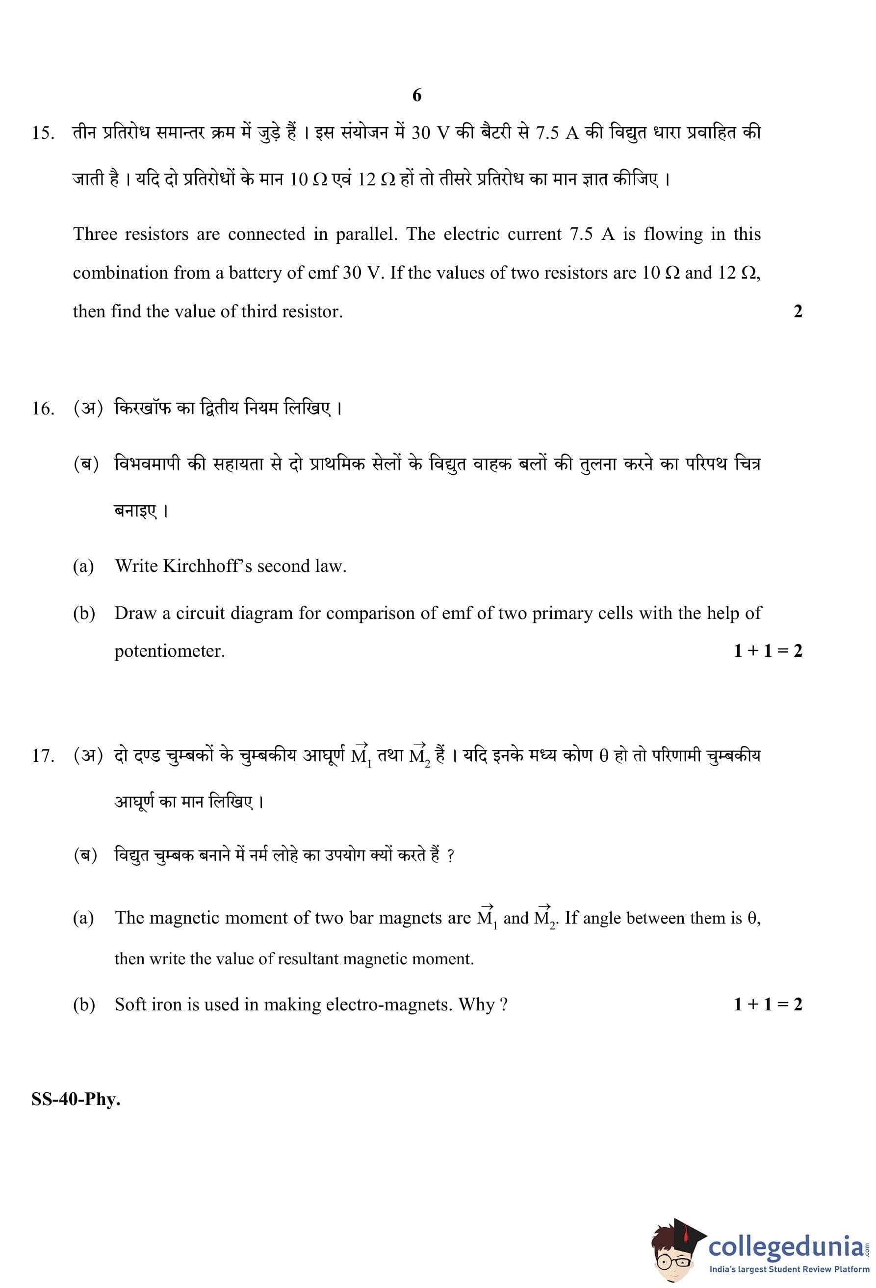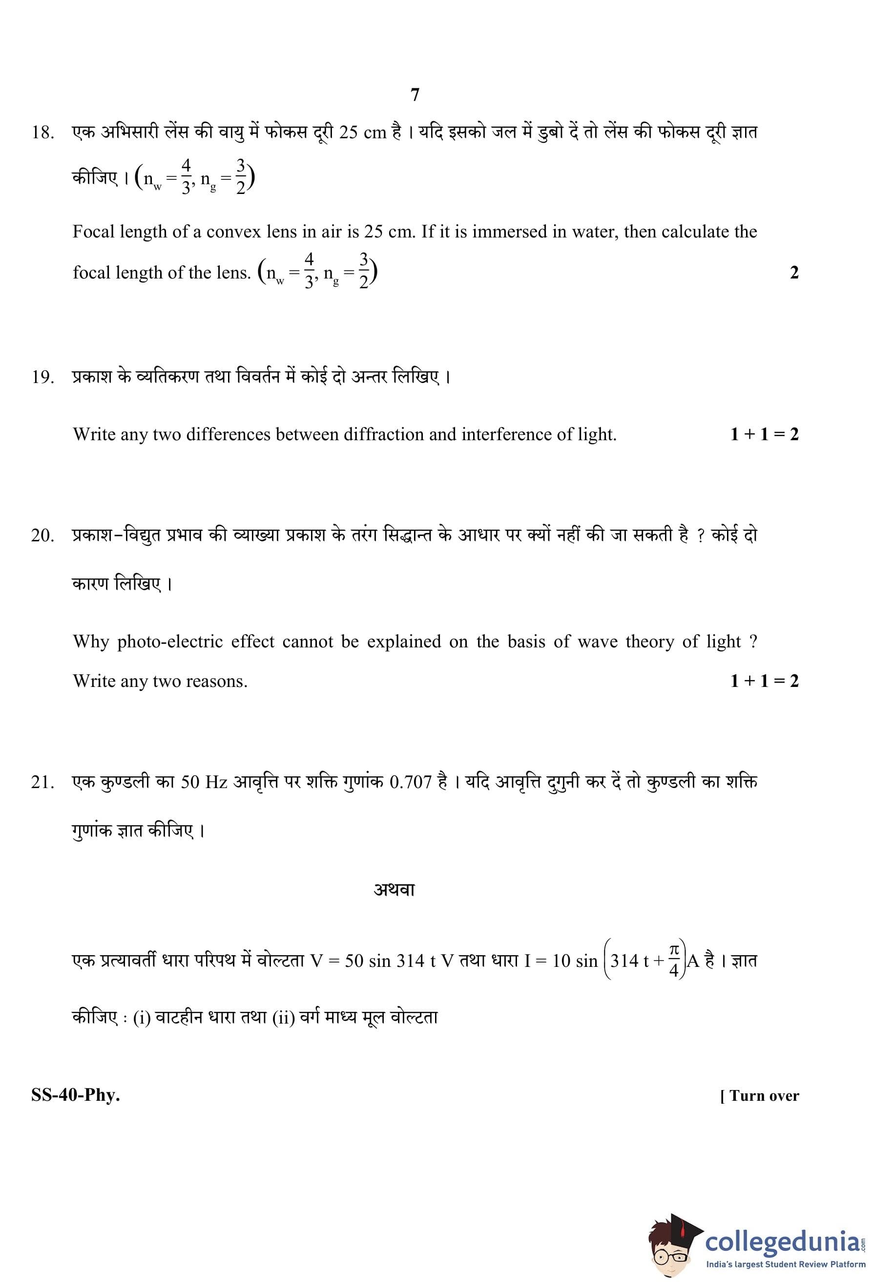 RBSE Class 12 Physics Question Paper 2020 with Answer Key