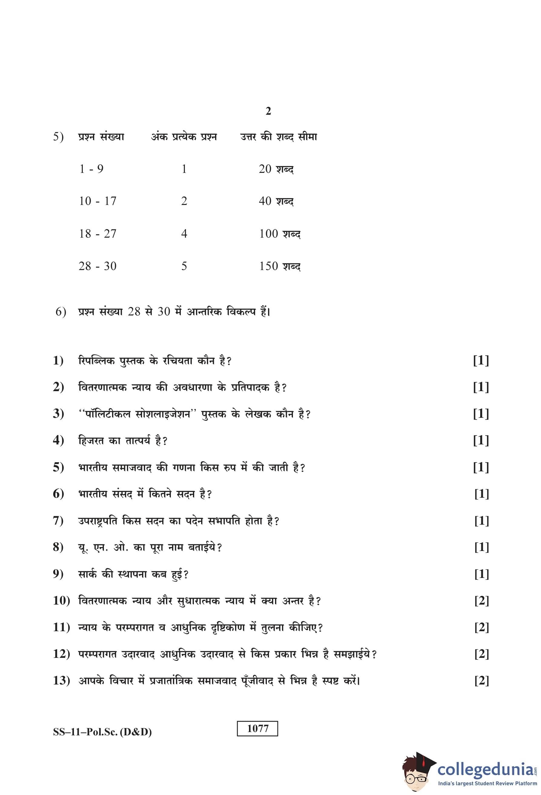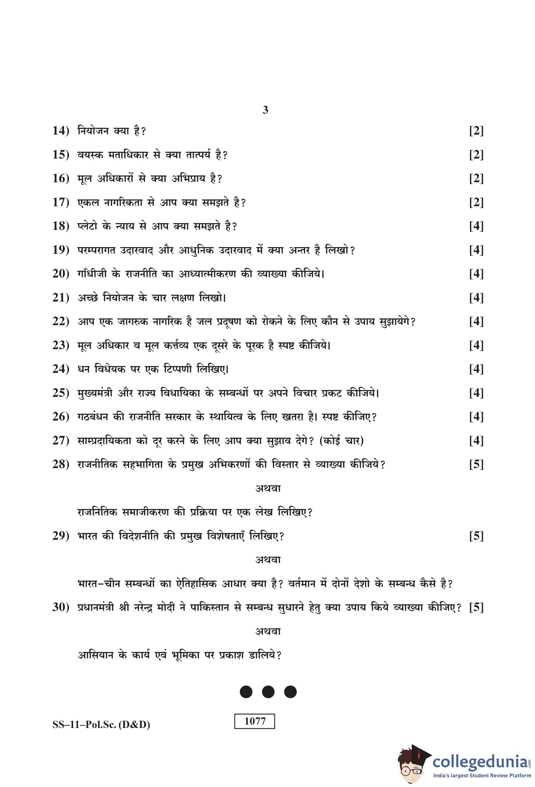 RBSE Class 12 Political Science (D and D) Question Paper 2018 with Answer Key pdf is available for download here. The exam was conducted by Board of Secondary Education Rajasthan (BSER) on March 12, 2018 in the Morning Session 8:30 AM to 11:45 AM. The question paper comprised a total of 30 questions divided among 4 sections.