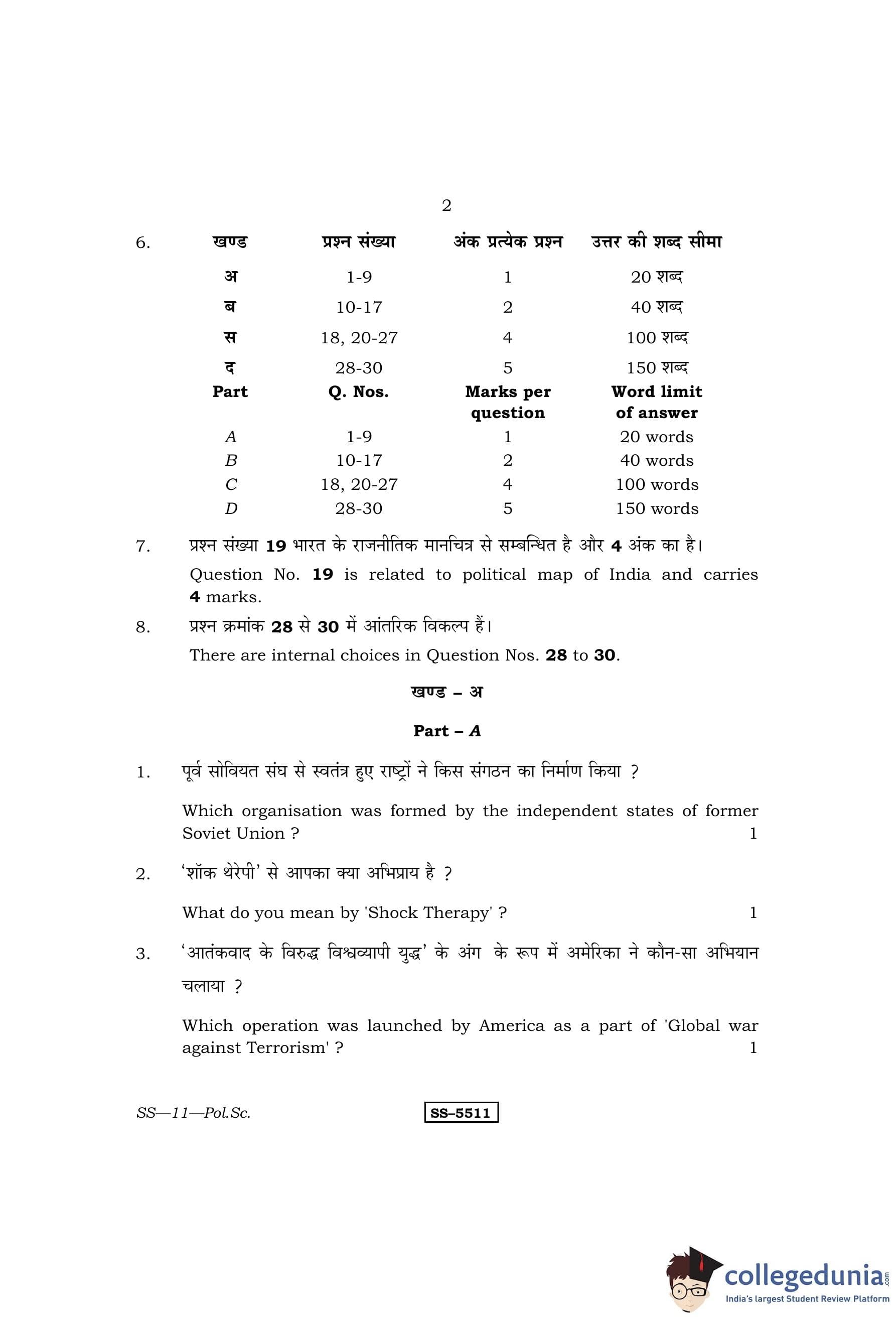 RBSE Class 12 Political Science Question Paper 2014 with Answer Key pdf is available for download here. The exam was conducted by Board of Secondary Education Rajasthan (BSER) on March 10, 2014 in the Morning Session 8:30 AM to 11:45 AM. The question paper comprised a total of 30 questions divided among 4 sections.