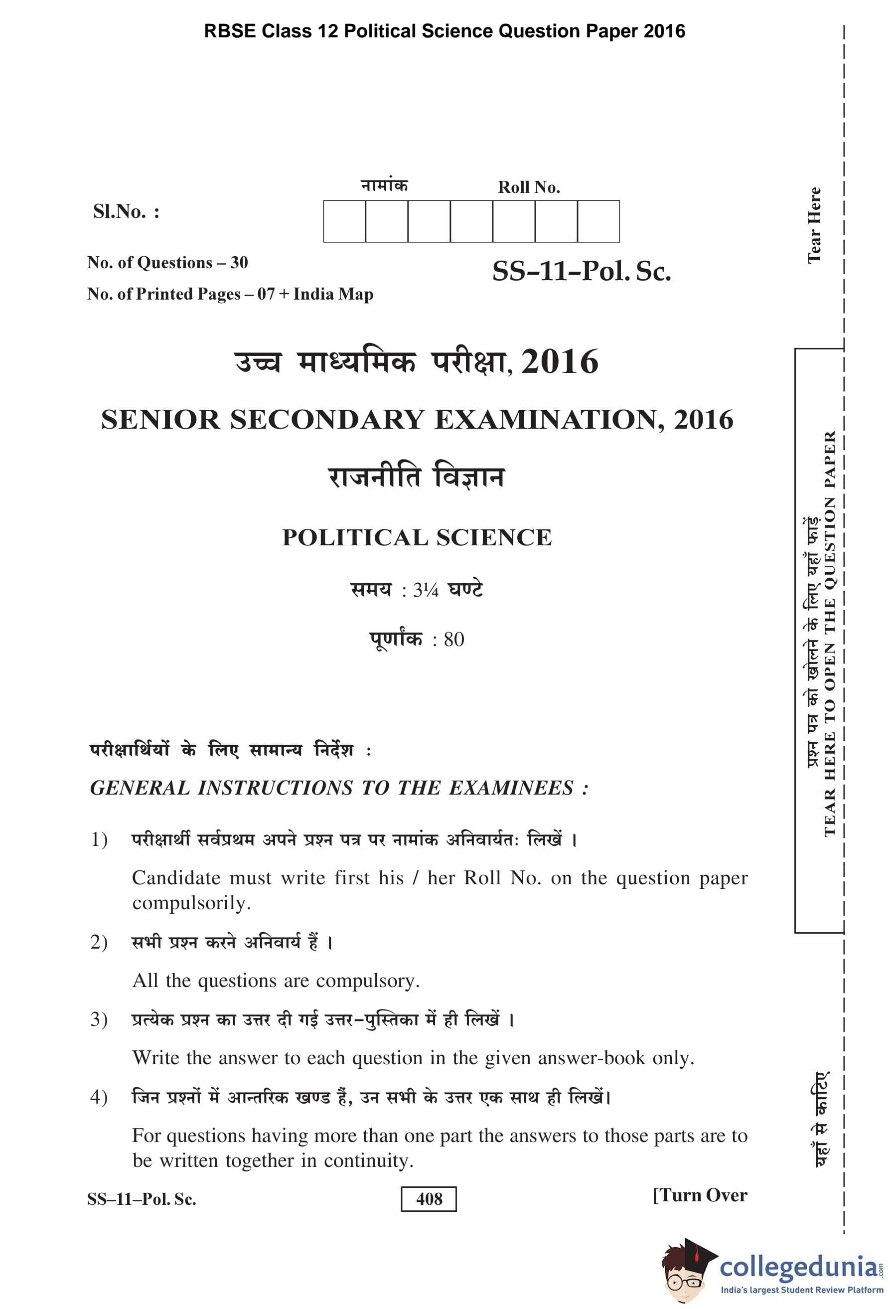 | RBSE Class 12 Political Science Question Paper 2016 PDF | RBSE Class 12 Political Science Answer Key 2016 PDF |